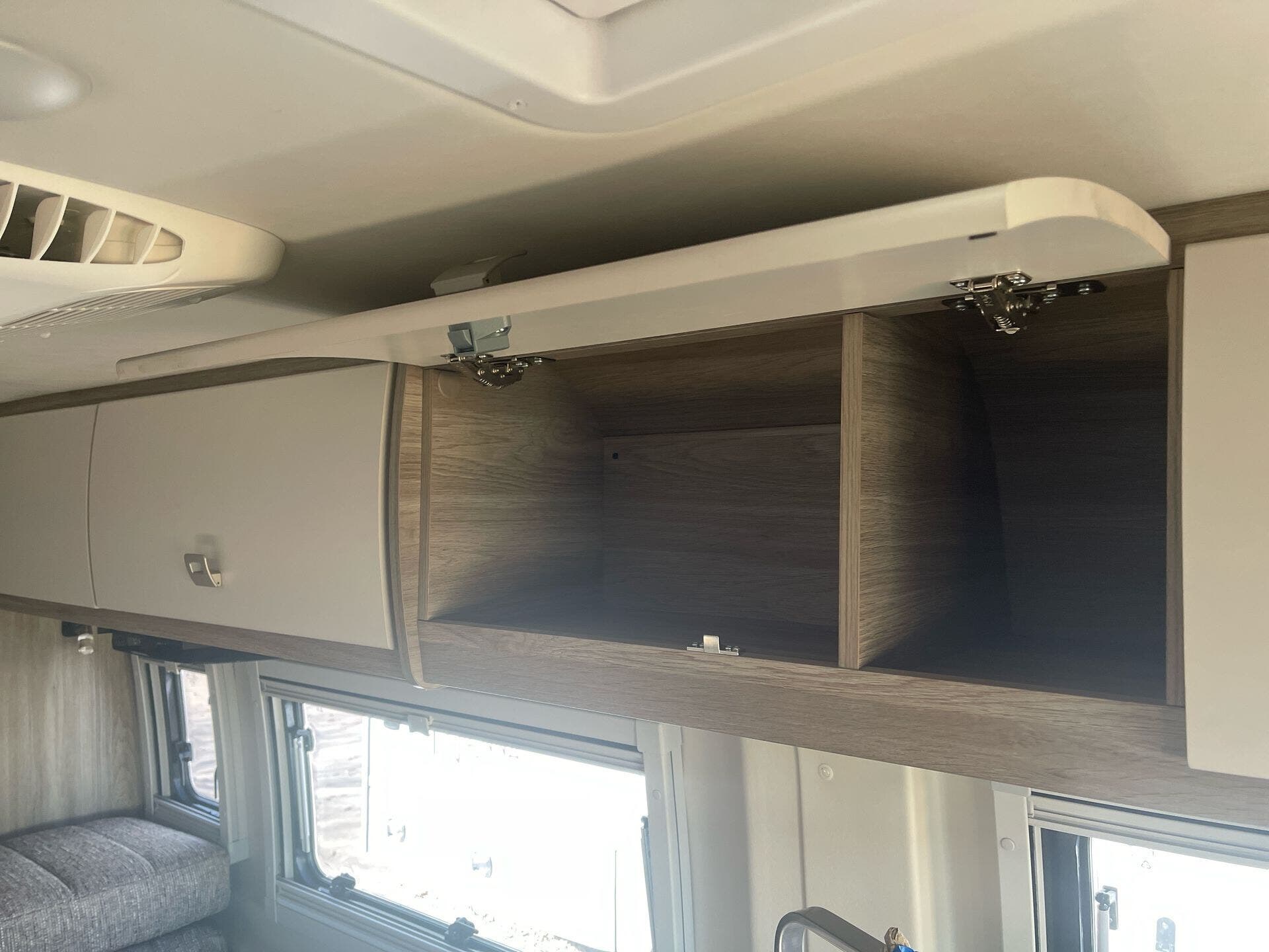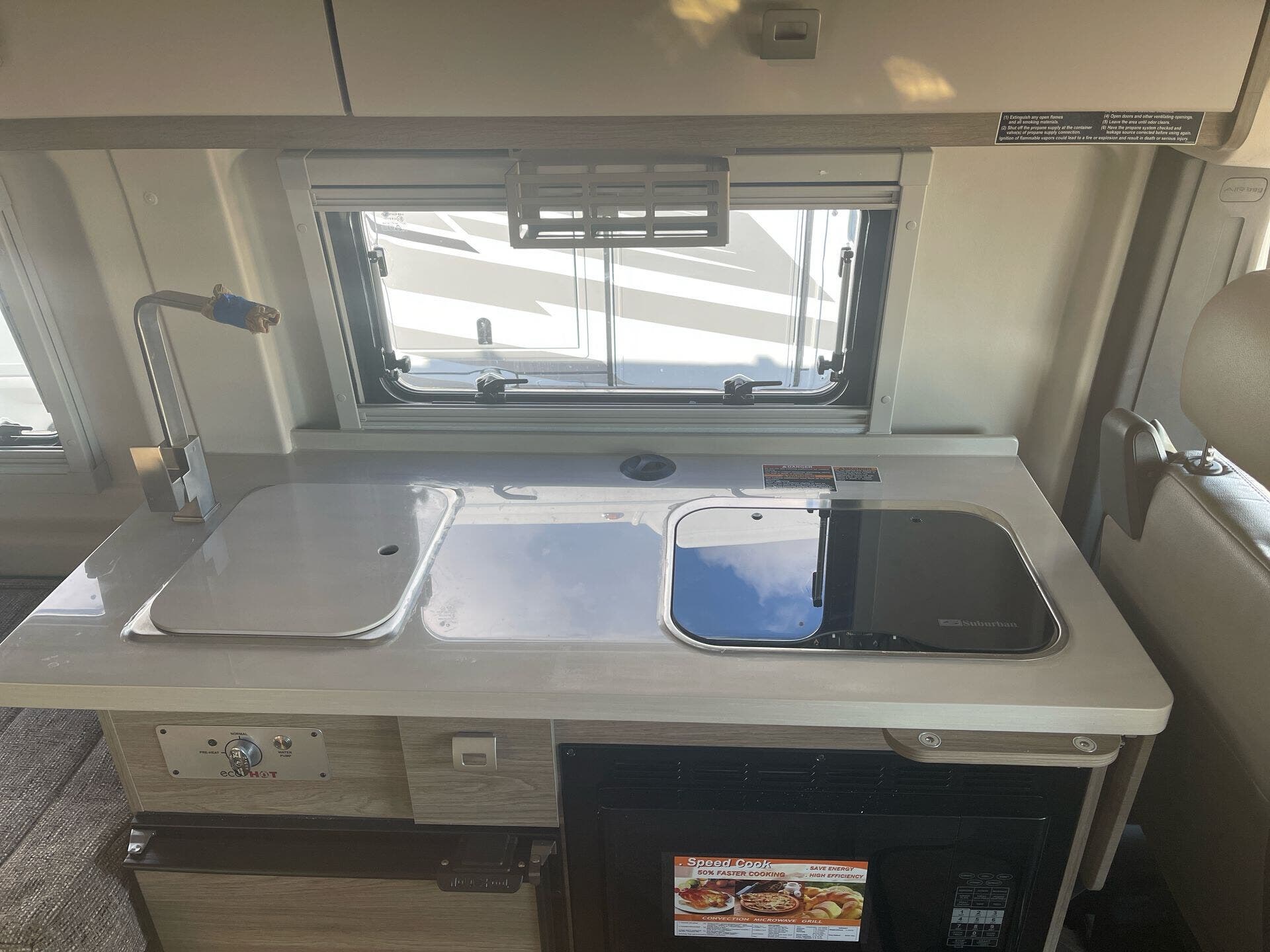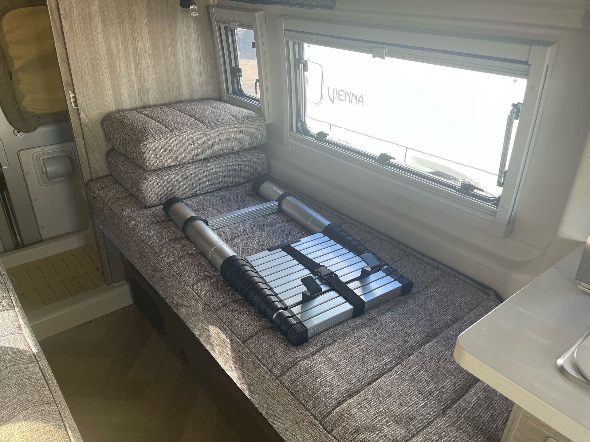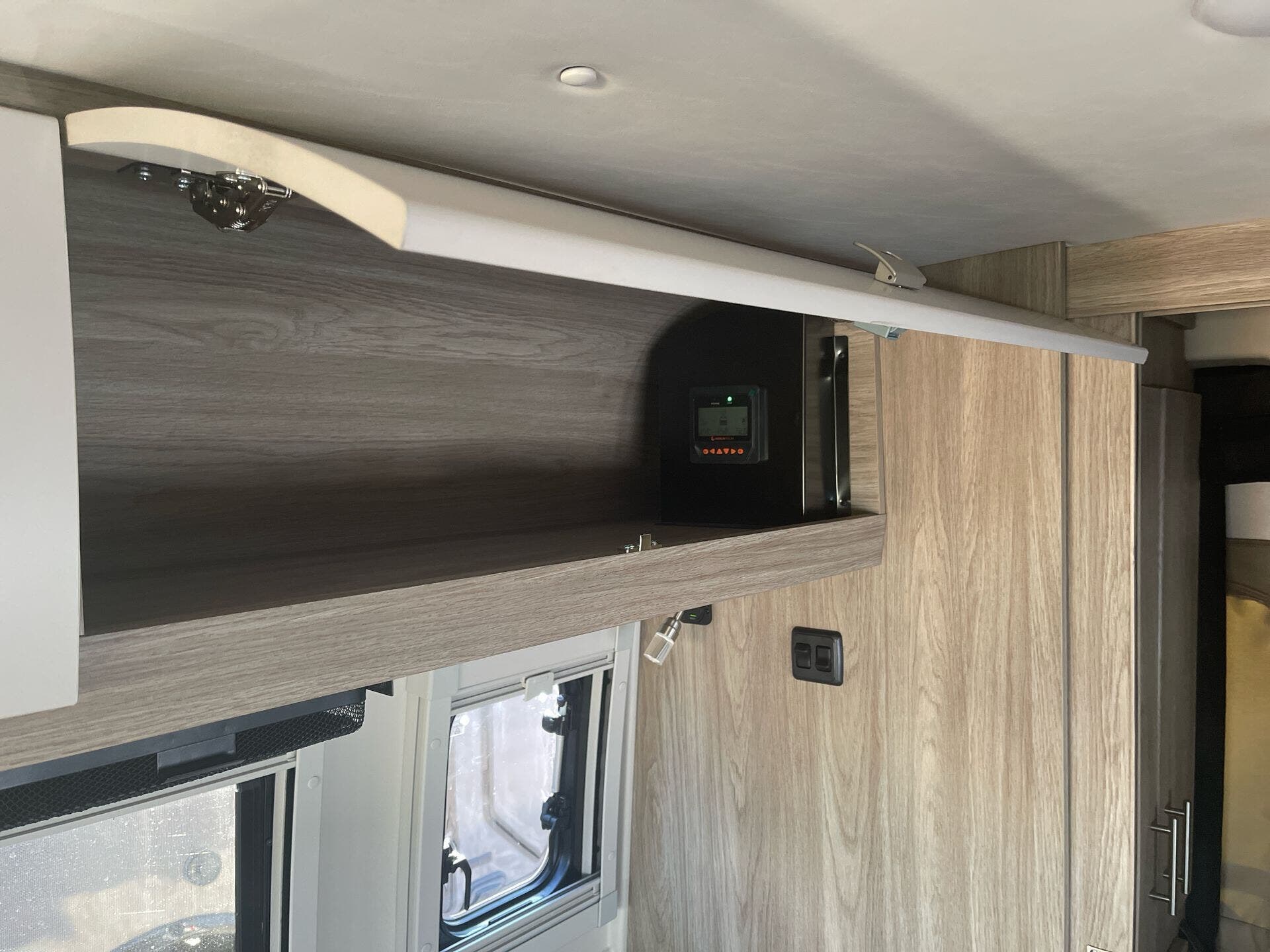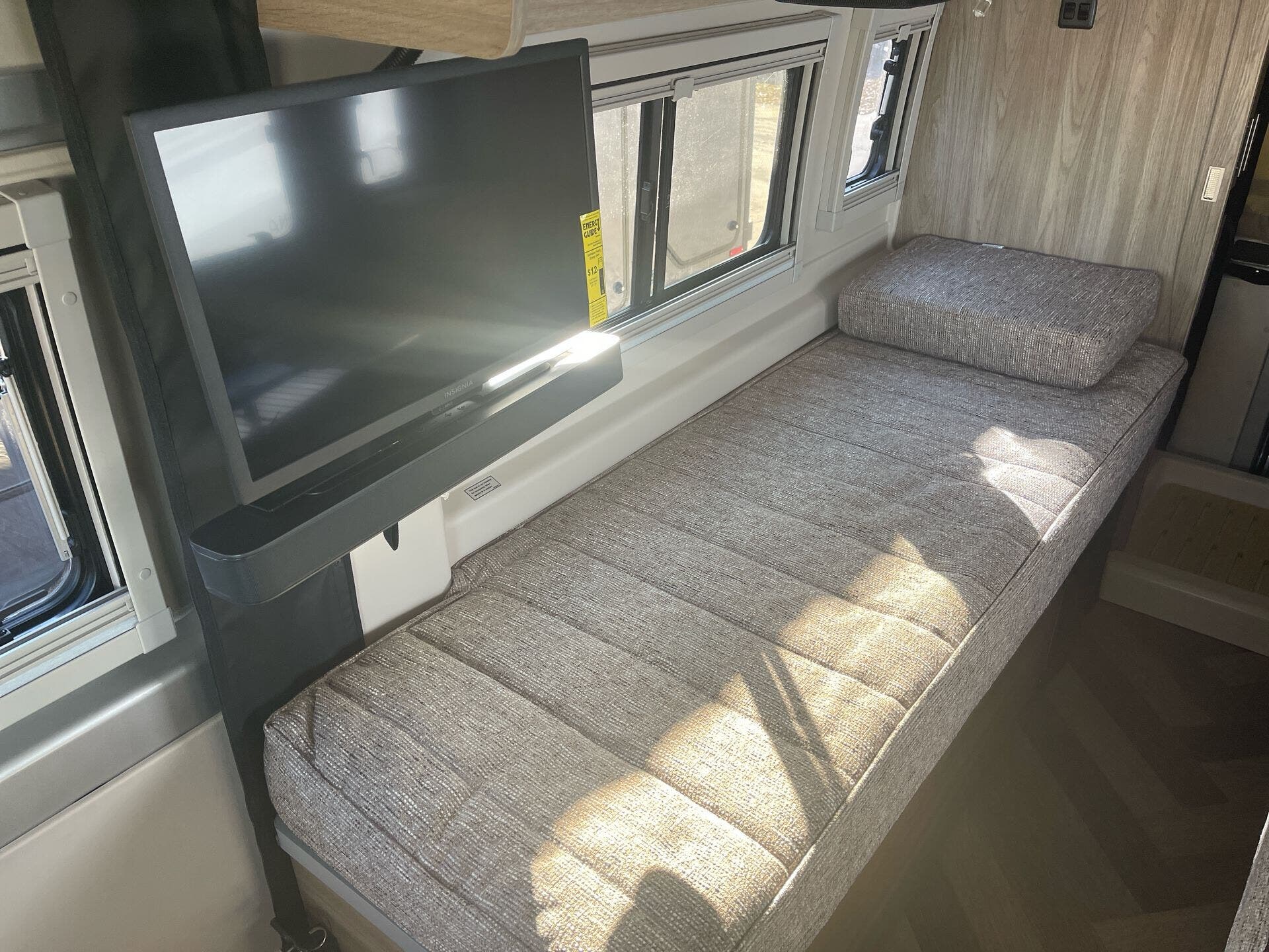 The Travato offers a thoughtfully designed interior geared toward efficient, comfortable living. A single, powerful air conditioner (Coleman Mach 10 NDQ with directional vents, Bluetooth control, and built-in thermostat with auto mode) keeps the cabin cool. The floor plan accommodates two sleepers in a cozy, well-appointed setting, while the compact footprint makes parking and setup a breeze at campgrounds or urban stops.
