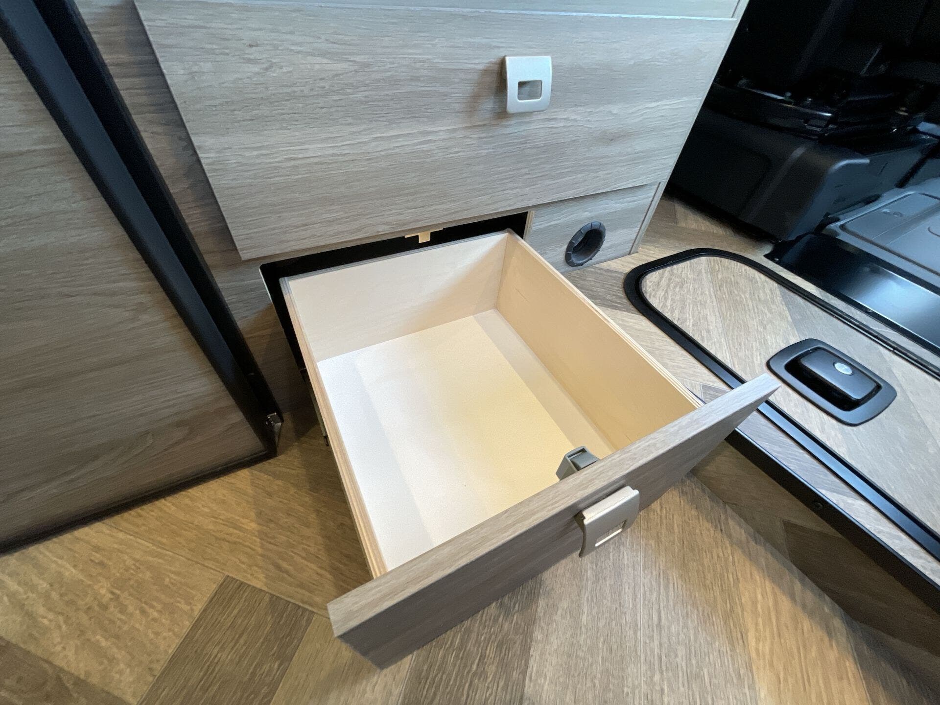 Inside, the Travato 59K offers a bright, contemporary interior with a smart, open feel. The versatile rear power sofa easily converts into a comfortable sleeping space, while the well-appointed kitchen features premium appliances, ample counter space, and thoughtful storage for life on the road. A fully enclosed wet bath provides the convenience and privacy of home, making extended trips more comfortable and self-sufficient.