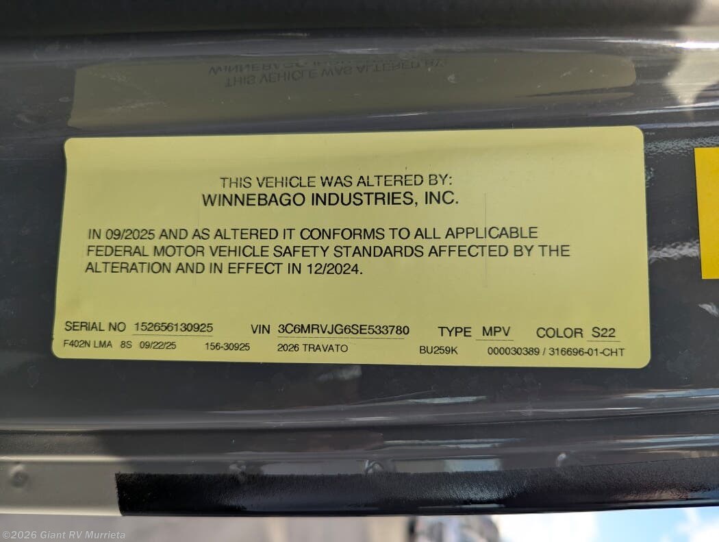 Request More Info on this 2026 Winnebago Travato 59K Offered for sale by Giant RV