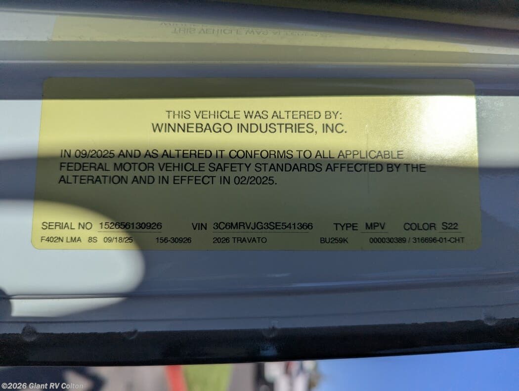 Visit Giant RV in California today to explore the 2026 Winnebago Travato 59K—your agile, well-equipped home on wheels for every journey.