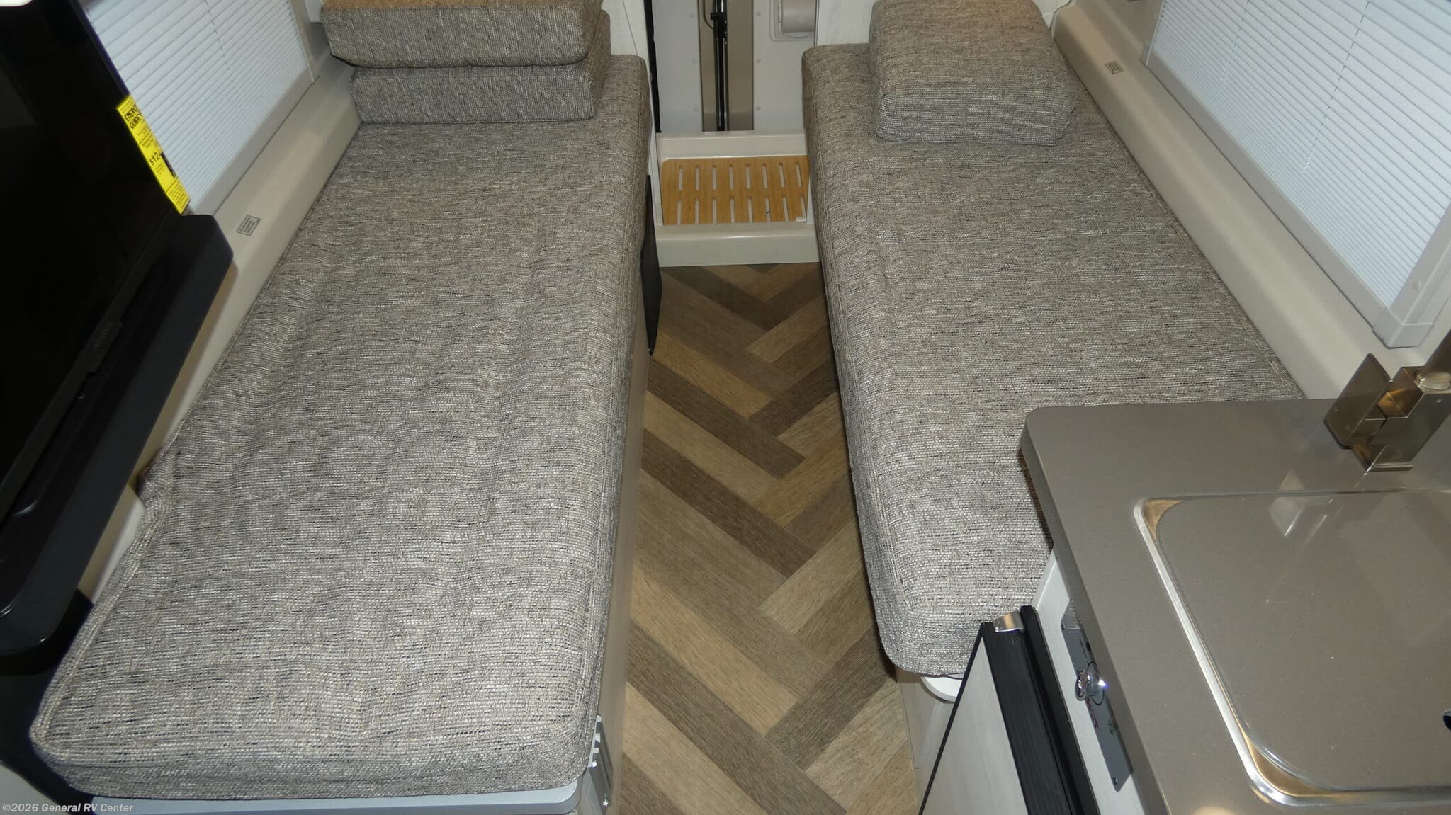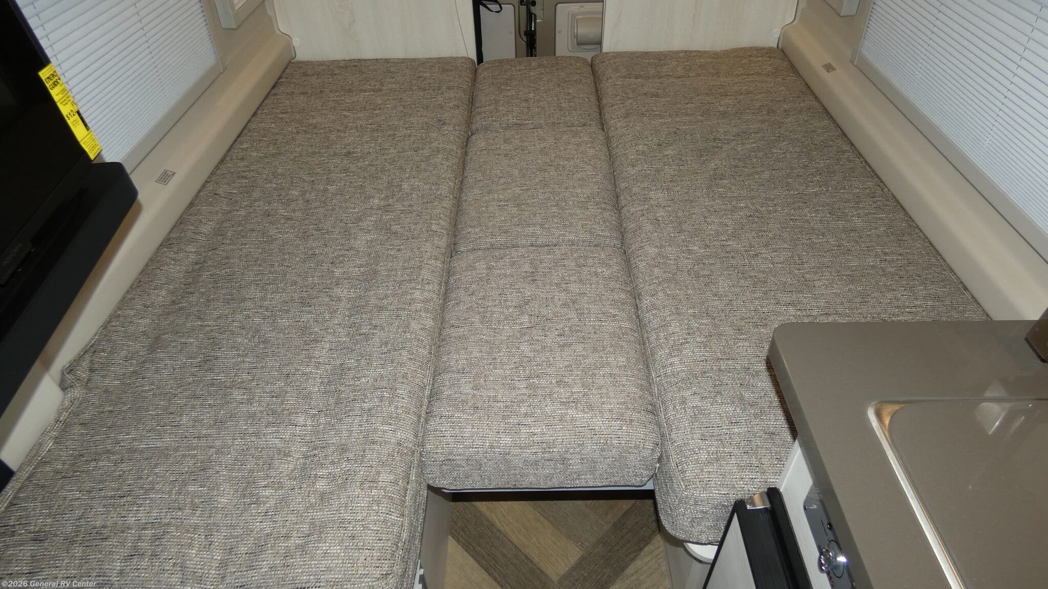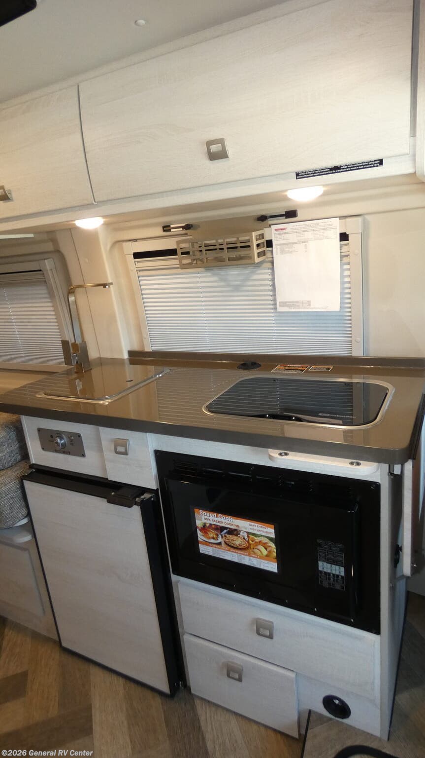 The 2026 Winnebago Travato 59K is a modern marvel of compact luxury and efficiency, designed for those who crave adventure without sacrificing comfort. Built on the reliable ProMaster 3500 chassis and powered by a robust Pentastar VVT V6 engine, this RV promises a smooth and powerful ride. At 21 feet in length, it offers a nimble driving experience while packing a punch with its smartly designed interior. The front kitchen is equipped with a two-burner cooktop and convection cooking, perfect for whipping up gourmet meals on the road. As you move through the center living area, you'll find twin beds that offer a cozy resting space for two. The rear bath, complete with a shower curtain, provides a private oasis for freshening up. With a 13-foot powered retractable awning, you can easily extend your living space outdoors, creating the perfect setting for relaxation or entertaining. The Travato 59K also features a compact electric refrigerator and an automatic heater, ensuring comfort in any climate. With a fresh water capacity of 18 gallons and a tow capacity of 3,500 pounds, this RV is ready to take you on new adventures. For more details, visit your nearest General RV dealership.