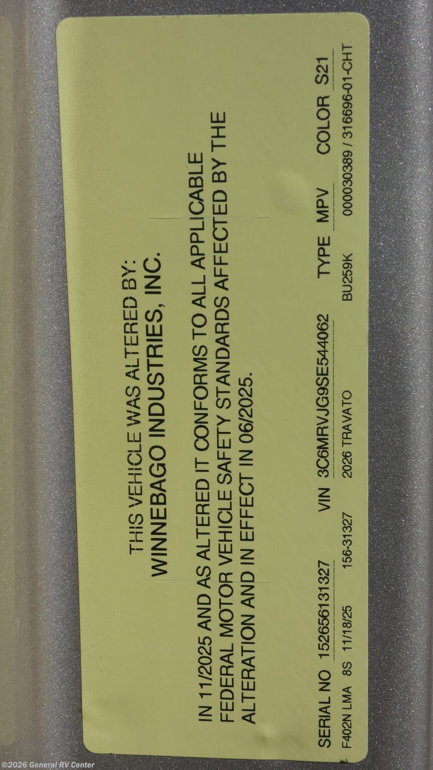 Request More Info on this 2026 Winnebago Travato 59K Offered for sale by General RV Center