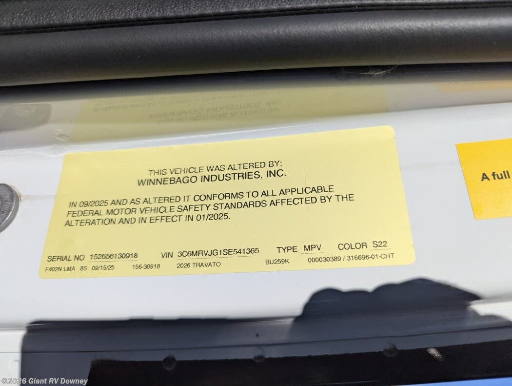 Visit Giant RV in California today to explore the 2026 Winnebago Travato 59K—your agile, well-equipped home on wheels for every journey.