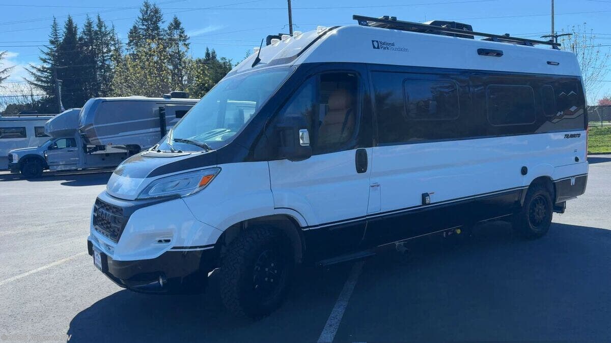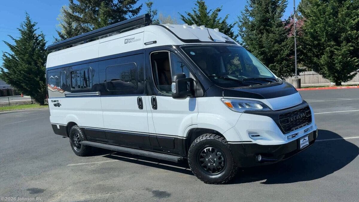 Introducing the 2026 Winnebago Travato, a versatile and well-equipped Class B RV designed to provide unmatched comfort and convenience for your adventures. Built on the resilient Ram ProMaster chassis, this RV is powered by a robust 3.6L V6 gas engine delivering 280 horsepower, complemented by a 9-speed Automatic 62TE Transmission for a smooth driving experience. The Travato's exterior is designed with functionality in mind, featuring SuperSprings SumoSprings, 4-Wheel ABS Brakes, and aluminum stylized wheels. Safety is enhanced with blind spot monitoring, crosswind assist, and a host of additional proactive safety features ensuring you're secure on the road. Key Cab Features: - Push-button start and electric power steering for effortless control - Power door locks with remote and thermal cab window blinds - Adaptive cruise control and an intuitive touchscreen interface with navigation and USB ports - Comfortable slide swivel recline seats Living Spaces: - Modern amenities like LED interior lighting and a rack mount power awning with Bluetooth control - Aluminium running boards and ground effect lighting add style and functionality - Flexible interior with tinted coach windows, blackout cassette shades, and abundant below-floor storage Dining: - Equipped with dinette seating, a pedestal table, and Corian countertops - A variety of kitchen options featuring a stainless steel sink, induction and 2-burner cooktops, and a convection microwave - Outdoor LP connection for flexibility in outdoor cooking Electronics: - Advanced systems center, LP CO, and smoke detectors for safety - 24-inch HDTV and Bluetooth soundbar for entertainment - USB ports throughout keep your devices charged Sleeping Spaces: - WinnSleep System with a double bed or twin beds with a flex bed kit Bathroom: - Wet bath with a medicine cabinet, shower package, and foot pedal toilet - Additional features include a flexible showerhead and power roof vent Mechanical Features: - Energy Management System with 245w solar panels and solar charge controller - Comprehensive battery management featuring automatic dual-battery charge control - 1000w Pure Sine Wave Inverter and Coleman Mach 10 NDQ AC with Bluetooth control The National Park Foundation trim option adds rugged stylized wheels and BFGoodrich All-Terrain tires, enhancing its capability for outdoor adventures. Whether you're trekking through national parks or embarking on a road trip, the 2026 Winnebago Travato is your ticket to a well-appointed journey, blending innovative features with the reliability and flexibility needed for life on the road. ?????