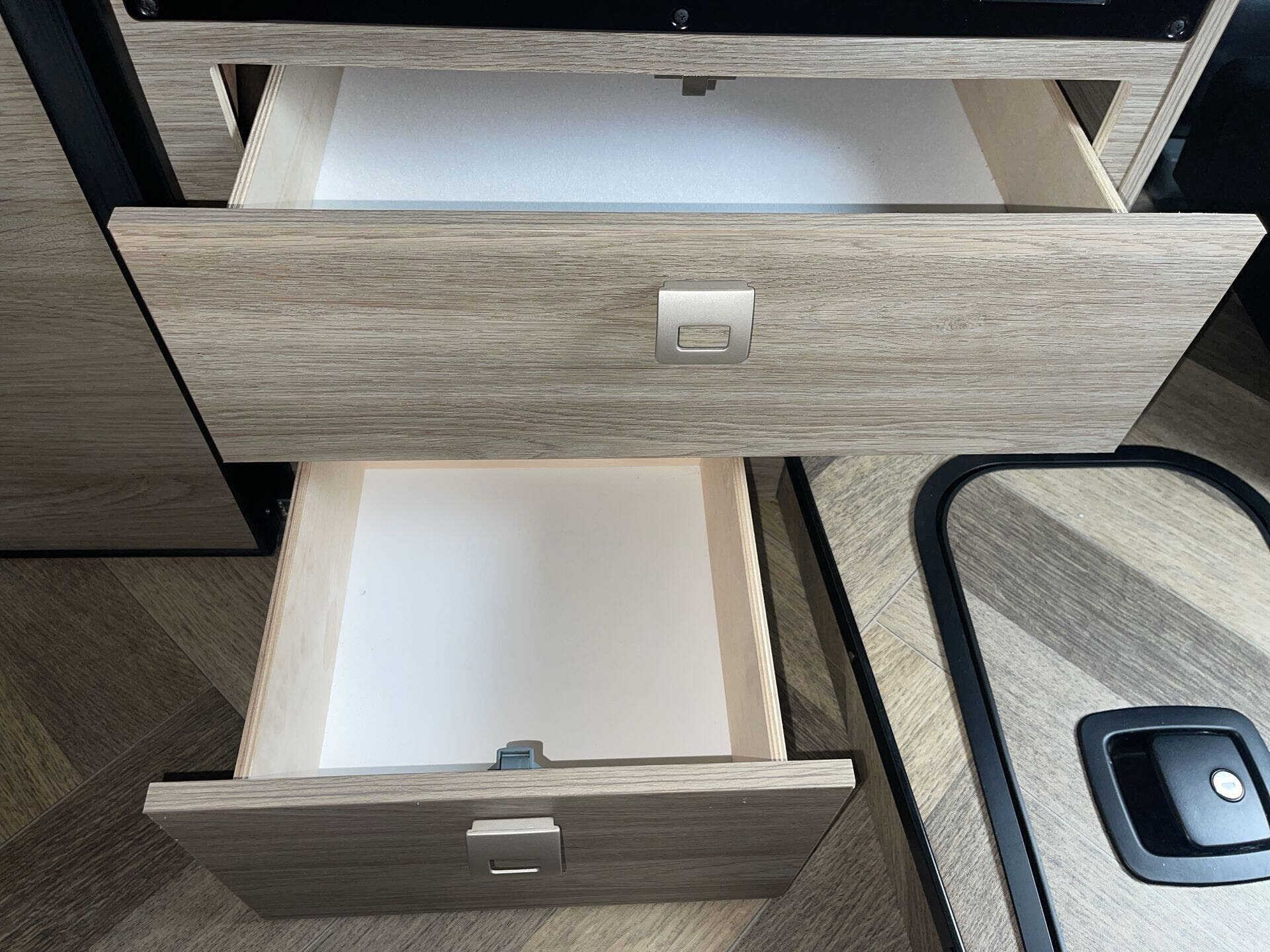 - Water capacity — Fresh: 21 gallons; Grey: 12 gallons; Black: 12 gallons