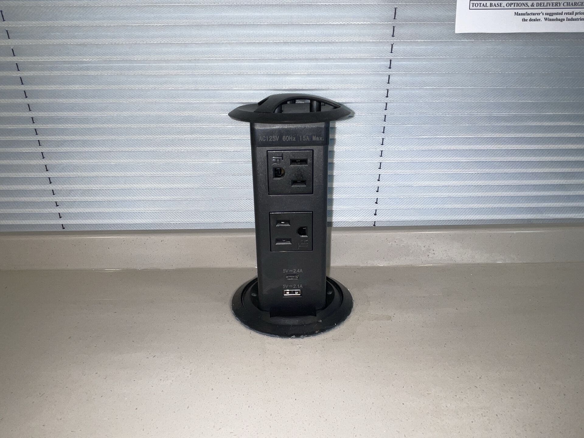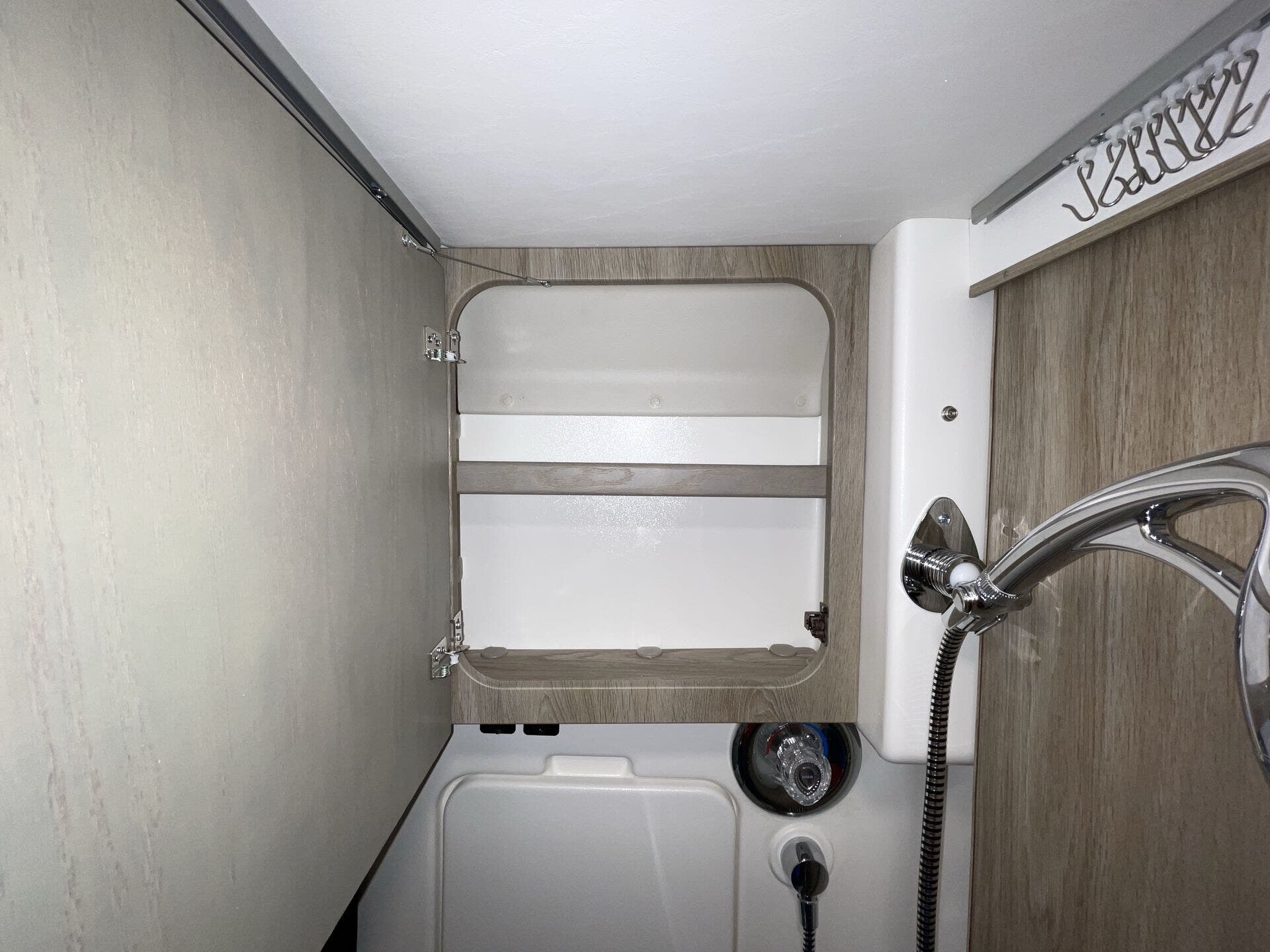 Day/Night Shades, Medicine Cabinet, Overhead Cabinetry, Removable Table, Roof Vents, Shower, Solid Surface Countertops, Toilet