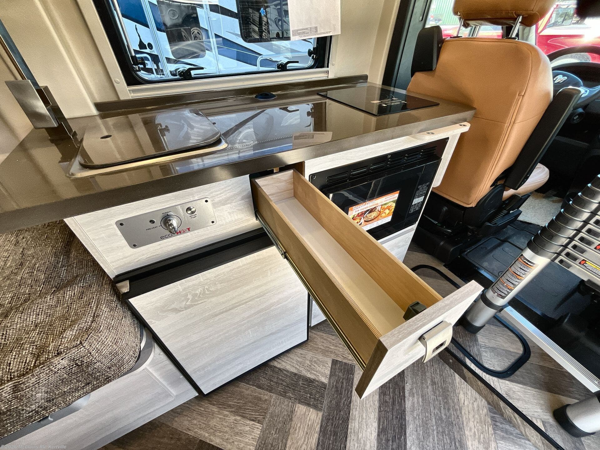 - Fully Equipped Galley Kitchen: Includes a cooktop, microwave, refrigerator, and efficient storage, making it easy to prepare meals on the road.
