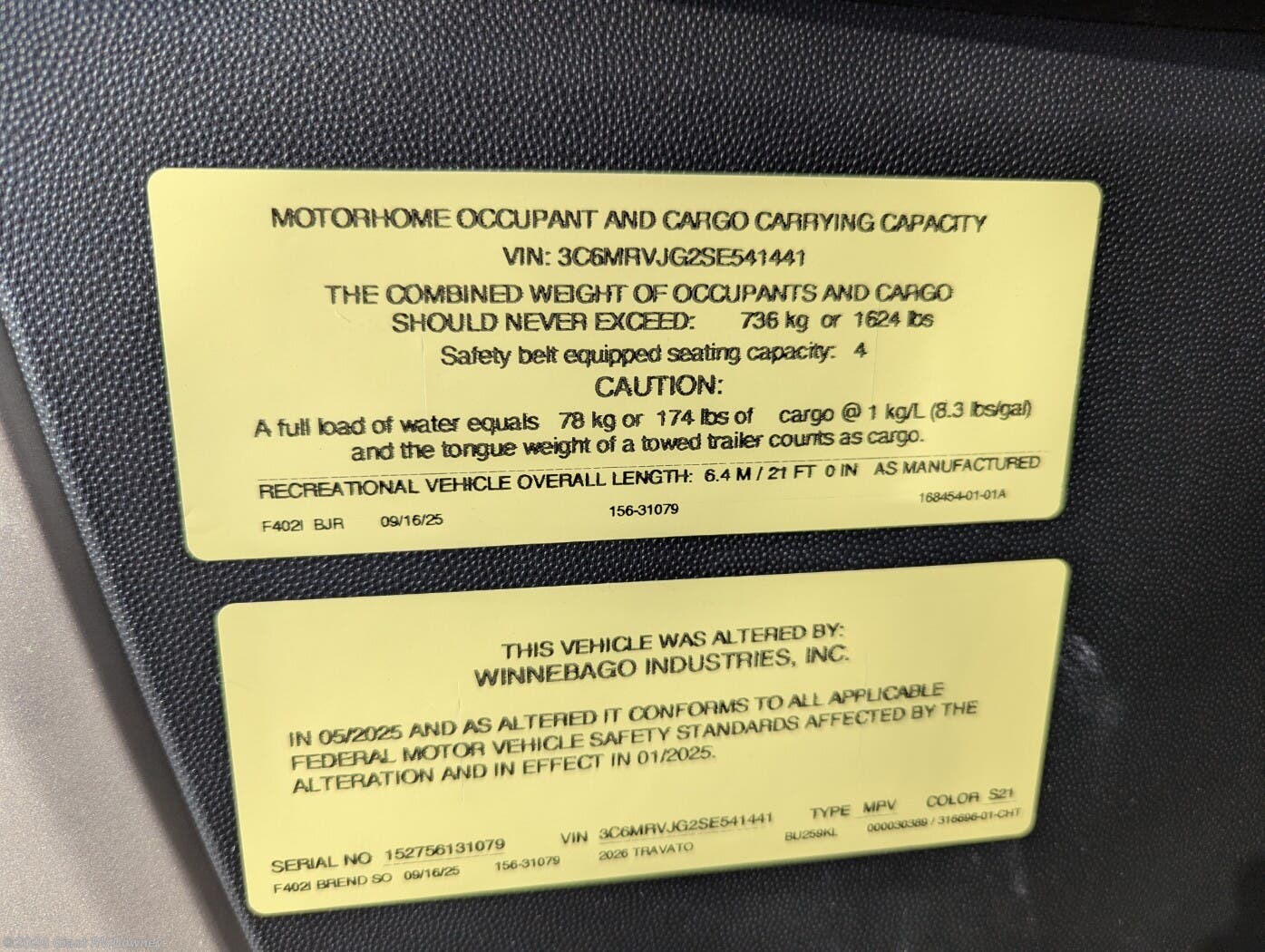 Request More Info on this 2026 Winnebago Travato 59KL Offered for sale by Giant RV
