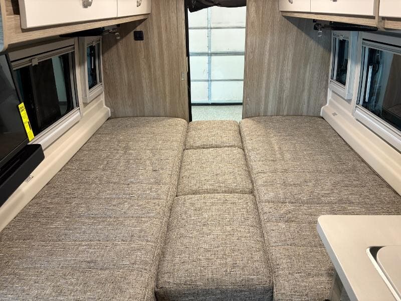 The 2026 Winnebago Travato Ram ProMaster is a state-of-the-art Class B RV designed for those who crave adventure without sacrificing comfort. This vehicle is built on the reliable Ram ProMaster chassis and is powered by a robust 3.6L V6 gas engine, delivering 280 horsepower. The 9-speed automatic 62TE transmission ensures smooth driving, while the 180-amp alternator and SuperSprings SumoSprings enhance stability and handling. Safety is a top priority in the Travato, featuring advanced systems such as Blind Spot Monitoring, Crosswind Assist, Traffic Sign Assist, and Pedestrian Automatic Emergency Braking. Additional safety features include Full-Speed Collision Warning Plus, Post Collision Braking, and front side curtain airbags, ensuring peace of mind on the road. The cab is equipped with modern conveniences like power door locks with remote, power windows, thermal cab window blinds, and slide swivel recline seats. The push-button start, electric power steering, and steering wheel controls make driving effortless. The touchscreen radio, rearview monitor, navigation, and USB ports keep you connected and entertained, while adaptive cruise control adds to the ease of long-distance travel. Inside, the living space is designed for comfort and functionality. The RV features a rack mount power awning with LED lighting and Bluetooth control, aluminum running boards, and ground effect lighting. The interior boasts LED lighting, vinyl flooring, a soft vinyl ceiling, and tinted coach windows with blackout cassette shades. Storage is ample with below-floor storage, RAM Tough-Track mounts, and drop-down storage baskets. The dining area includes dinette seating, a pedestal table with pop-up outlets, a pantry, and a spice rack. The kitchen is equipped with Corian countertops, a countertop extension, a single control faucet, and a stainless steel sink with a Corian cover. Cooking is a breeze with options like a 12v refrigerator, induction cooktop, and convection microwave. For entertainment, the Travato features a systems center, LP CO and smoke detectors, a thermostat with Bluetooth control, an amplified digital TV antenna, a 24-inch HDTV, and a Bluetooth soundbar. USB ports are conveniently located throughout the vehicle. Sleeping arrangements include the WinnSleep System with options for a double bed or twin beds with a flex bed kit, ensuring a restful night's sleep. The bathroom is a well-designed wet bath with a medicine cabinet, bathroom mirror, linen storage, shower package, flexible showerhead, and a foot pedal toilet with a sprayer. Mechanically, the Travato is equipped with an energy management system, 245w solar panels, a solar charge controller, and solar panel expansion plugs. The 30-amp SmartPlug service cord, 45-amp converter charger, and 2.8 gas generator provide reliable power. The vehicle also features a battery disconnect system, two deep-cycle Group 31 AGM batteries, and automatic dual-battery charge control. The Winnebago Power MAX system includes an 8.4kWh Lithionics lithium-ion battery, dual alternator charging ability, a 3600w inverter, and inverter charger with Bluetooth control. The energy pack heating system, Coleman Mach 10 NDQ AC, and Truma Combi G-Comfort Plus heat and hot water system ensure comfort in any climate. Additional features include a holding tank flush system, a 10-foot sewer hose, and an outdoor wash station. Overall, the 2026 Winnebago Travato Ram ProMaster is a versatile and luxurious RV, perfect for those who want to explore the open road with all the comforts of home. ??