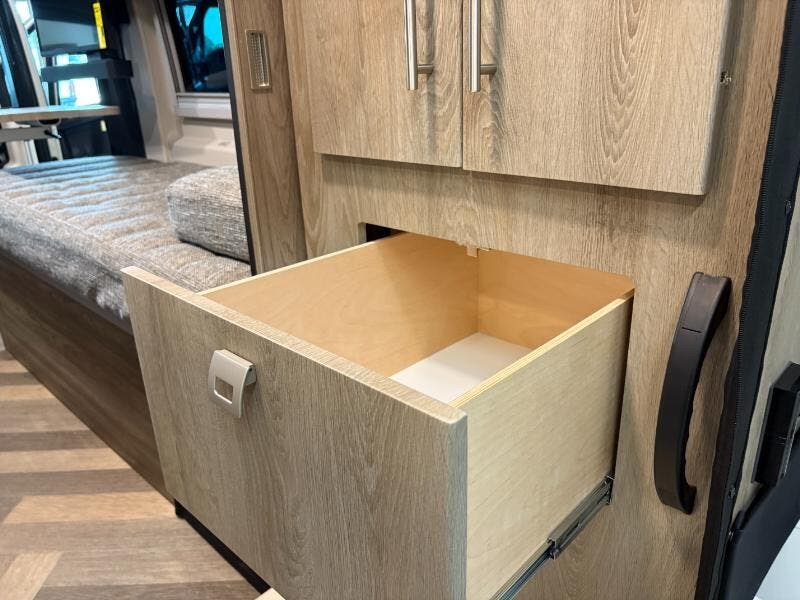 Features Include: 3.6L V6 Gas Engine, 280 HP, 180-Amp Alternator, 4-Wheel ABS Brakes, Fog Lamps, Crosswind Assist, Traffic Sign Assist, Cab Features, Power Windows, Push Button Start, Applique Package, Living Spaces, Soft Vinyl Ceiling, Tinted Coach Windows, Below Floor Storage, Rear Screen Door, Dinette Seating, Pantry, Spice Rack, Corian Countertops, Countertop Extension, Microwave Oven (59G), Electronics, Systems Center, USB Ports Sleeping, Medicine Cabinet, Bathroom Mirror, Linen Storage, Shower Package, Flexible Showerhead, 245w Solar Panels, 2.8 Gas Generator, 245w Solar Panels, 3600w Inverter, Inverter Charger, Bluetooth Control, 10-Foot Sewer Hose, Outdoor Wash Station