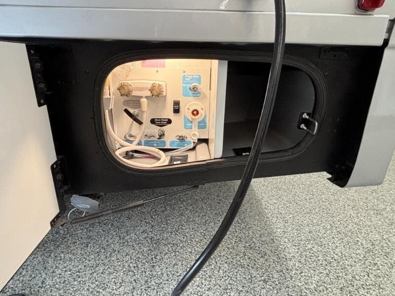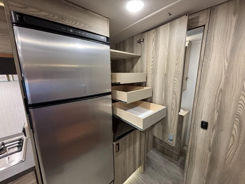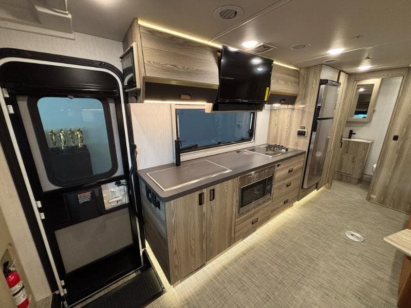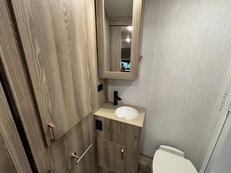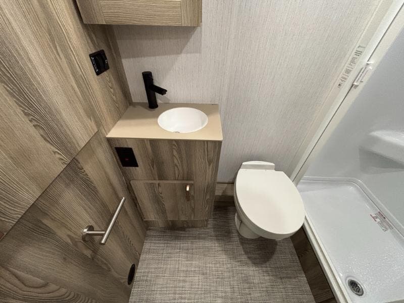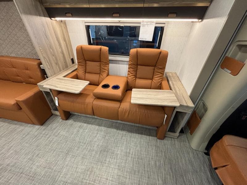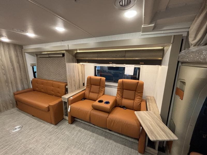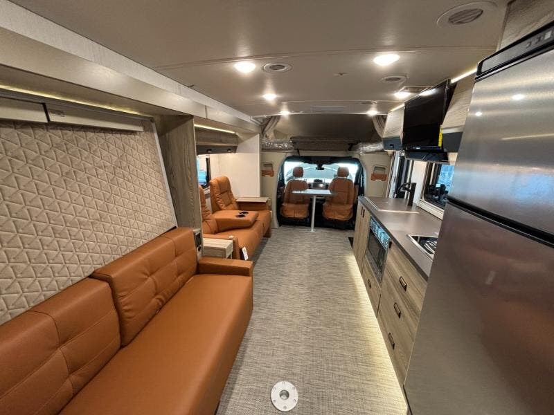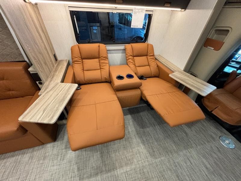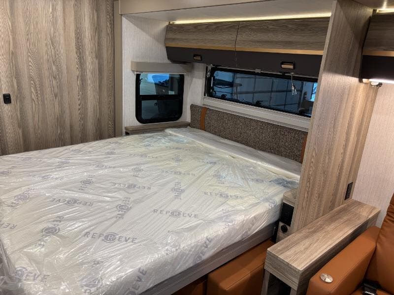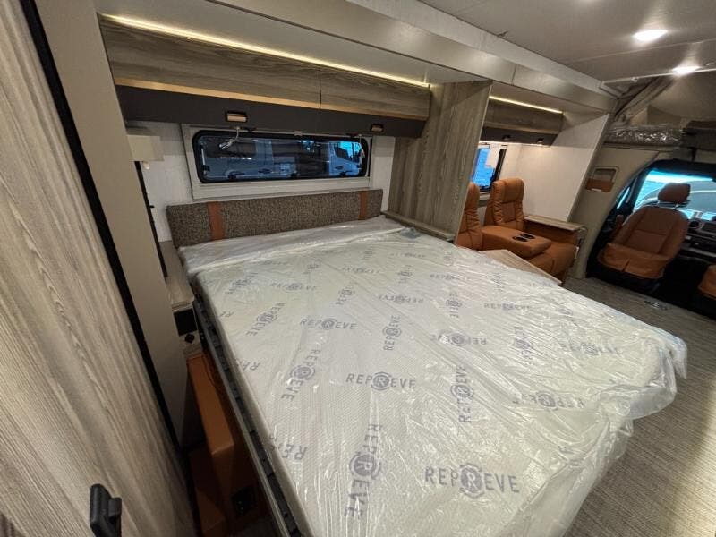 Features Include: 250-Amp Alternator, Active Brake Assist, Lane Keeping Assist, Attention Assist, Hill Start Assist, Crosswind Assist, Power Windows, Seat Lumbar Support, Recline, Slide, Swivel, Tilt Wheel, Bluetooth Control, LED Porch Light, Aluminum Cab Steps, Stepwell Light, Soft Vinyl Ceiling, Vinyl Flooring, Tinted Glass Windows, Dining, Pantry (24D 24J 24T), Laminate Countertops, Galley Mini Blinds, Systems Center, Cable TV Hookup, 32-inch HDTV, Outdoor Speakers, Corner Bed, Foam Mattress (24J), Bathroom, Lockable Door (24R), Medicine Cabinet, Vanity Sink, Shower Skylight, (24D 24R 24T), Expansion Plug, Battery Pack Heating, Bluetooth Control, Expansion Plug, 3.8 LP Generator, 30-AmpService Cord, 45-Amp Converter, 15k AC Heat Pump, Lockable Water Fill, 10-ft Hose