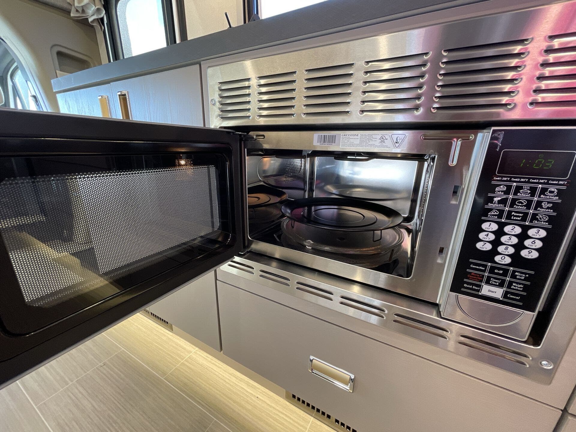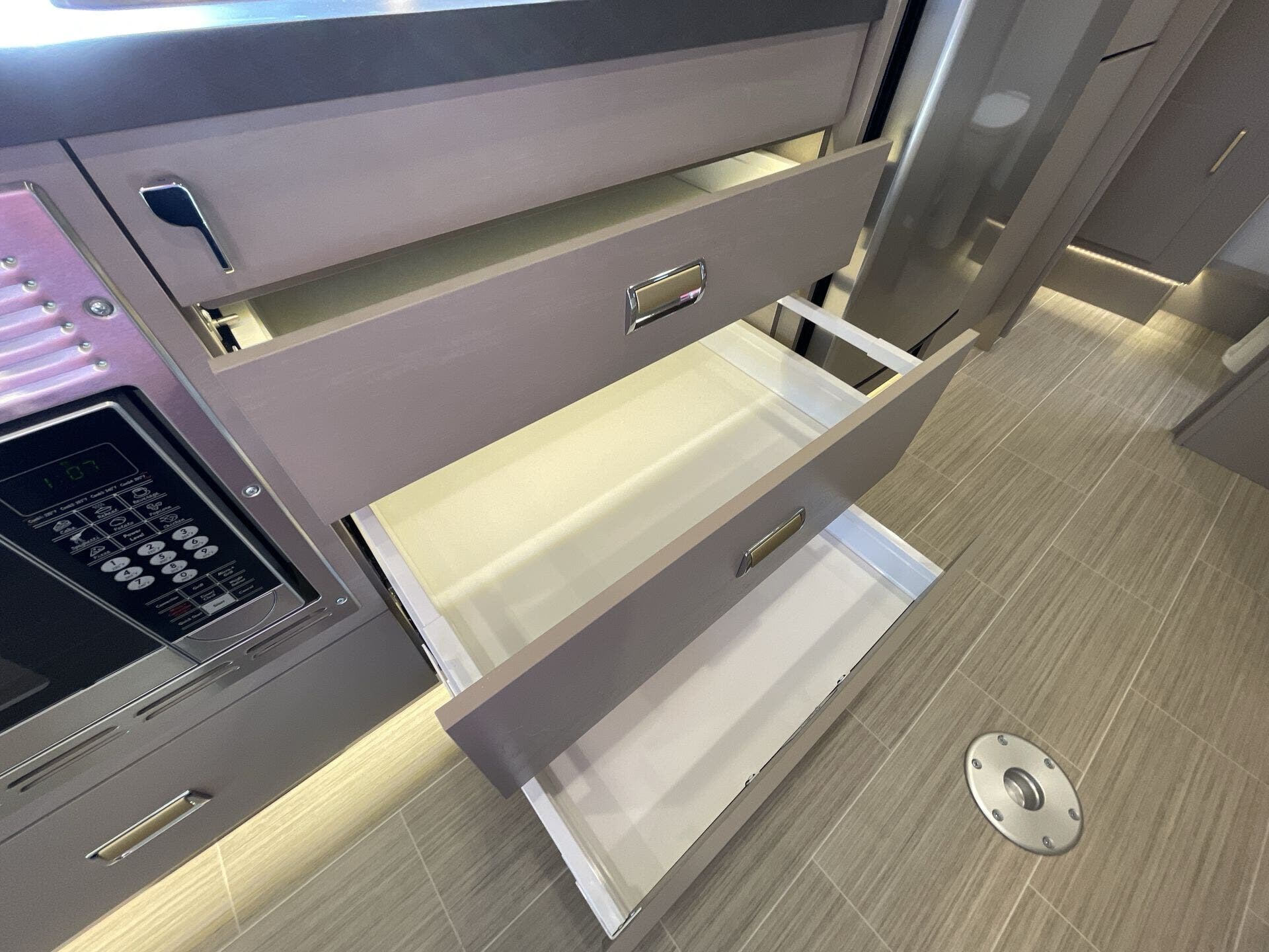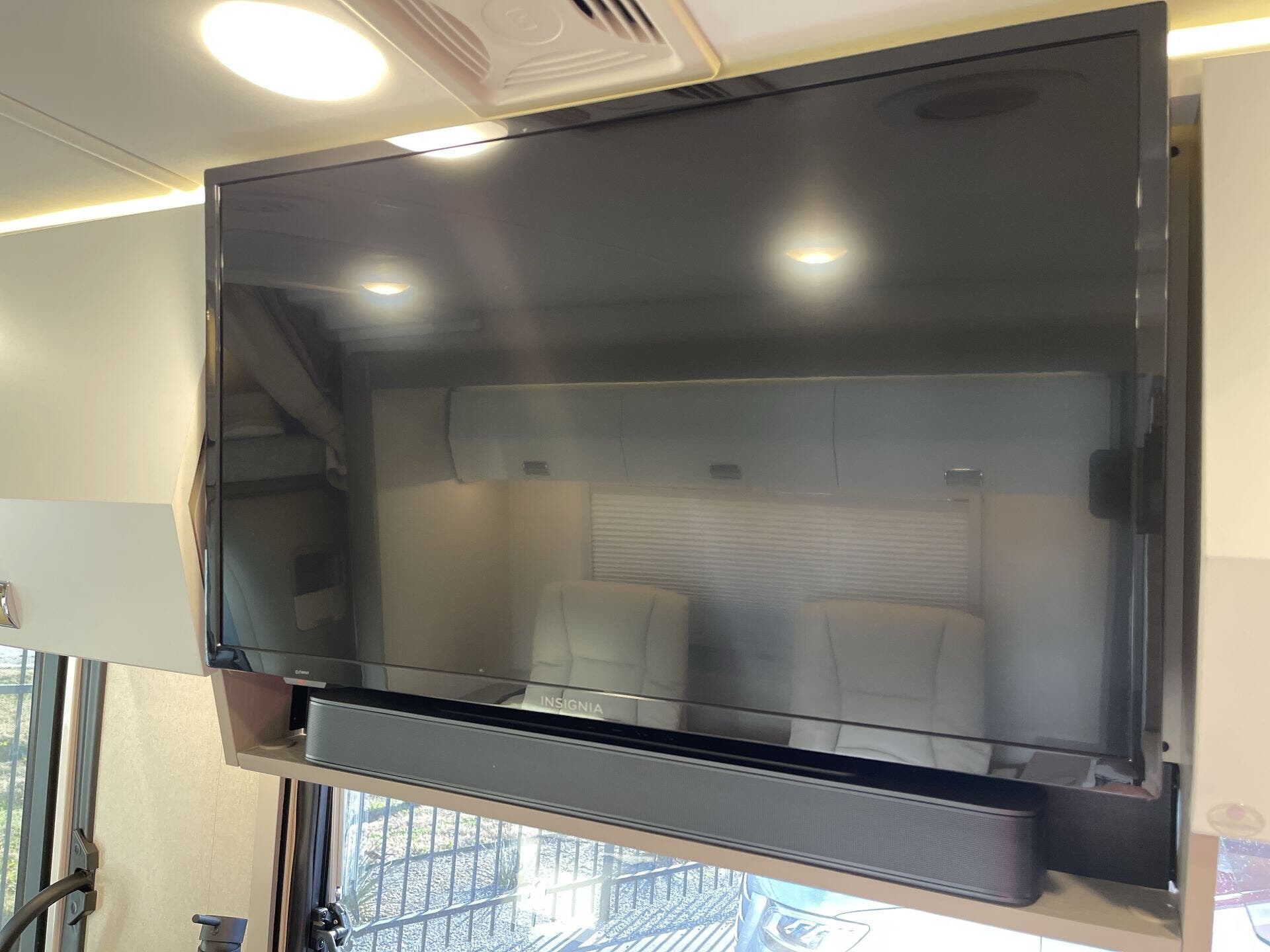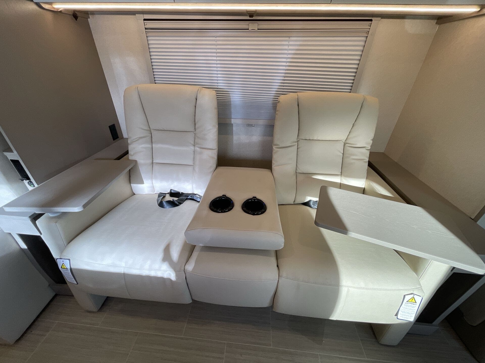 Inside, the 24D features a smart, open layout that maximizes space and livability. The large slide-out expands the living area to include comfortable seating and a versatile dinette, while the fully equipped kitchen offers solid-surface countertops, stainless-steel appliances, and ample storage for extended travel. The cab’s swivel seats integrate seamlessly into the living space, creating an inviting area to relax, dine, or entertain. Premium finishes, LED lighting, and panoramic windows add to the upscale, residential feel.