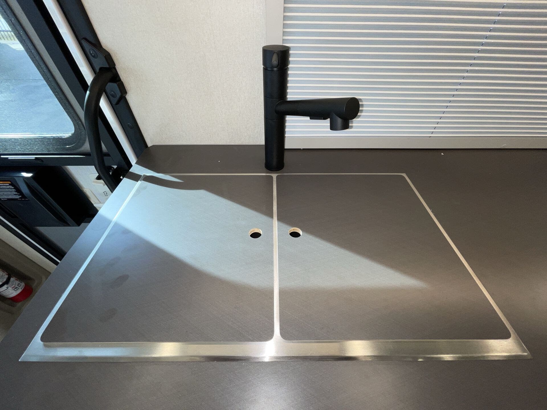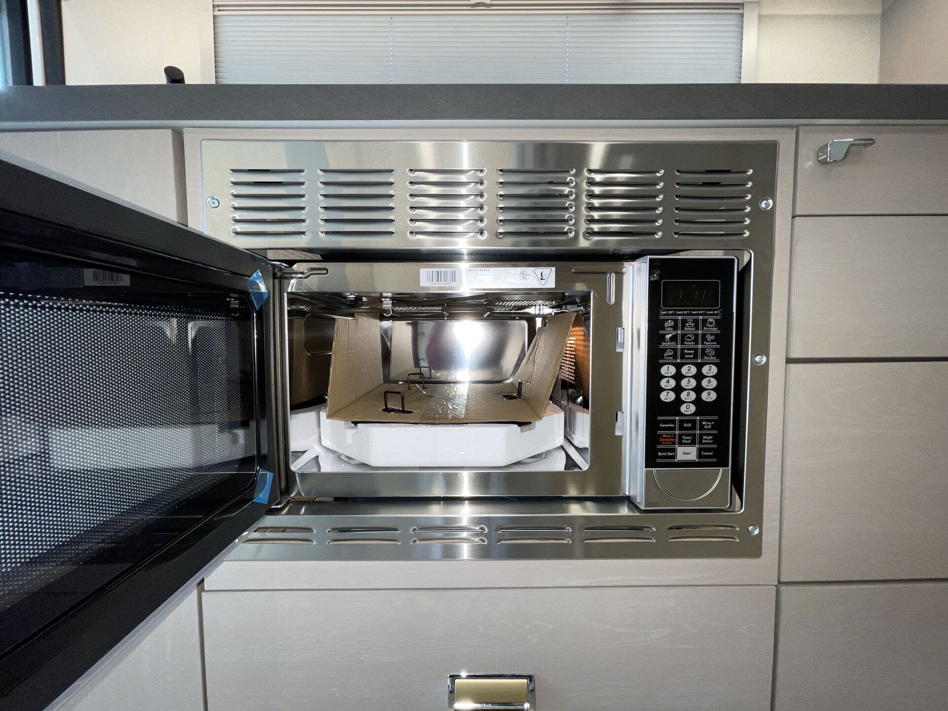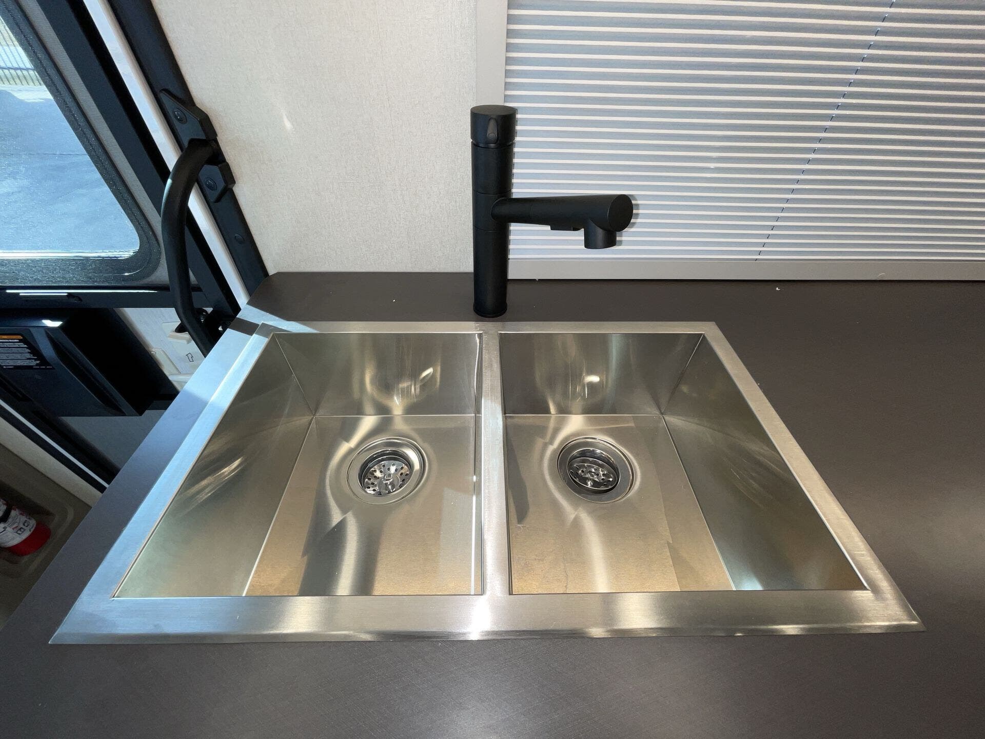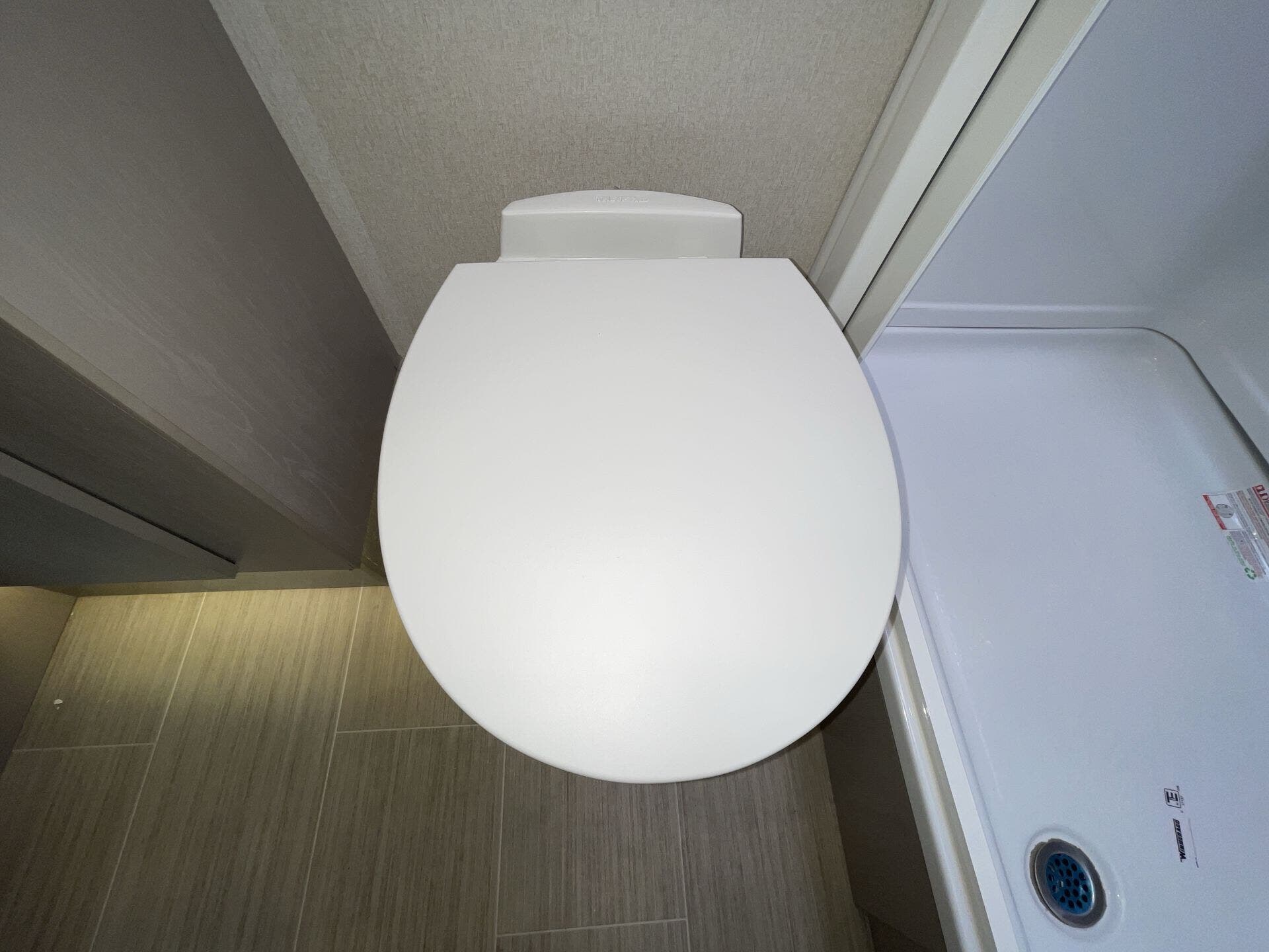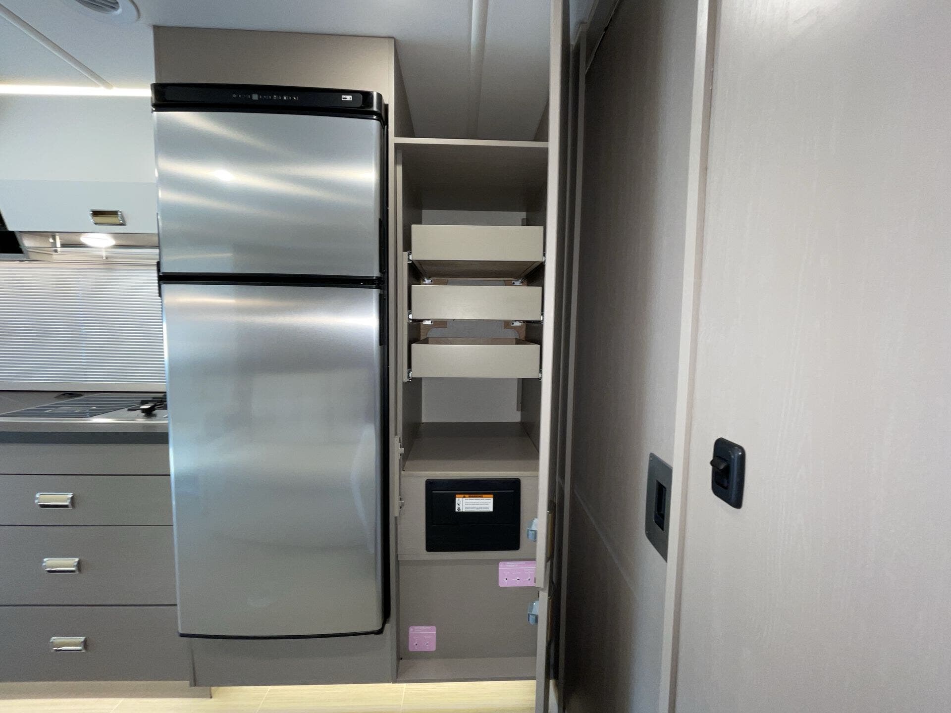 Day/Night Shades, Kitchen Sink, Medicine Cabinet, Mini Blinds, Murphy Bed, Overhead Cabinetry, Pantry, Power Seats, Queen Bed, Removable Table, Roof Vents, Shower, Solid Surface Countertops, Theater Seating, Toilet, Wardrobe(s) -