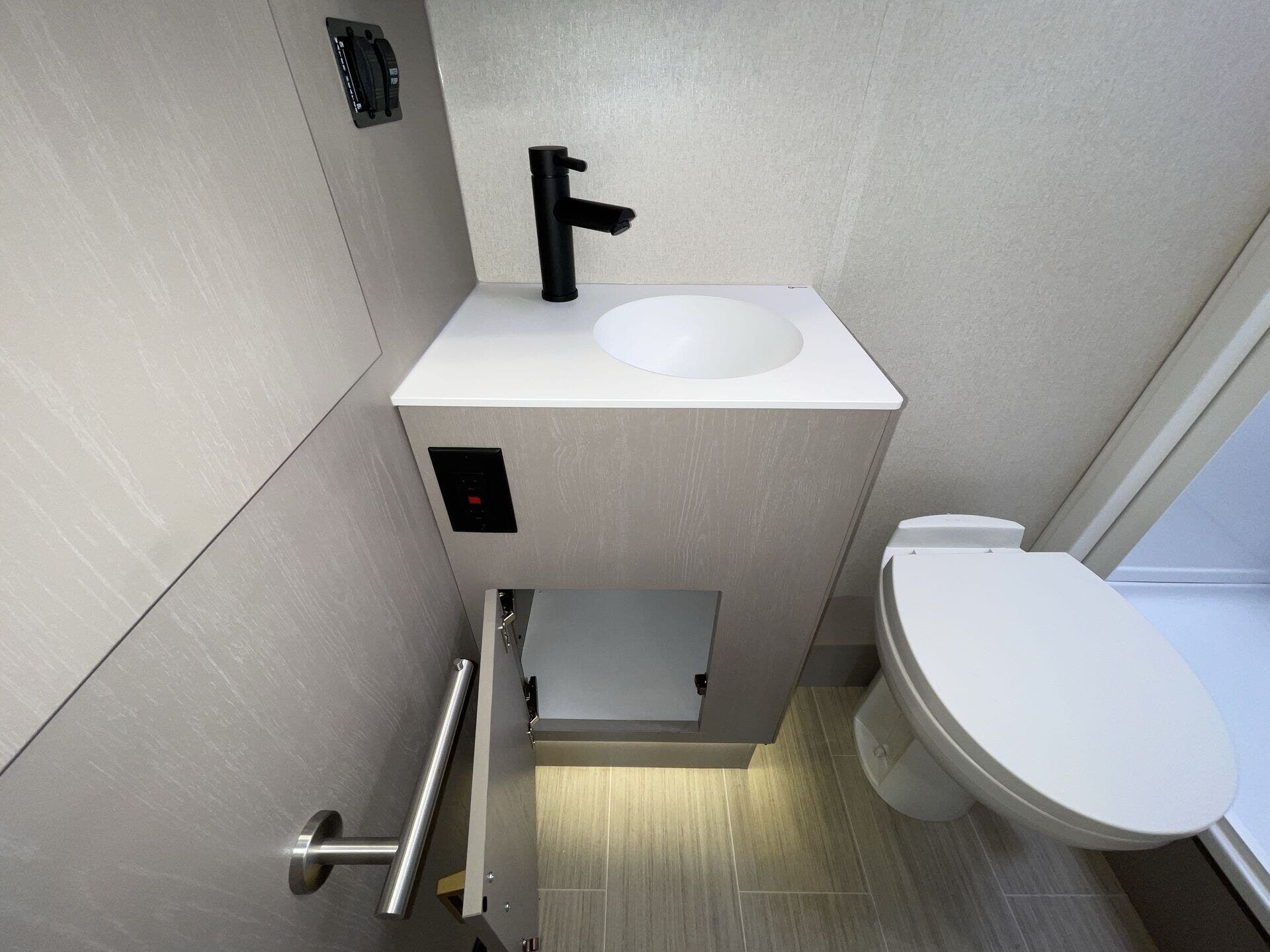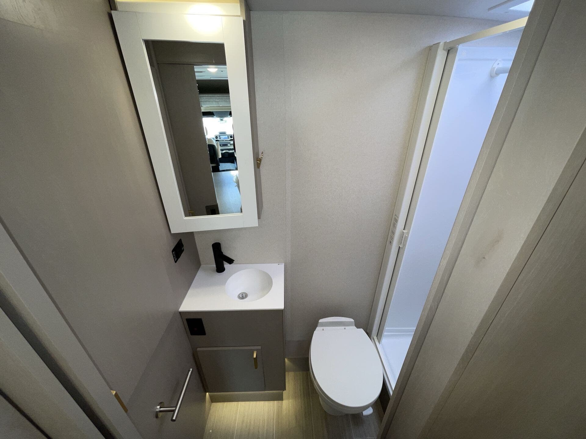 Spacious rear bathroom for a coach this size