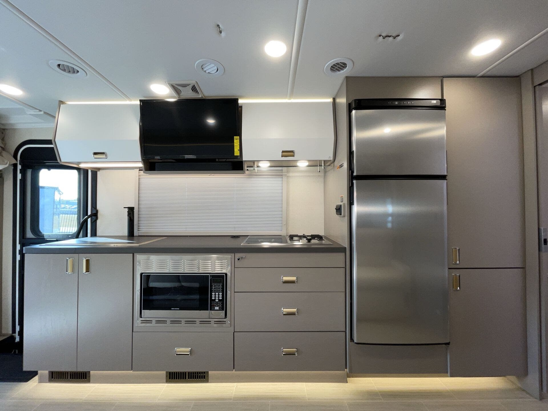 The theatre seats are great for relaxing after a long day. The rear bathroom is nice and roomy, and the kitchen layout gives you everything you need without feeling cramped.