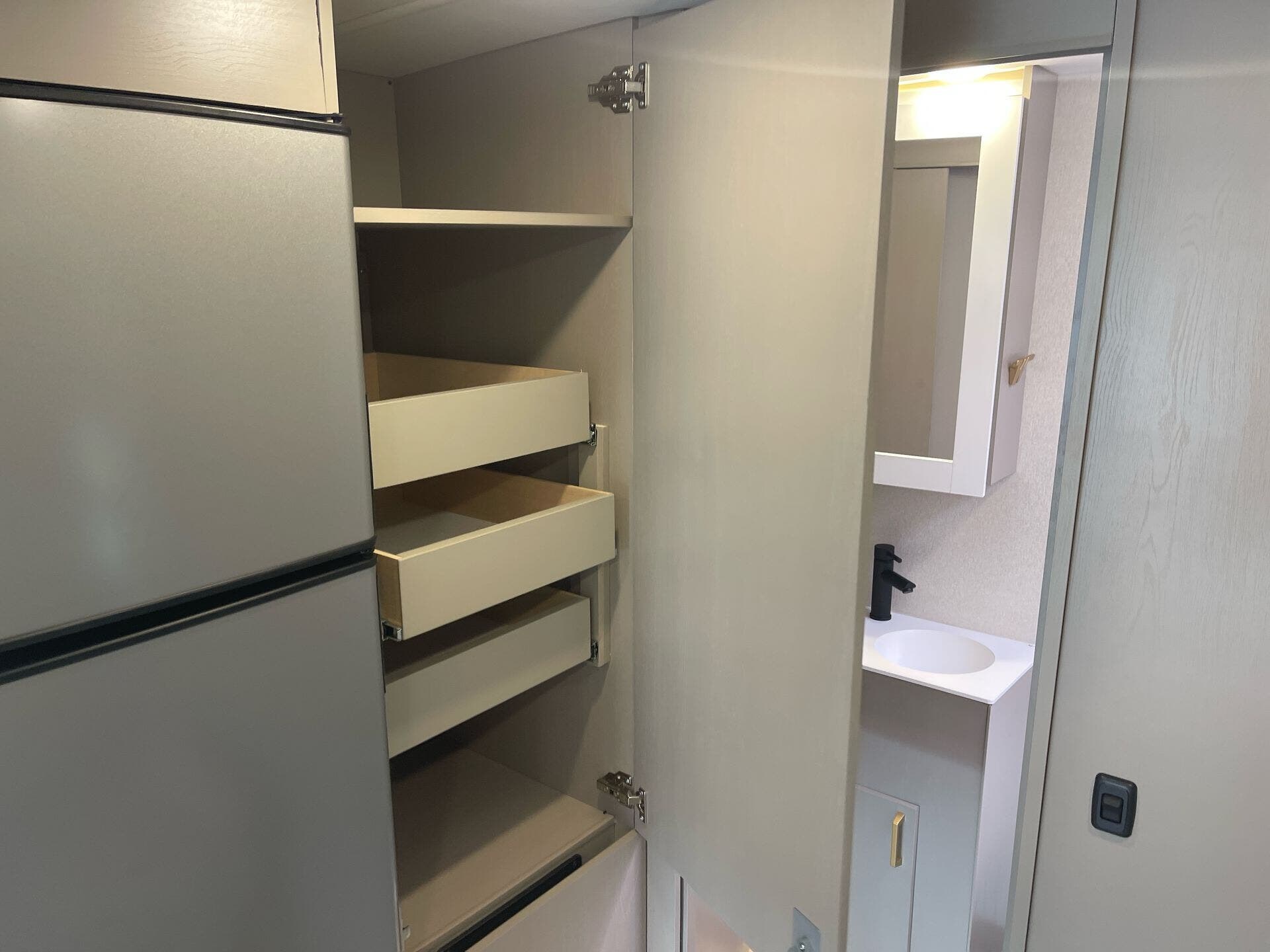 Dinette, Medicine Cabinet, Mini Blinds, Pantry, Queen Bed, Shower, Toilet, U-Shaped Dinette -