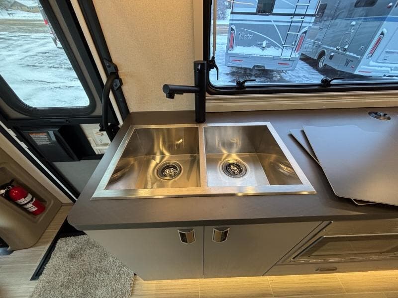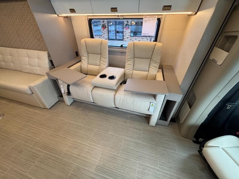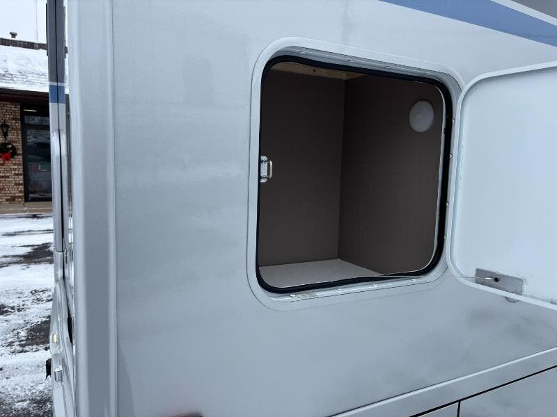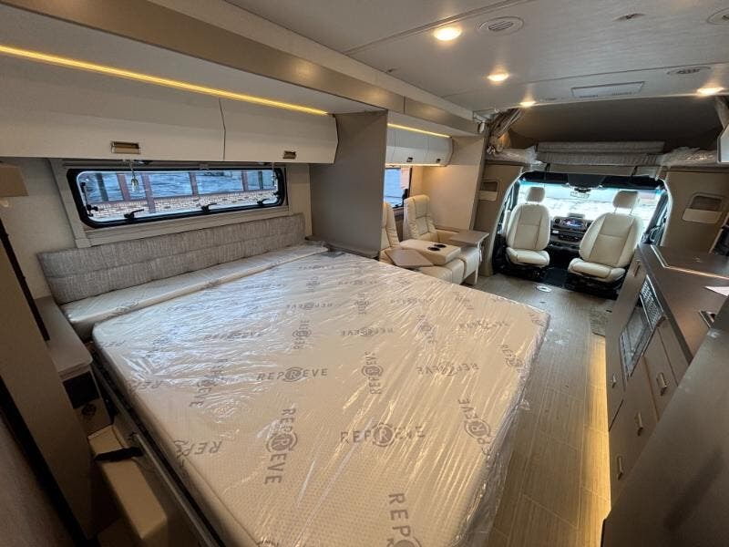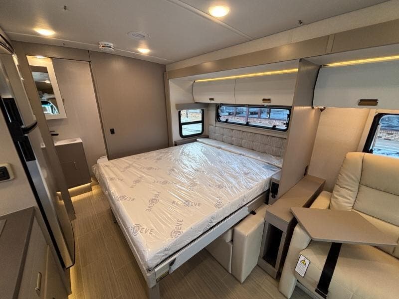 Features Include: 250-Amp Alternator, Active Brake Assist, Lane Keeping Assist, Attention Assist, Hill Start Assist, Crosswind Assist, Power Windows, Seat Lumbar Support, Recline, Slide, Swivel, Tilt Wheel, Bluetooth Control, LED Porch Light, Aluminum Cab Steps, Stepwell Light, Soft Vinyl Ceiling, Vinyl Flooring, Tinted Glass Windows, Dining, Pantry (24D 24J 24T), Laminate Countertops, Galley Mini Blinds, Systems Center, Cable TV Hookup, 32-inch HDTV, Outdoor Speakers, Corner Bed, Foam Mattress (24J), Bathroom, Lockable Door (24R), Medicine Cabinet, Vanity Sink, Shower Skylight, (24D 24R 24T), Expansion Plug, Battery Pack Heating, Bluetooth Control, Expansion Plug, 3.8 LP Generator, 30-AmpService Cord, 45-Amp Converter, 15k AC Heat Pump, Lockable Water Fill, 10-ft Hose