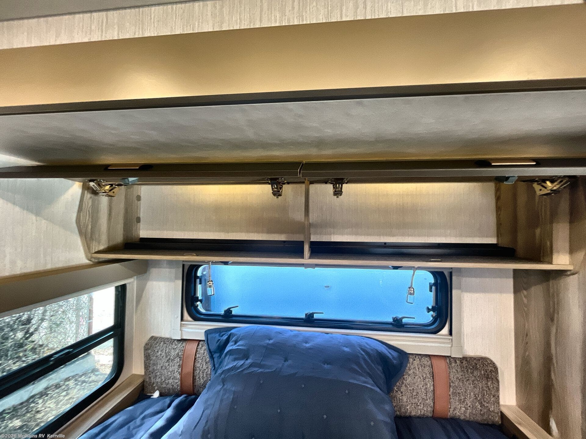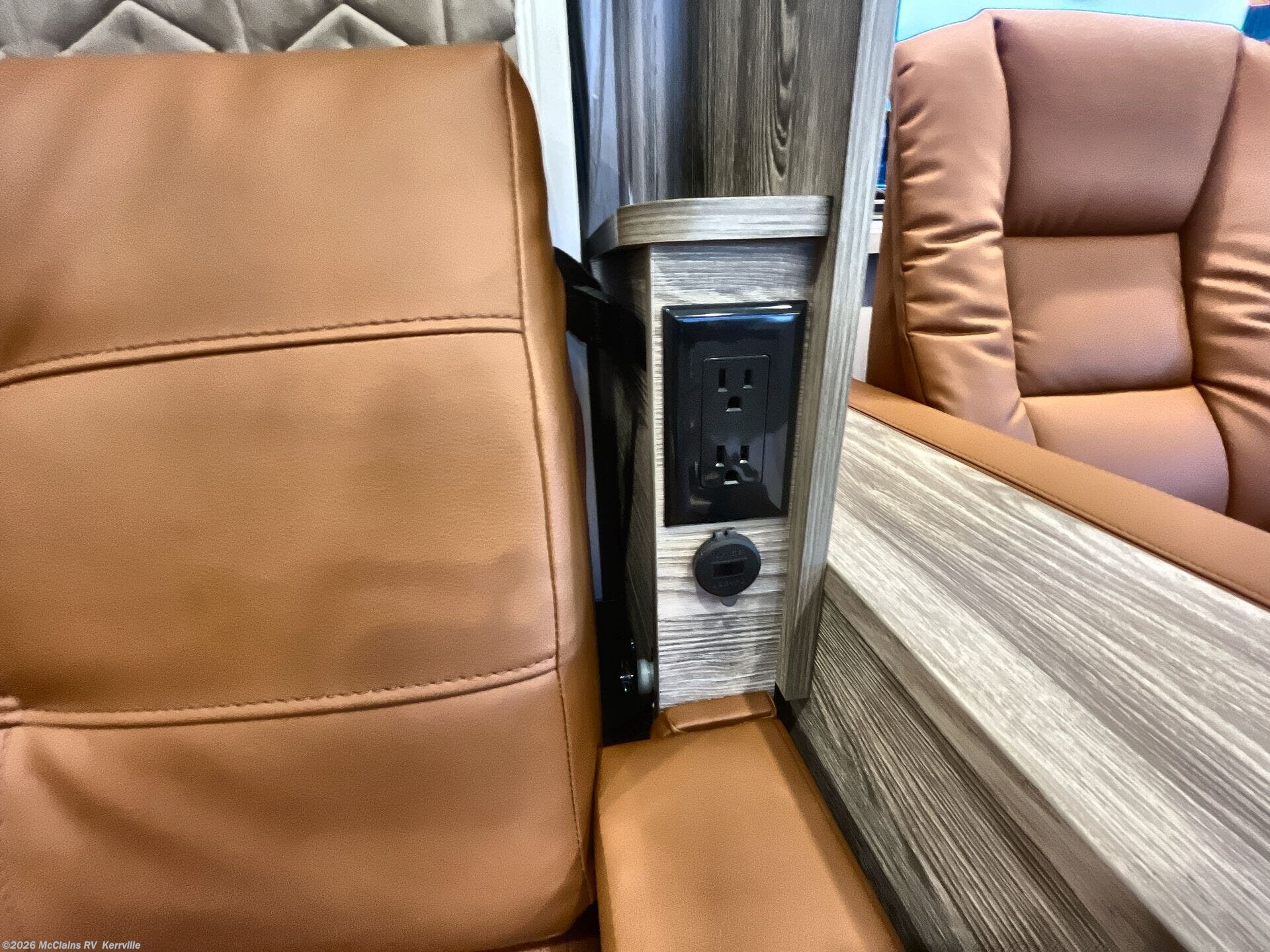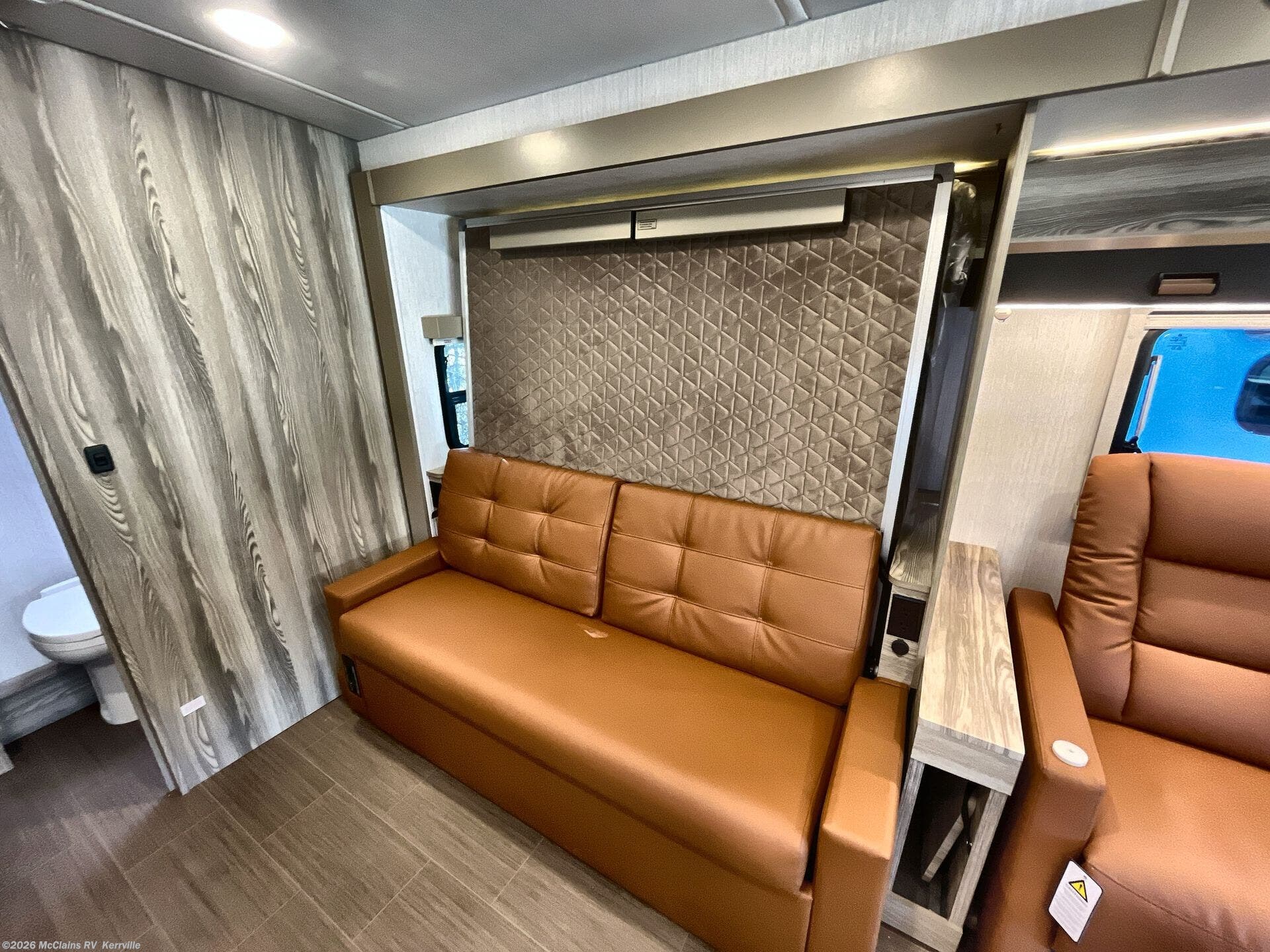 Step inside the Winnebago View 24D and you’ll find a smartly designed interior that maximizes both comfort and versatility. The comfortable theatre seating, surrounded by large windows, creates a bright and inviting space for meals, game nights, or simply relaxing with a view. By day, the flexible Murphy+ bed system keeps the living area open and functional; by night, it easily converts into a comfortable sleeping retreat without sacrificing space. The well-appointed rear bath features a roomy shower, modern fixtures, and generous storage, delivering a boutique-hotel feel on the road. Tying it all together, Winnebago Connect™ puts control of lighting, tanks, and climate systems at your fingertips, while the standard Lithionics® lithium battery system with solar and inverter capability provides quiet, reliable off-grid power for extended adventures wherever you roam.