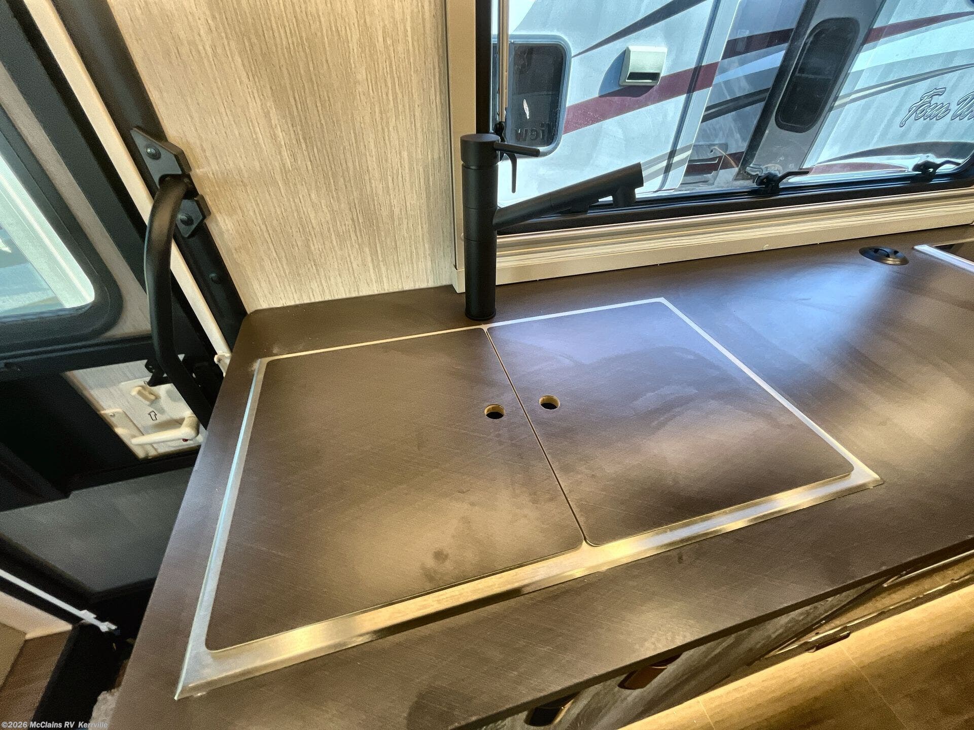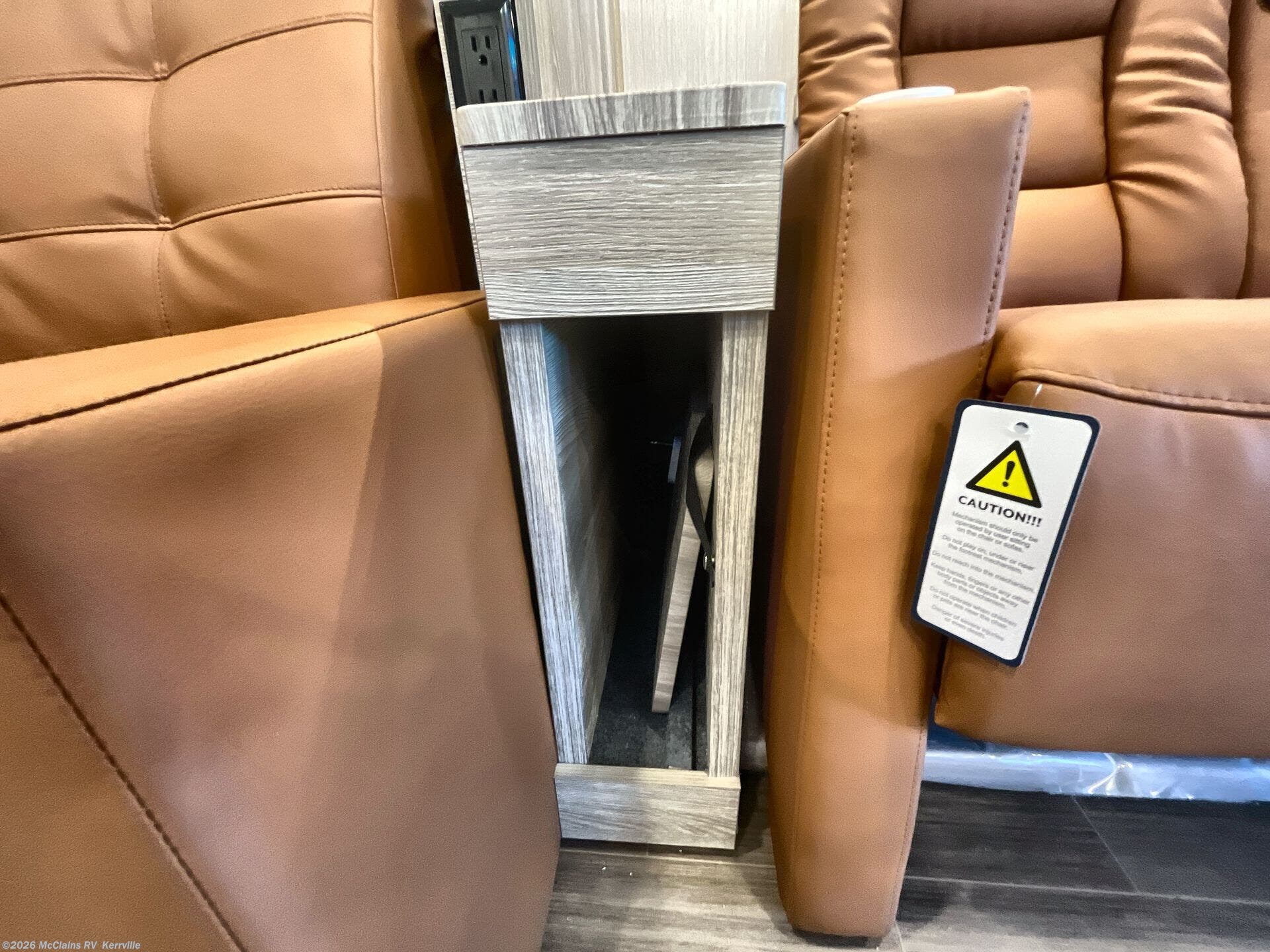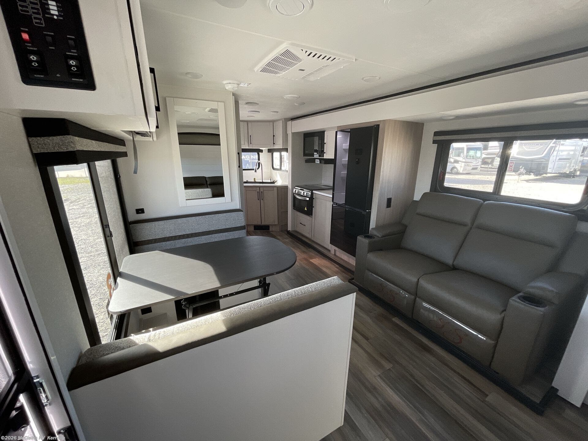 Step inside the Winnebago View 24D and you’ll find a smartly designed interior that maximizes both comfort and versatility. The comfortable theatre seating, surrounded by large windows, creates a bright and inviting space for meals, game nights, or simply relaxing with a view. By day, the flexible Murphy+ bed system keeps the living area open and functional; by night, it easily converts into a comfortable sleeping retreat without sacrificing space. The well-appointed rear bath features a roomy shower, modern fixtures, and generous storage, delivering a boutique-hotel feel on the road. Tying it all together, Winnebago Connect™ puts control of lighting, tanks, and climate systems at your fingertips, while the standard Lithionics® lithium battery system with solar and inverter capability provides quiet, reliable off-grid power for extended adventures wherever you roam.