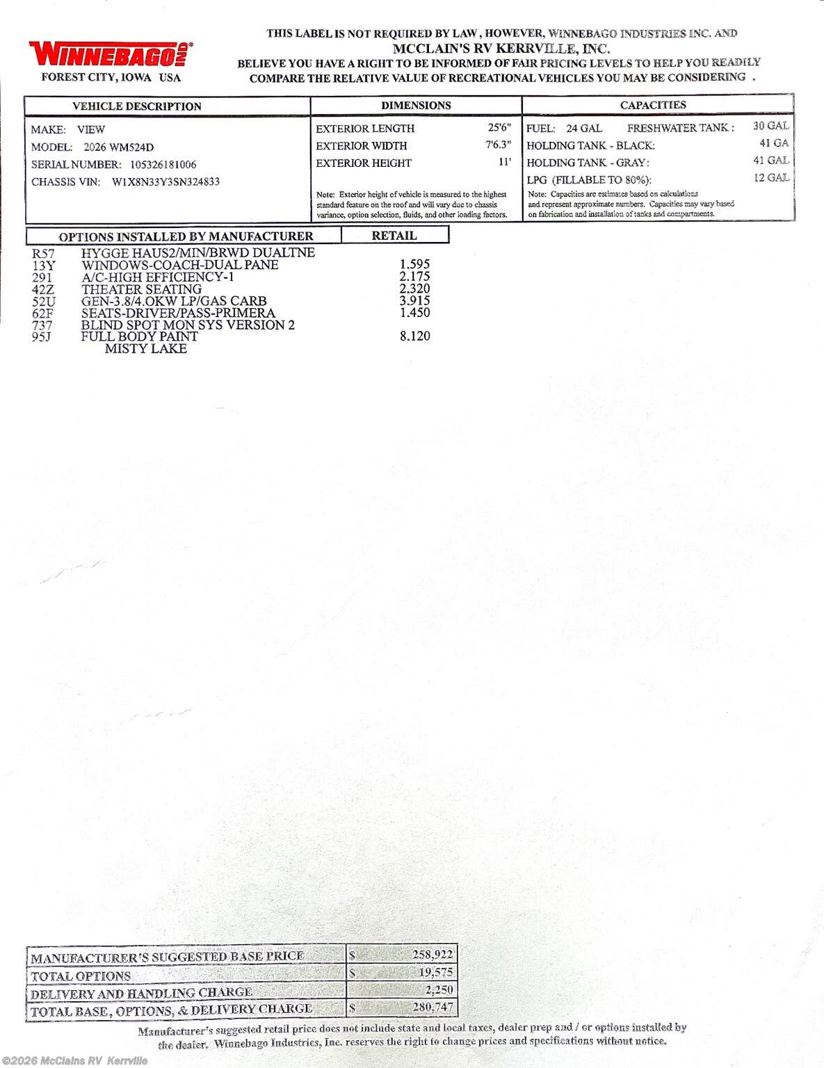 - MSRP $280,747.00