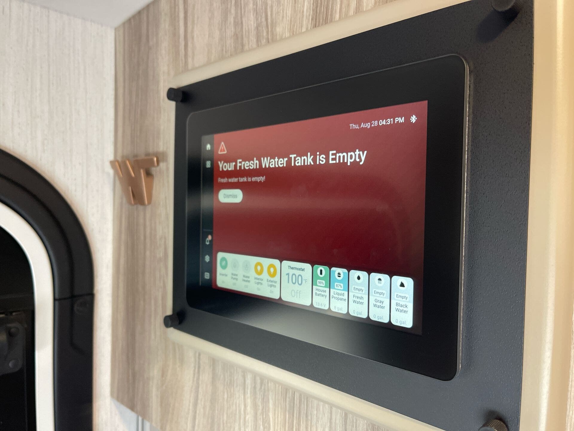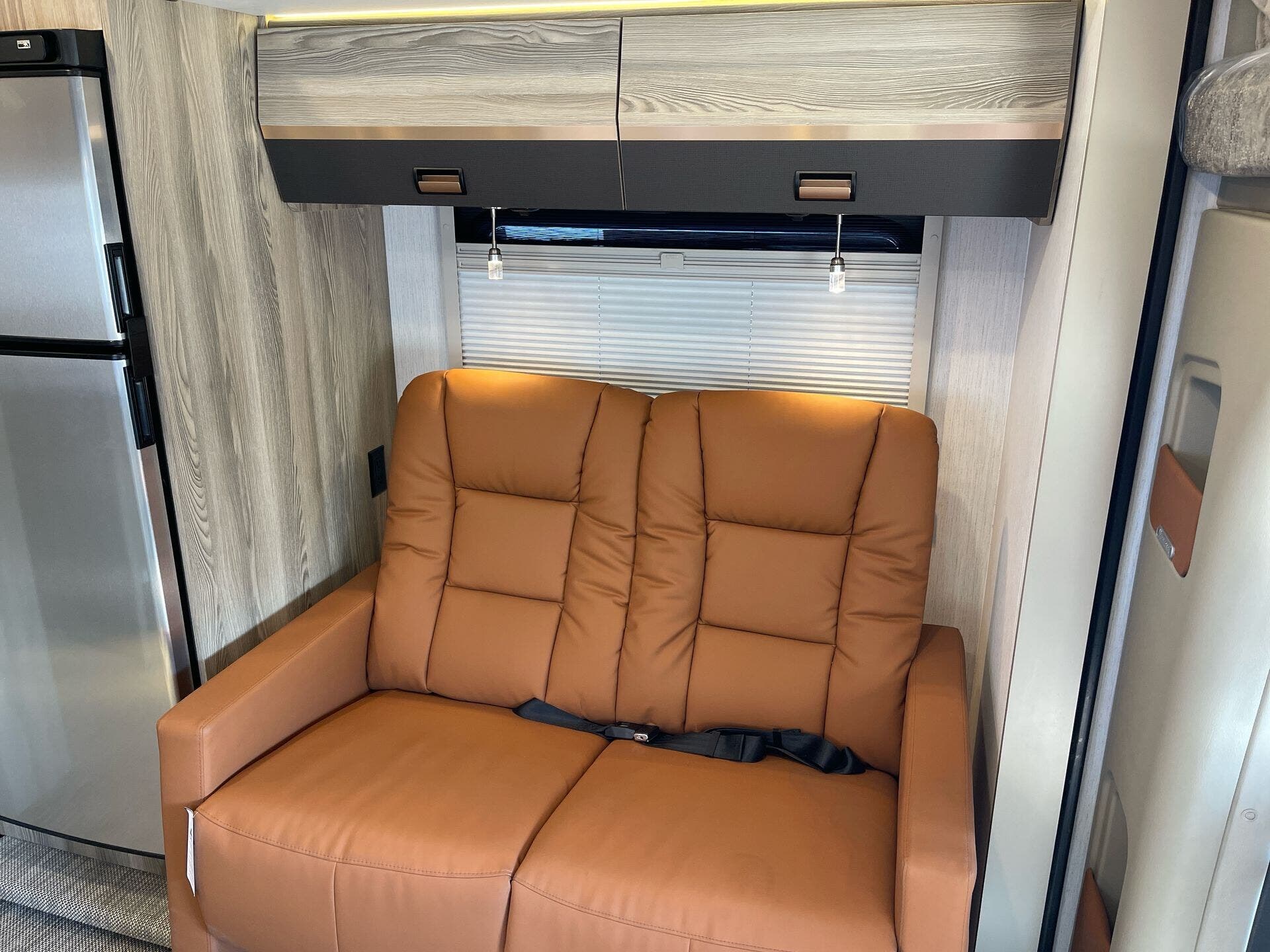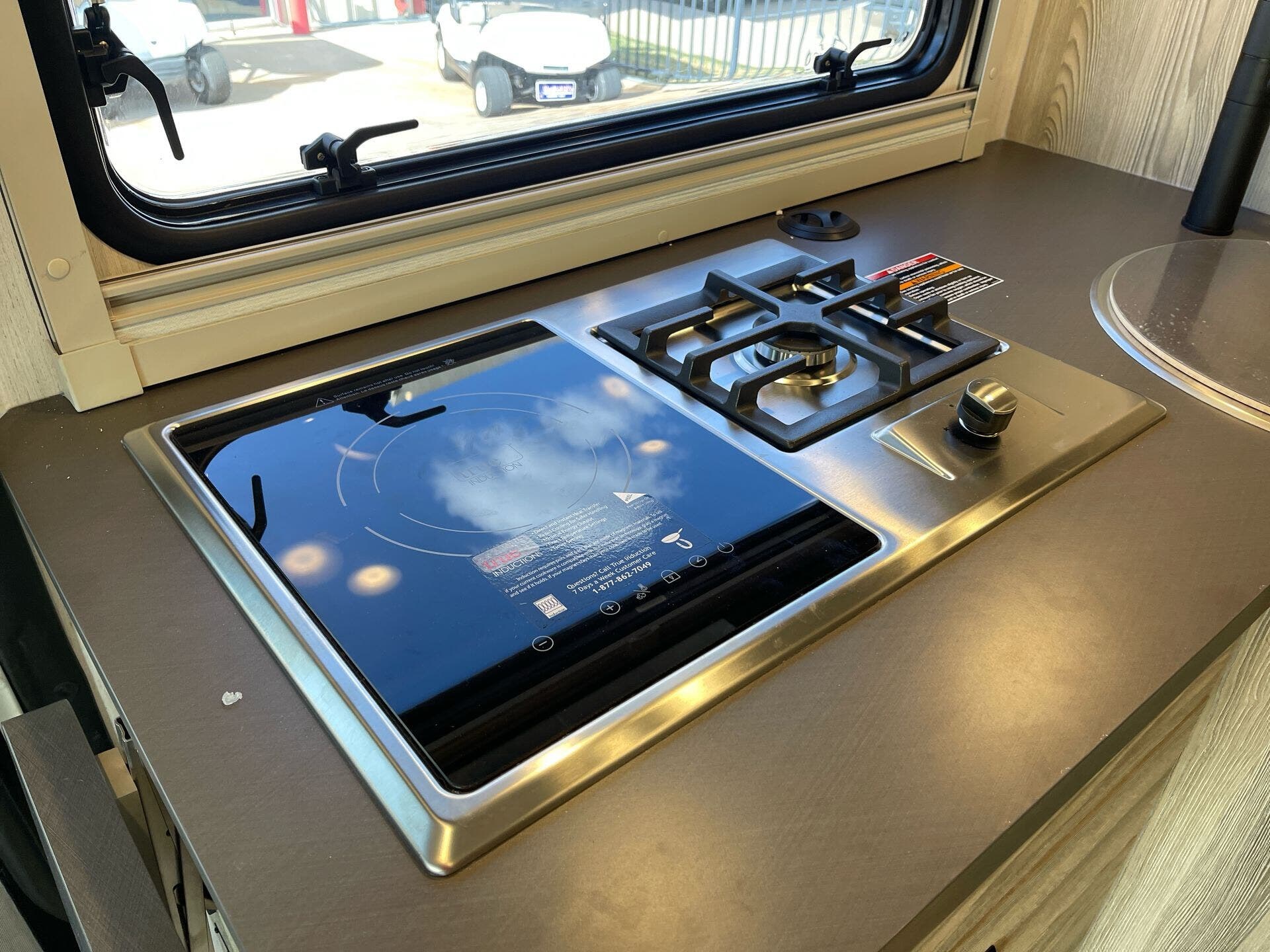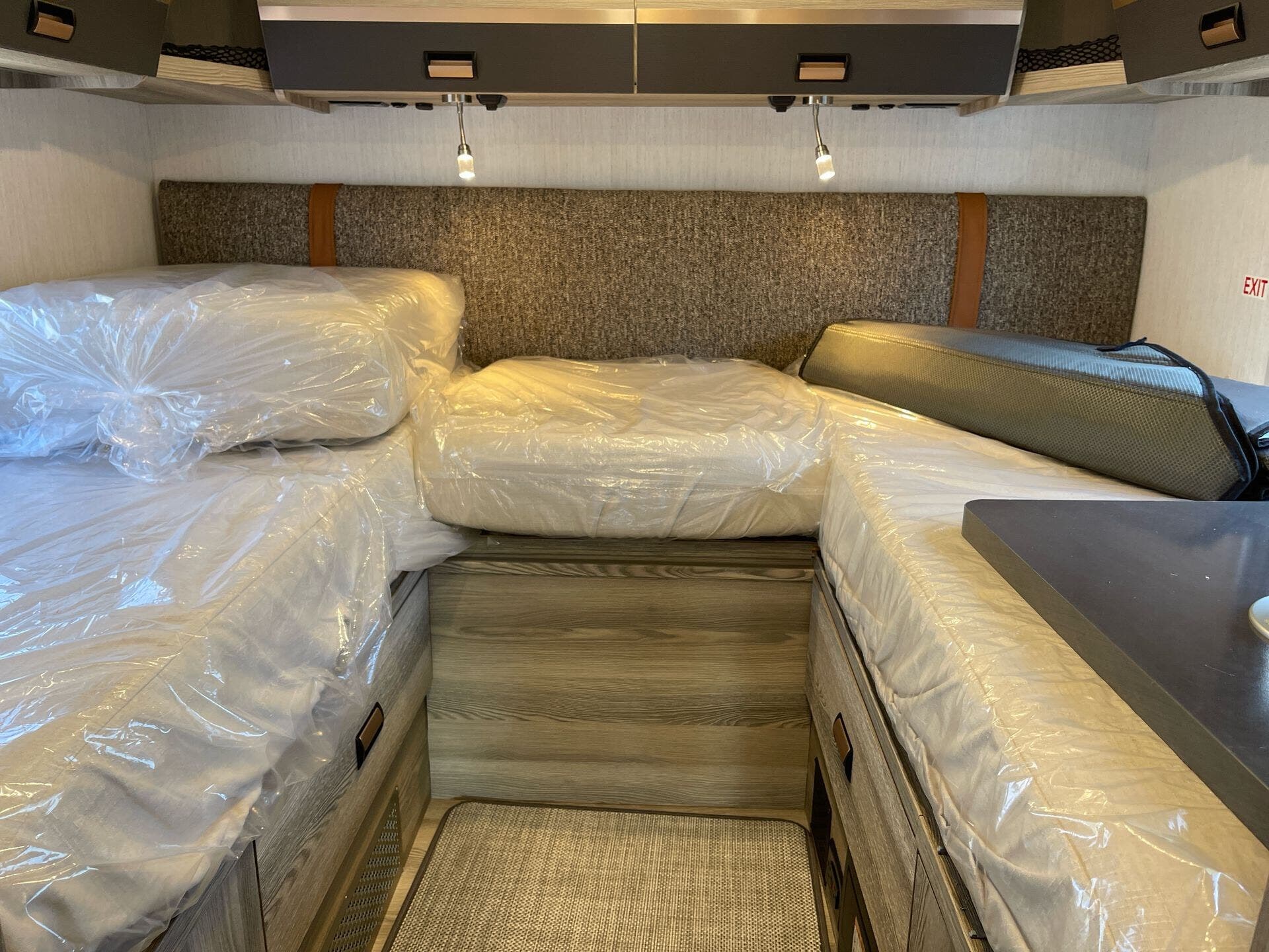 Designed for extended adventures, the 24R features impressive off-grid readiness with 240 W of solar power, lithium battery storage, and a 2,000 W inverter—supported by oversized holding tanks for low-maintenance stays off the grid. The interior balance includes a TrueComfort+ sofa and smart LP/induction cooktop, offering both luxury and functionality.