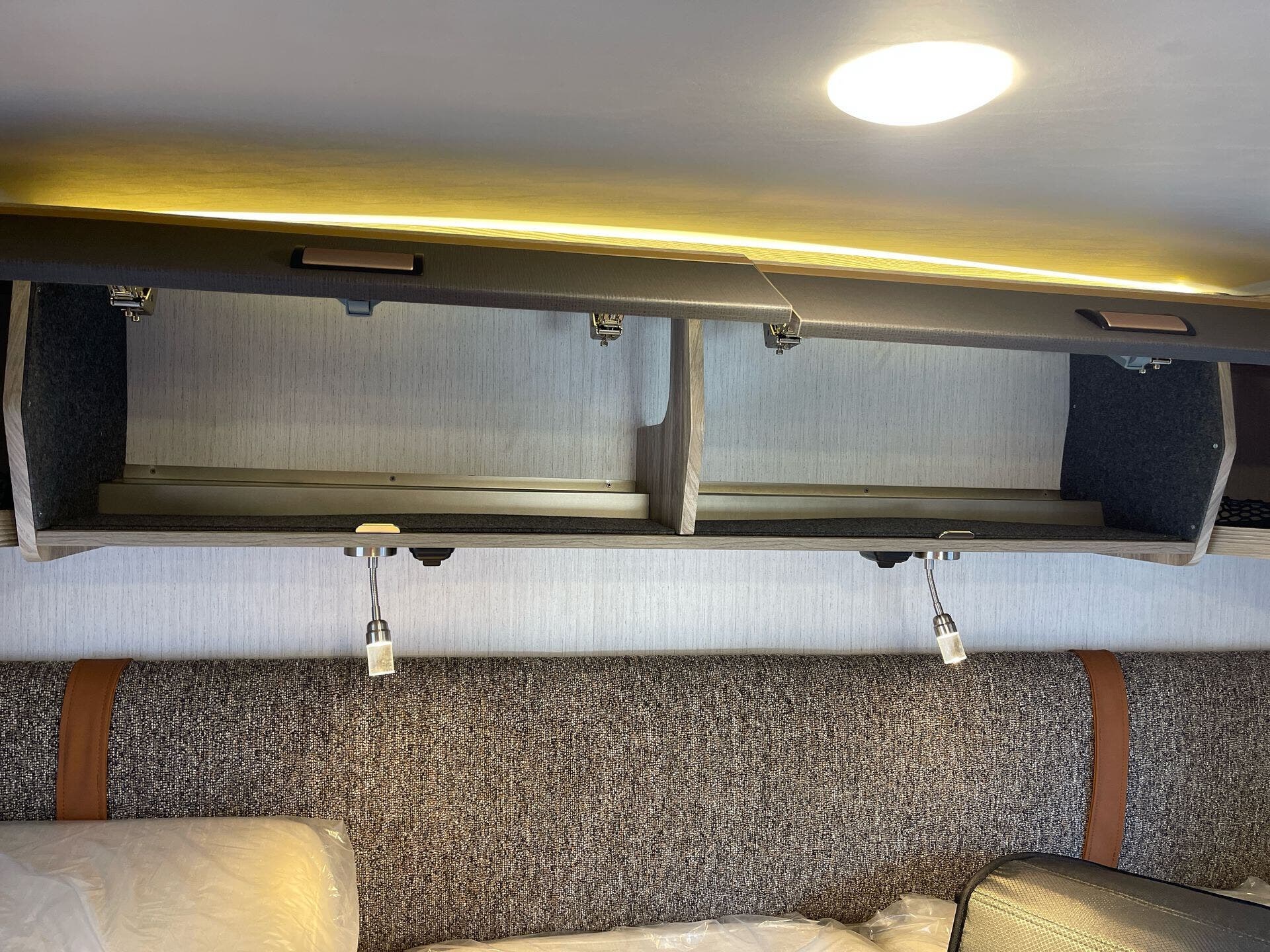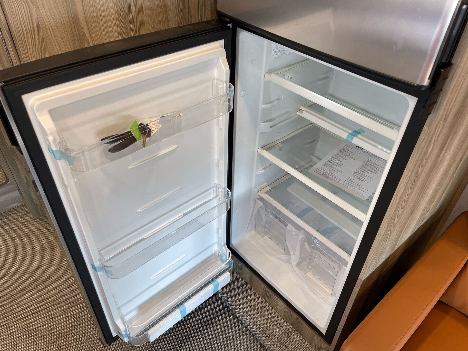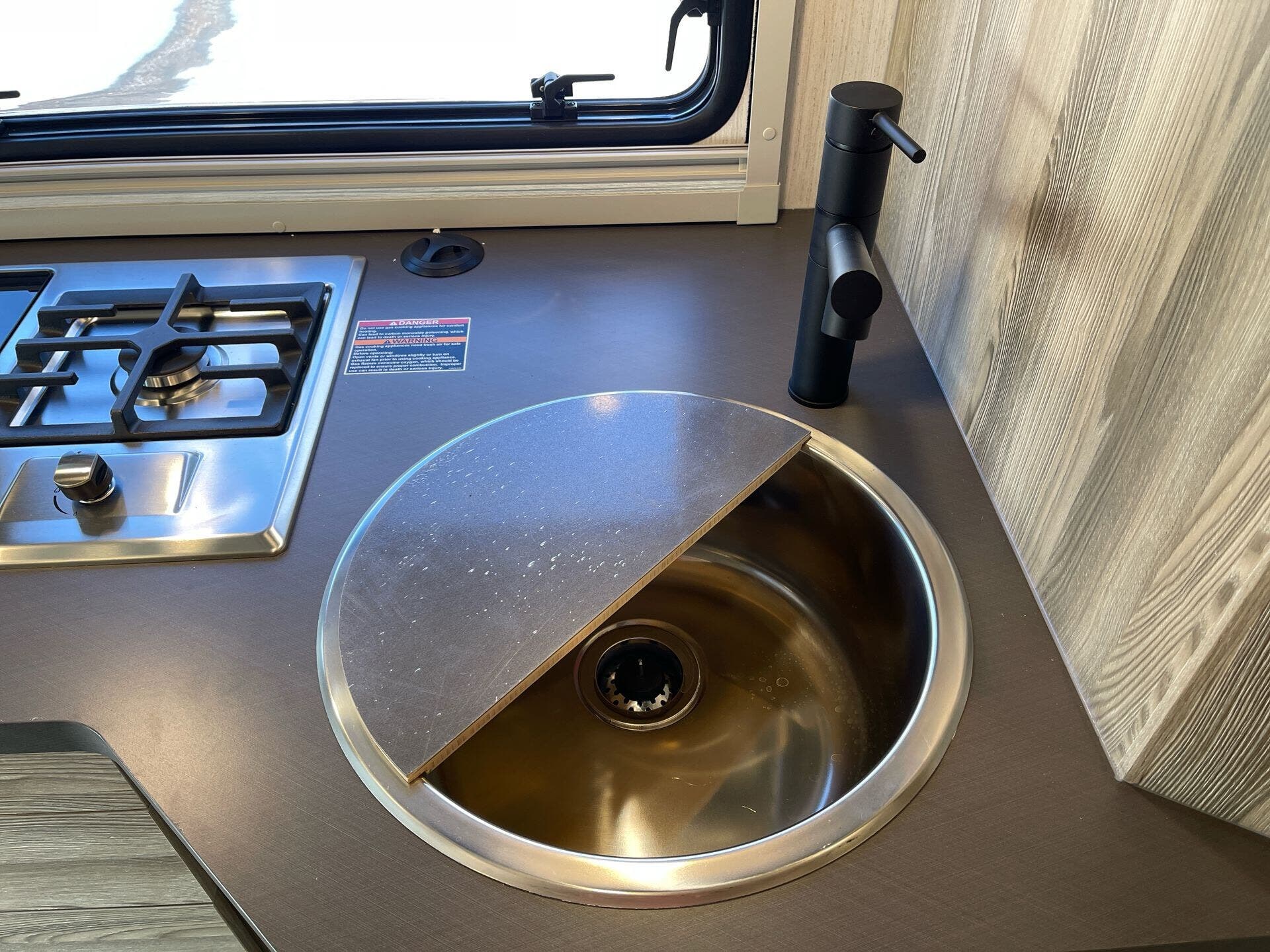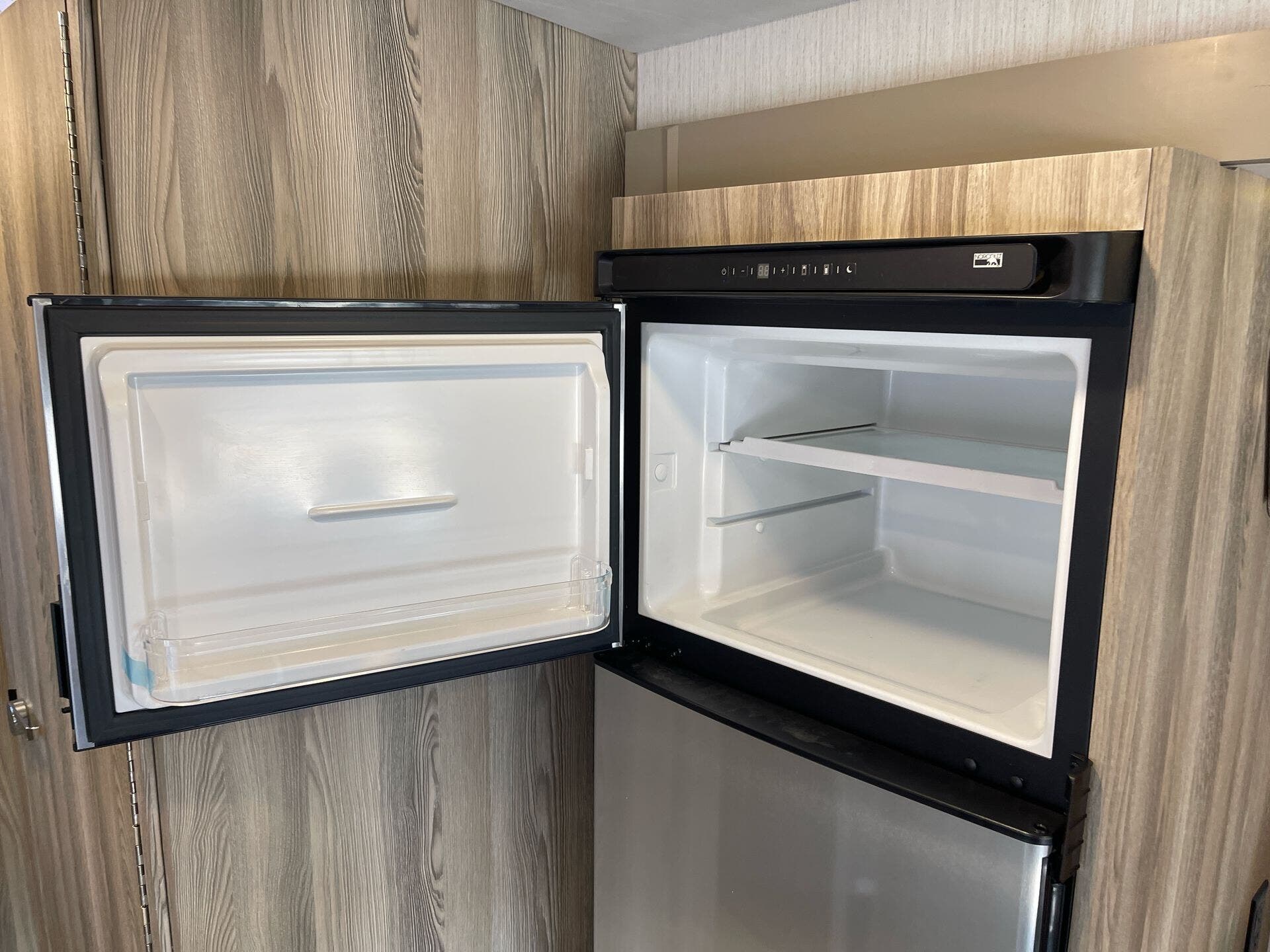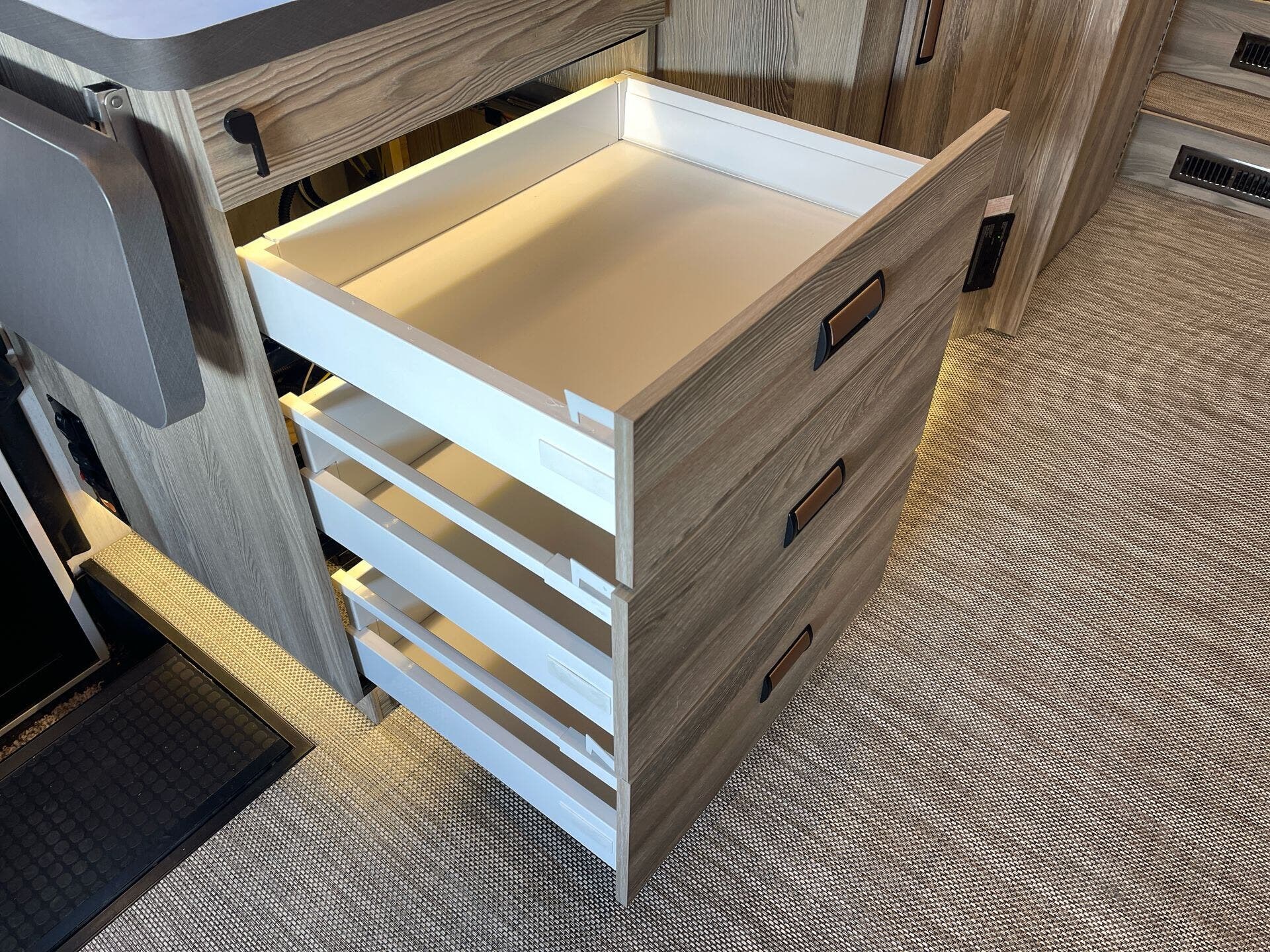 Designed for extended adventures, the 24R features impressive off-grid readiness with 240 W of solar power, lithium battery storage, and a 2,000 W inverter—supported by oversized holding tanks for low-maintenance stays off the grid. The interior balance includes a TrueComfort+ sofa and smart LP/induction cooktop, offering both luxury and functionality.