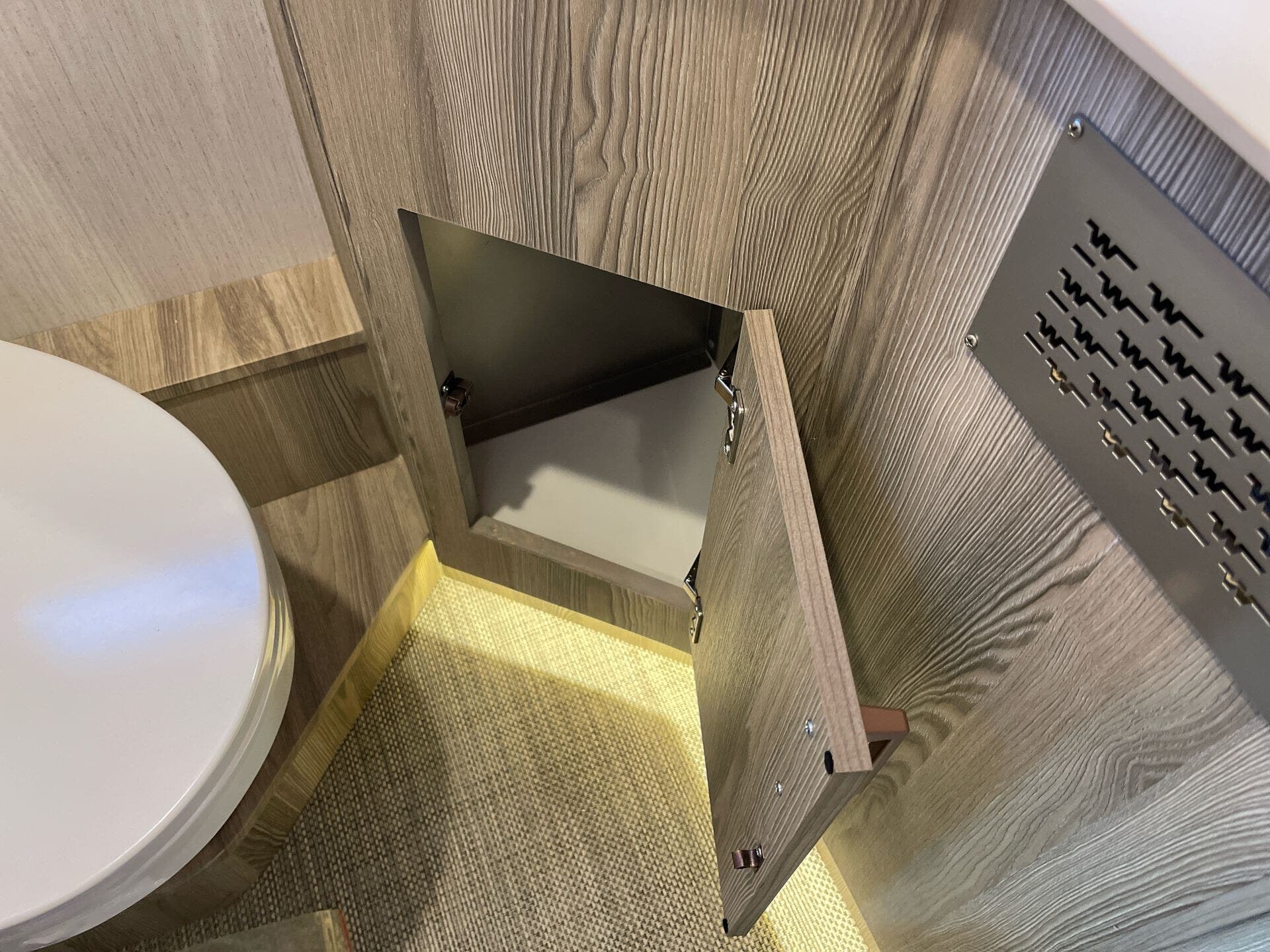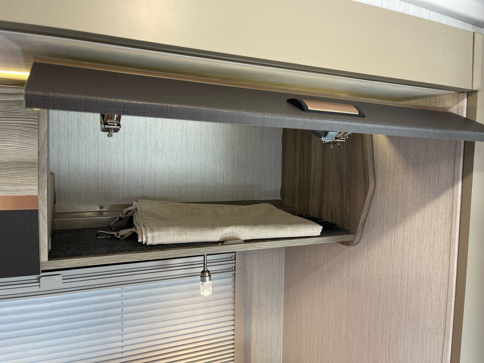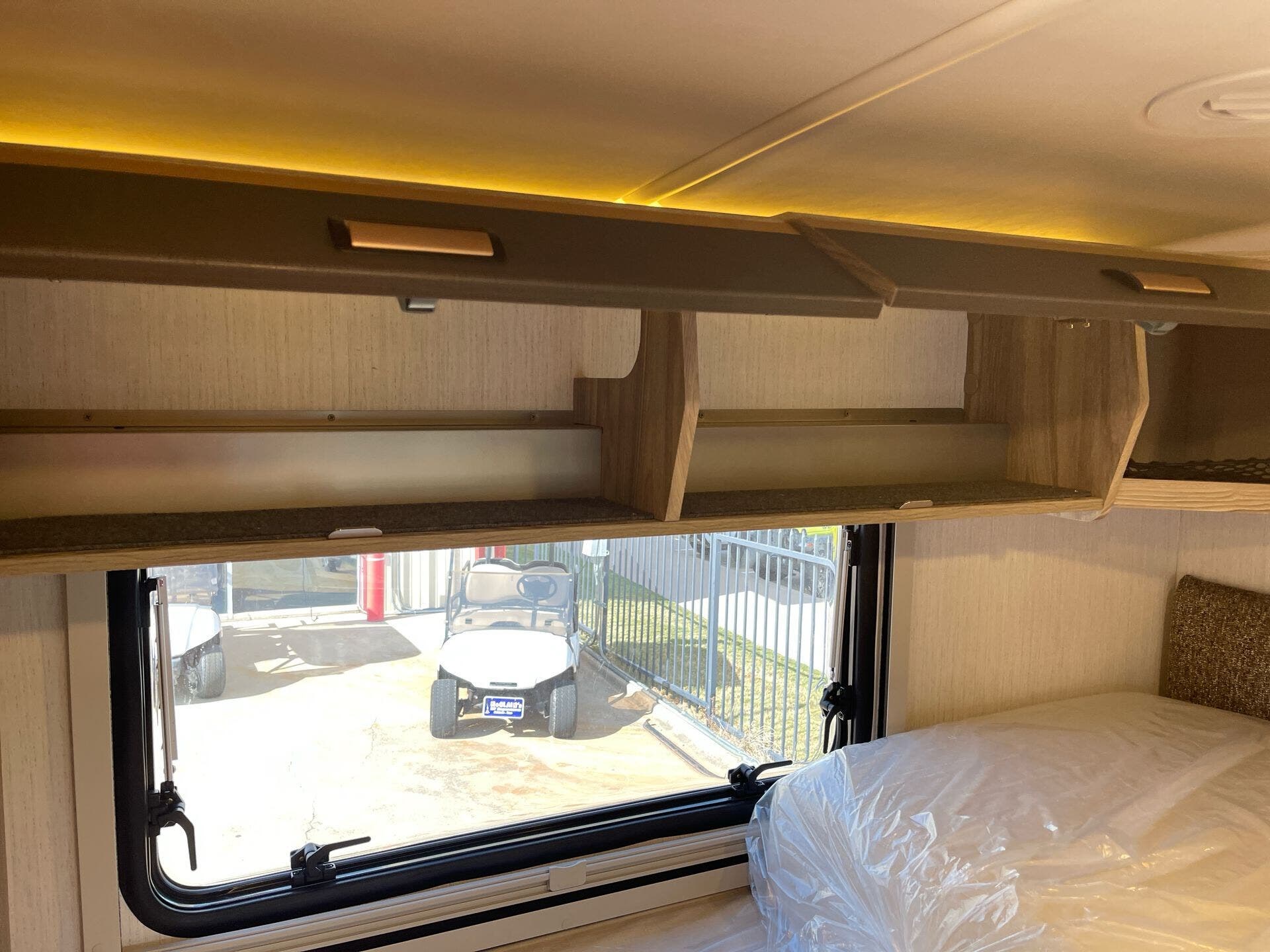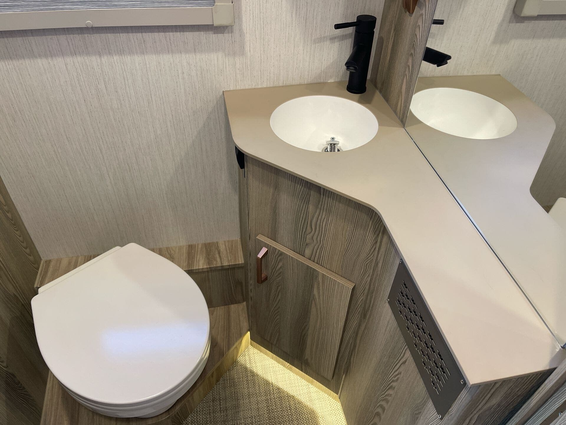 Designed for extended adventures, the 24R features impressive off-grid readiness with 240 W of solar power, lithium battery storage, and a 2,000 W inverter—supported by oversized holding tanks for low-maintenance stays off the grid. The interior balance includes a TrueComfort+ sofa and smart LP/induction cooktop, offering both luxury and functionality.