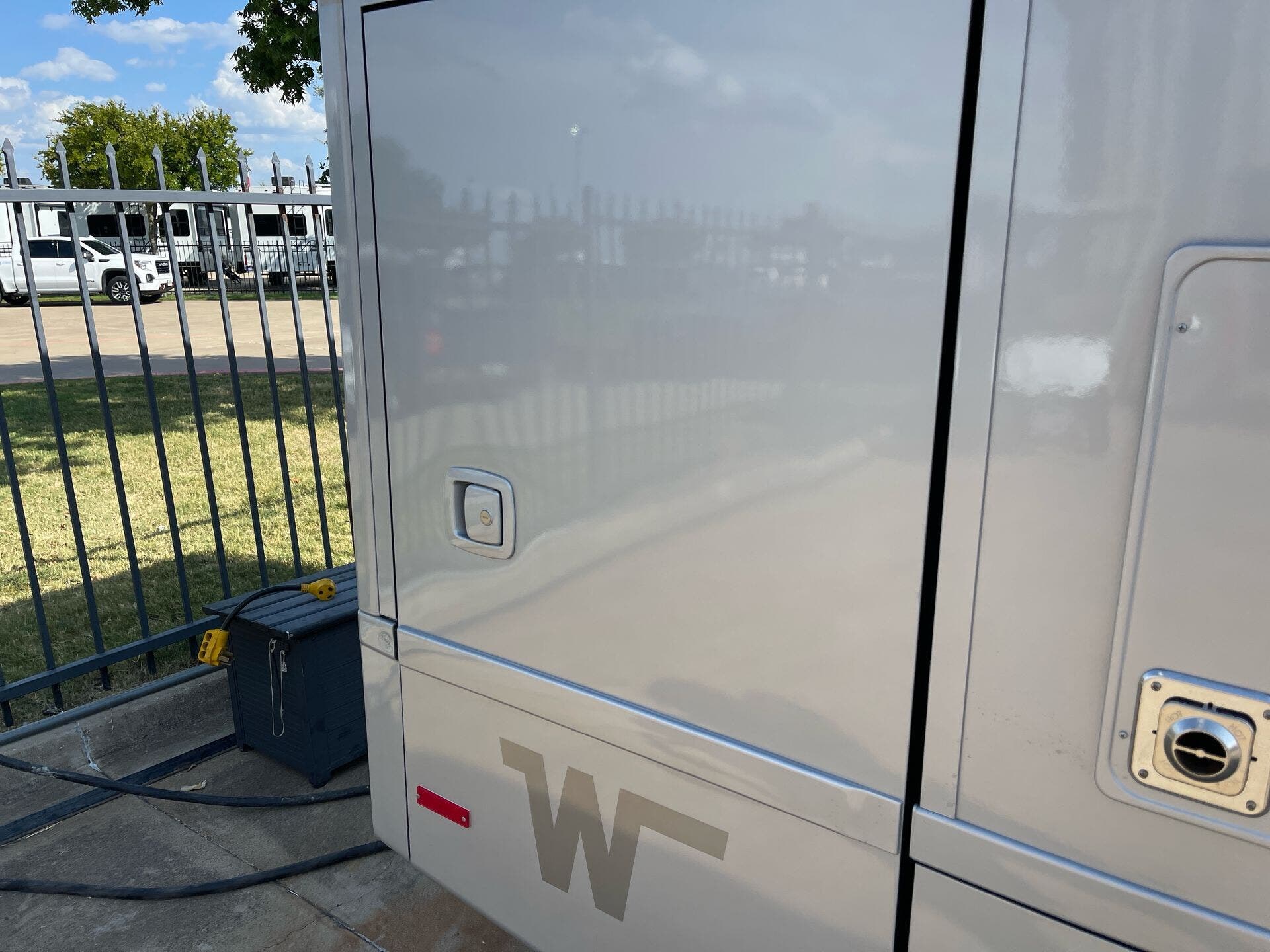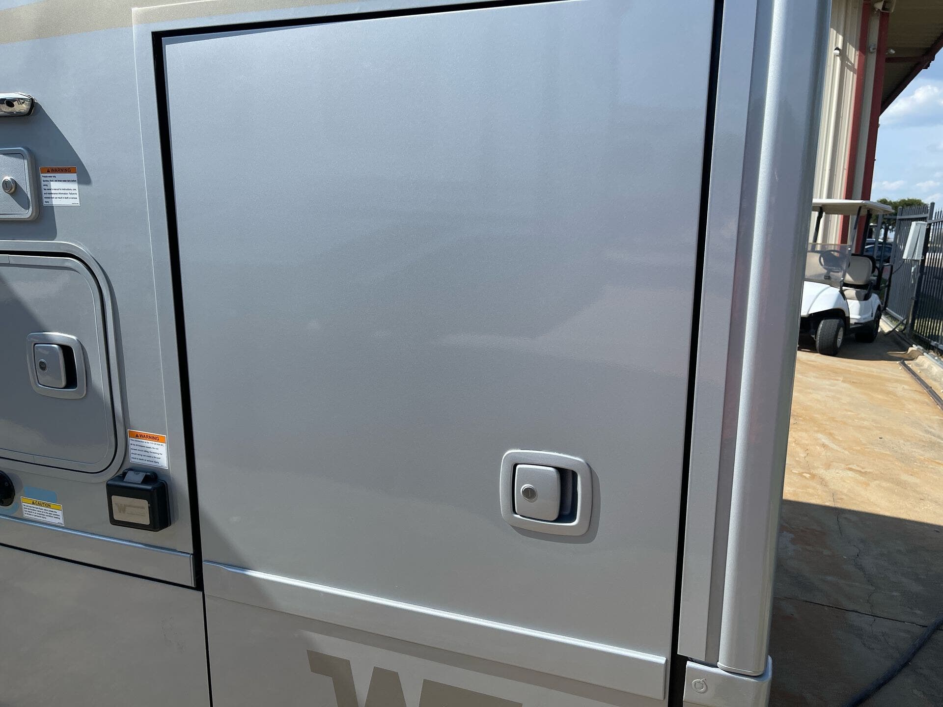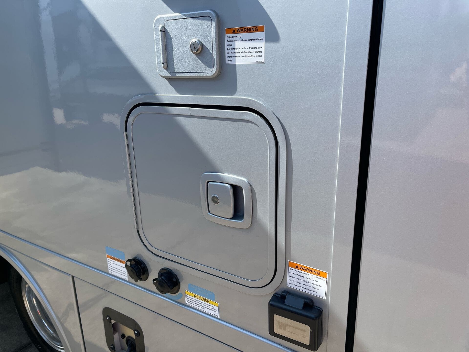 Comfort and connectivity come standard: Winnebago Connect™ system, a cross-aisle bath, twin beds that convert into an expansive sleeping surface, and a full-width gear garage enhance livability. Safety and convenience are prioritized, with features like hydraulic leveling jacks, LED awning, and a rear hitch rated for 5,000 lbs.