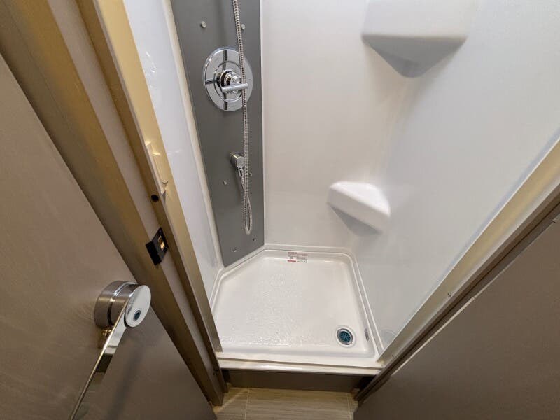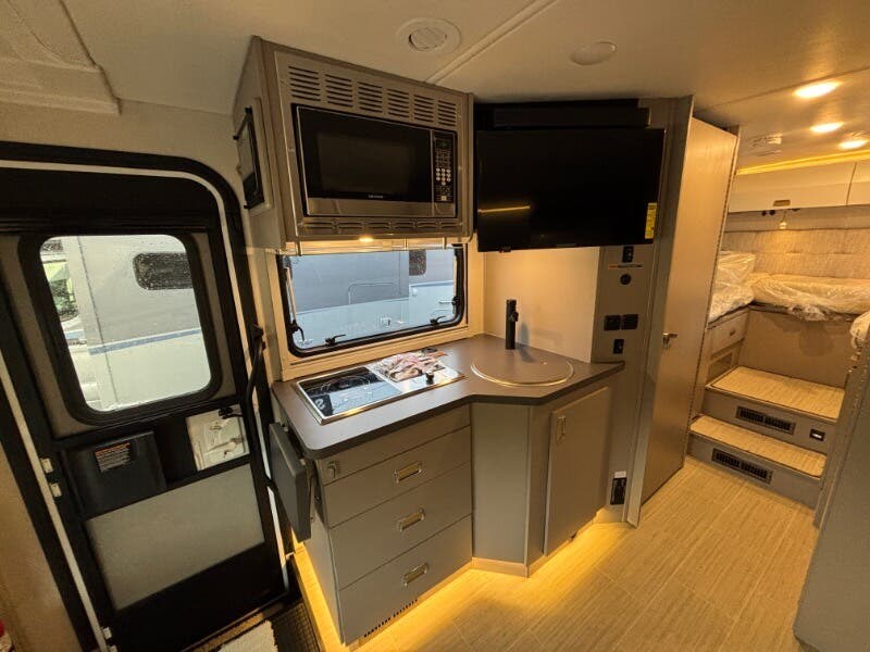 Features Include: 250-Amp Alternator, Active Brake Assist, Lane Keeping Assist, Attention Assist, Hill Start Assist, Crosswind Assist, Power Windows, Sunvisors, Tilt Wheel, Stepwell Light, Soft Vinyl Ceiling, Vinyl Flooring, Tinted Glass Windows, Dining, Pantry (24D 24J), Laminate Countertops, Galley Mini Blinds, 32-inch HDTV, Corner Bed (24J), Charging Station, Wardrobe Cabinet, Bathroom, Medicine Cabinet, Shower Skylight, (24R 24T), Expansion Plug, Battery Pack Heating, Bluetooth Control, Expansion Plug, 3.8 LP Generator, 30-AmpService Cord, 45-Amp Converter, 15k AC Heat Pump, Water Heater Bypass