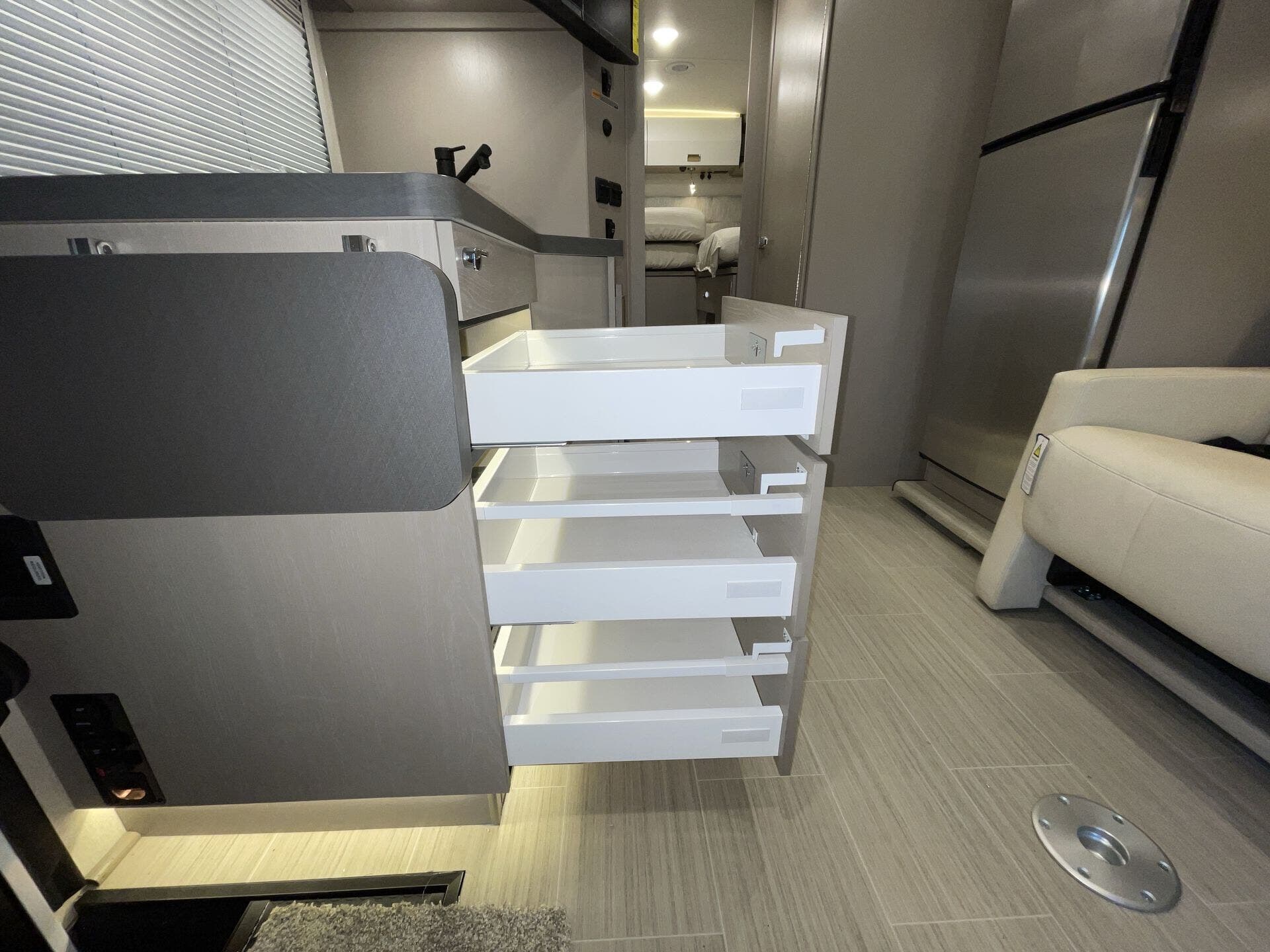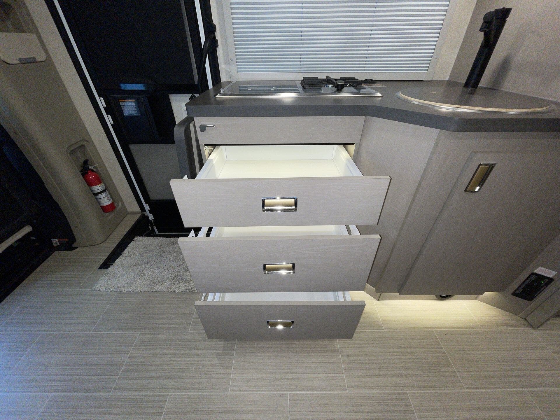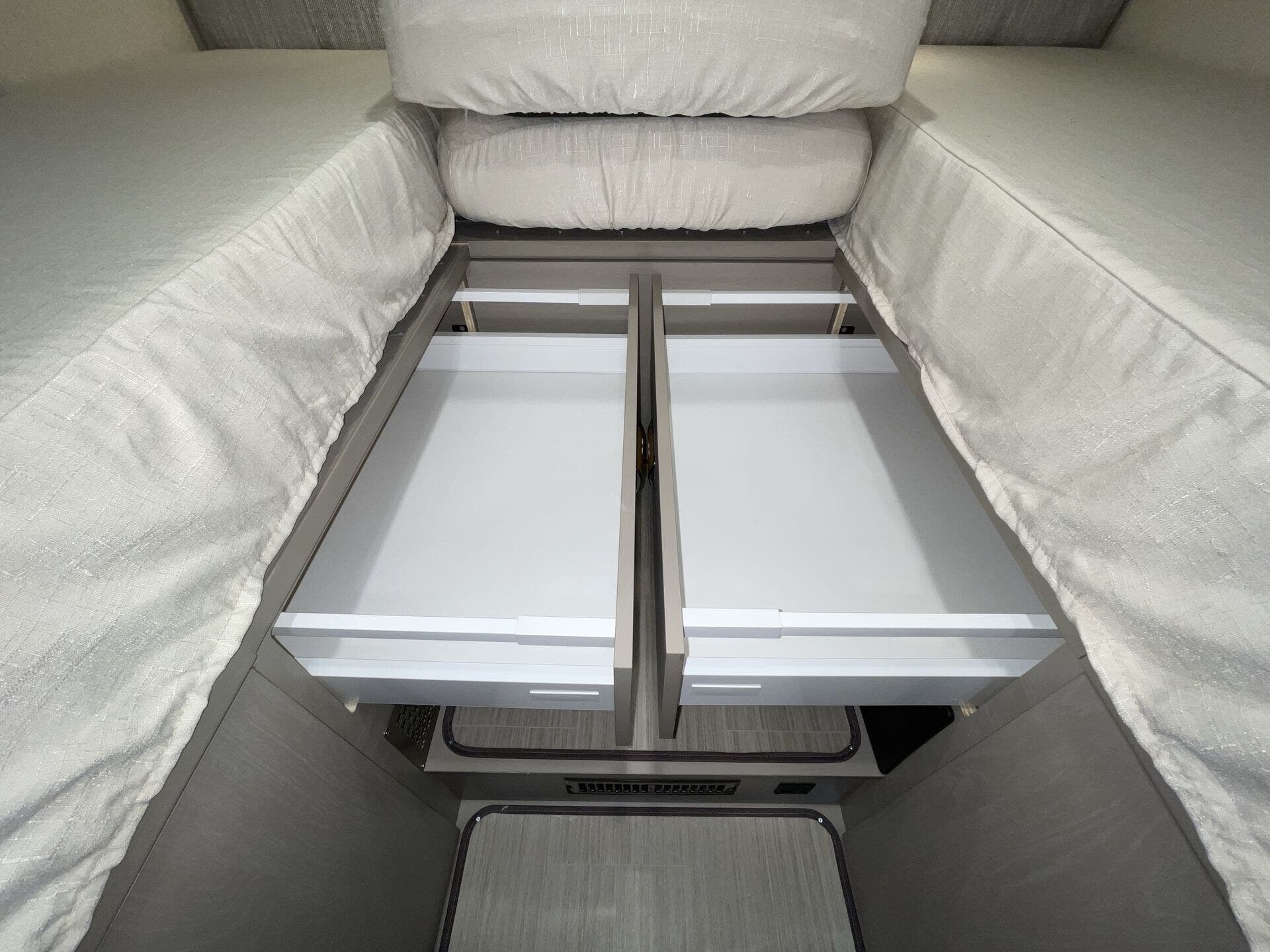 Built on a diesel Sprinter chassis, it drives well and has the power you want for longer trips. Plus, it’s tech-friendly with smart RV controls, solar/lithium-ready options, and modern driving aids.