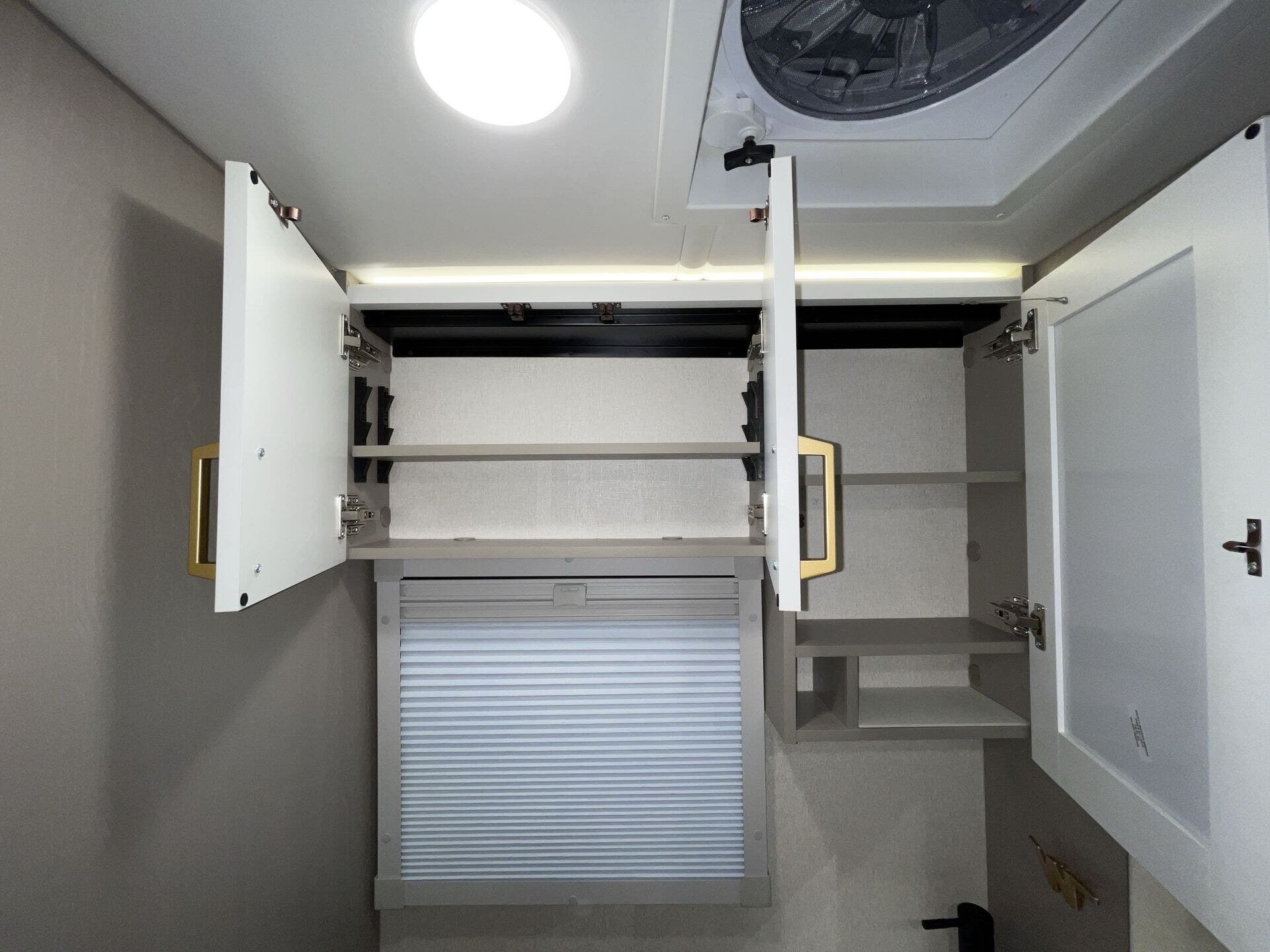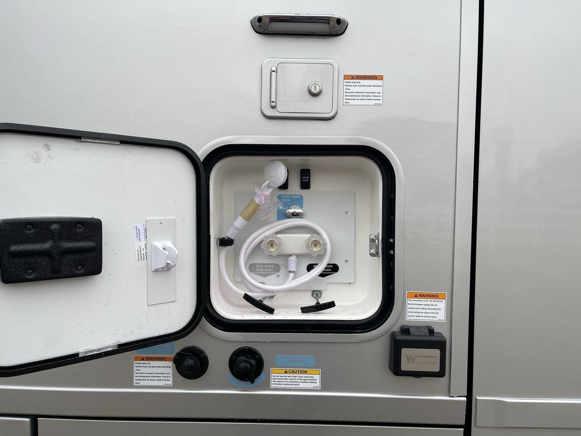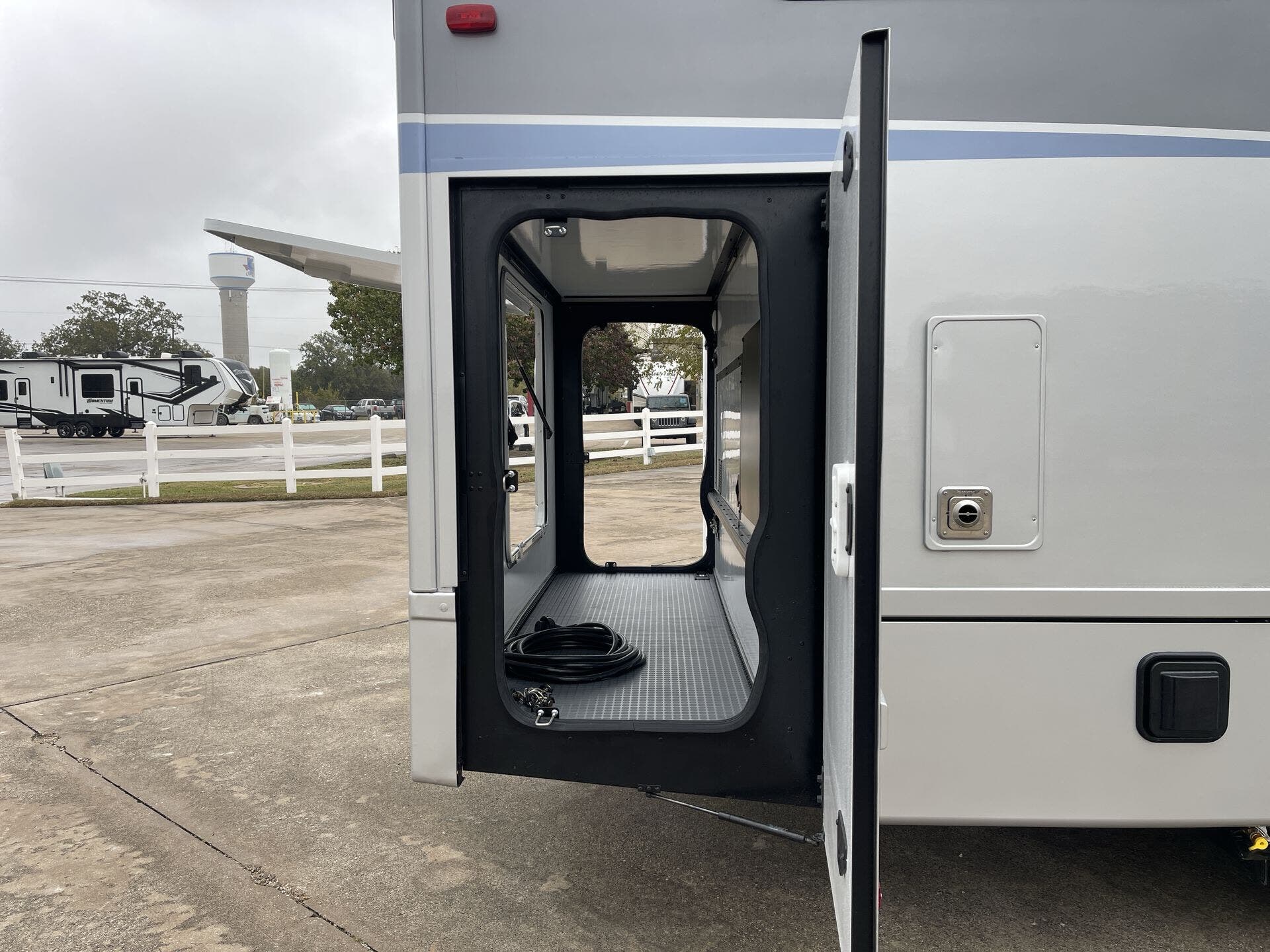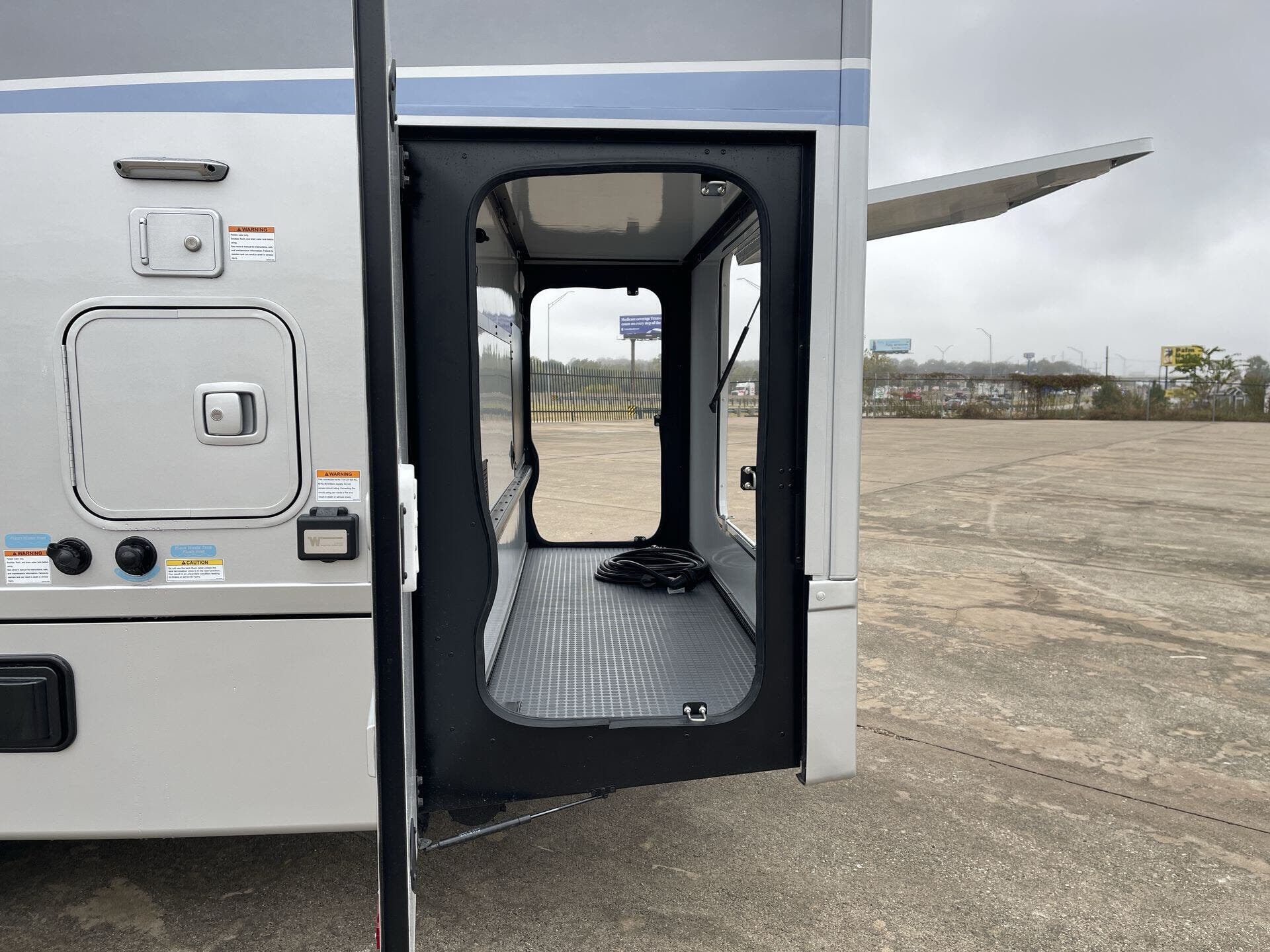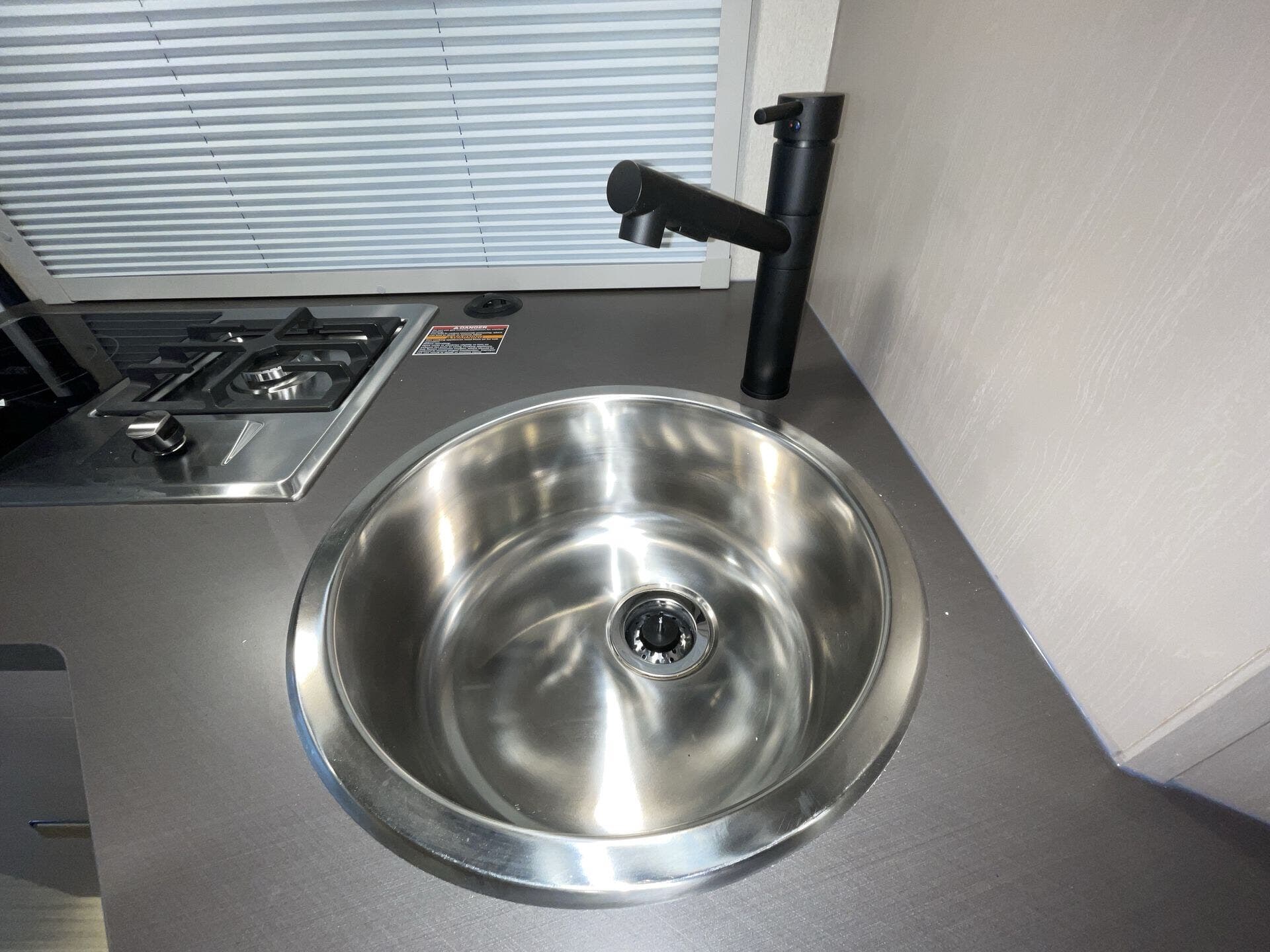 The gear garage and extra storage make it easy to bring bikes, luggage, or whatever else you need without cluttering the main living space. The kitchen is practical, tank sizes are solid, and there’s plenty of storage for trips of any length.