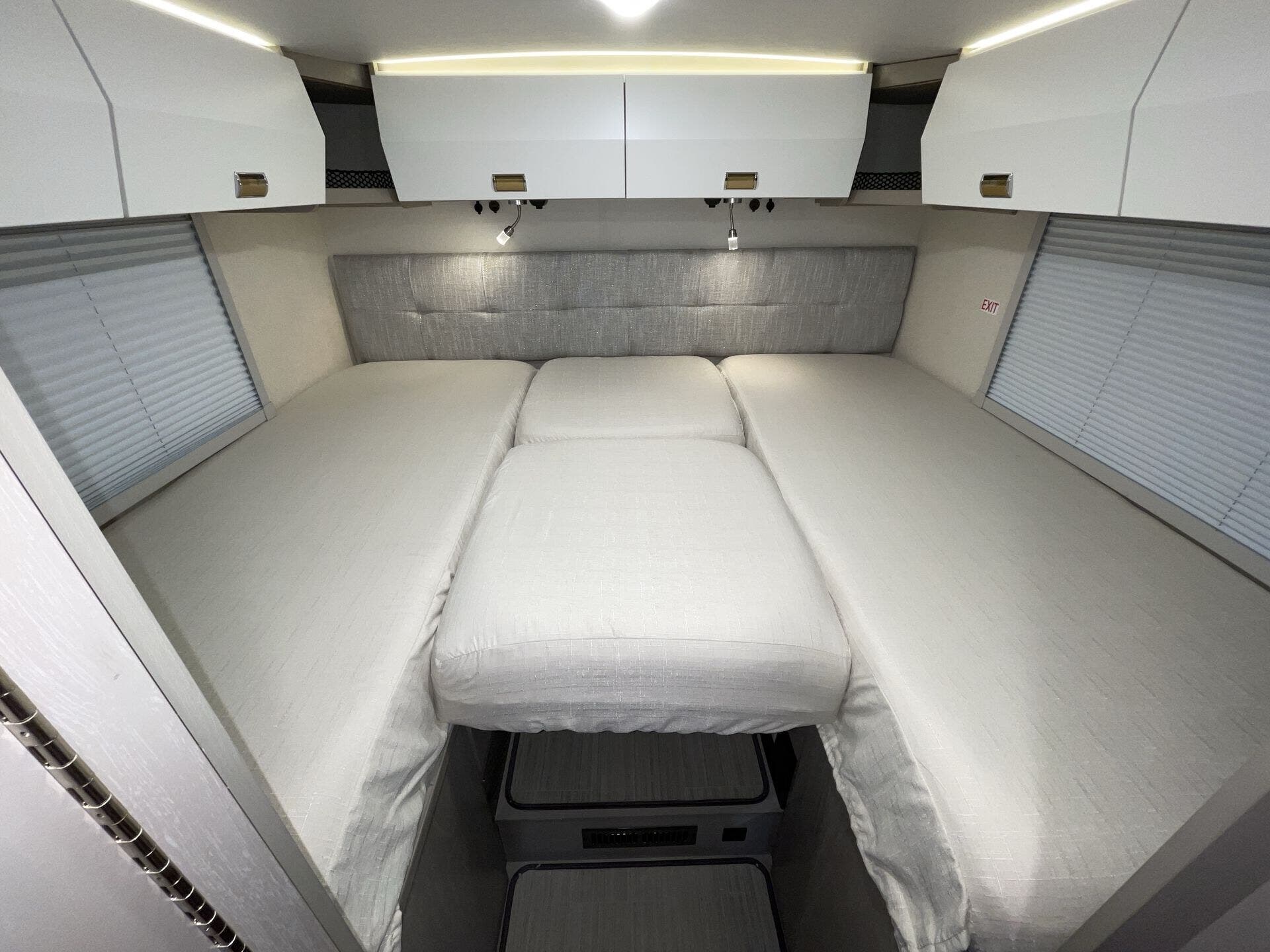 The 2026 Winnebago View 24R is perfect if you want a motorhome that’s easy to drive but still feels comfortable when you stop. The layout is smart — twin beds in the back convert to a big bed, and the living area is roomy enough to hang out without feeling cramped.
