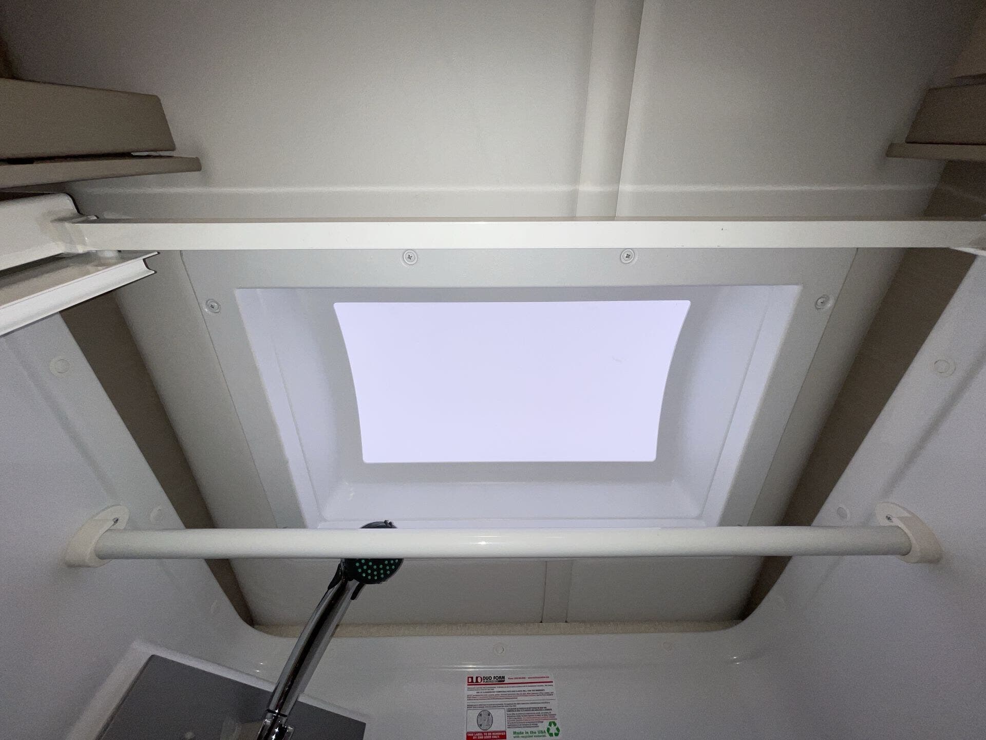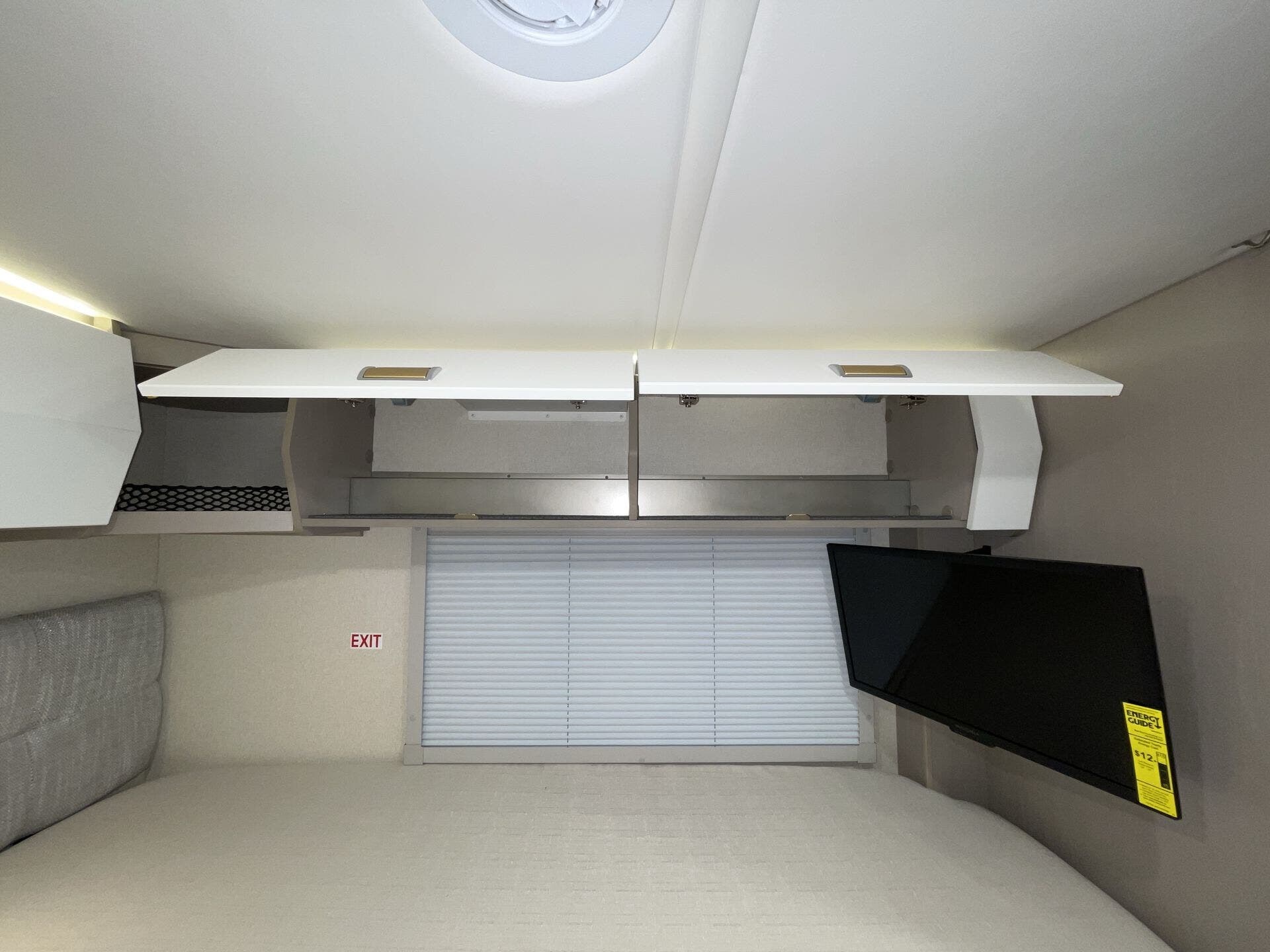 Kitchen Sink, Medicine Cabinet, Overhead Cabinetry, Removable Table, Roof Vents, Shower, Solid Surface Countertops, Theater Seating, Toilet, Wardrobe(s) -