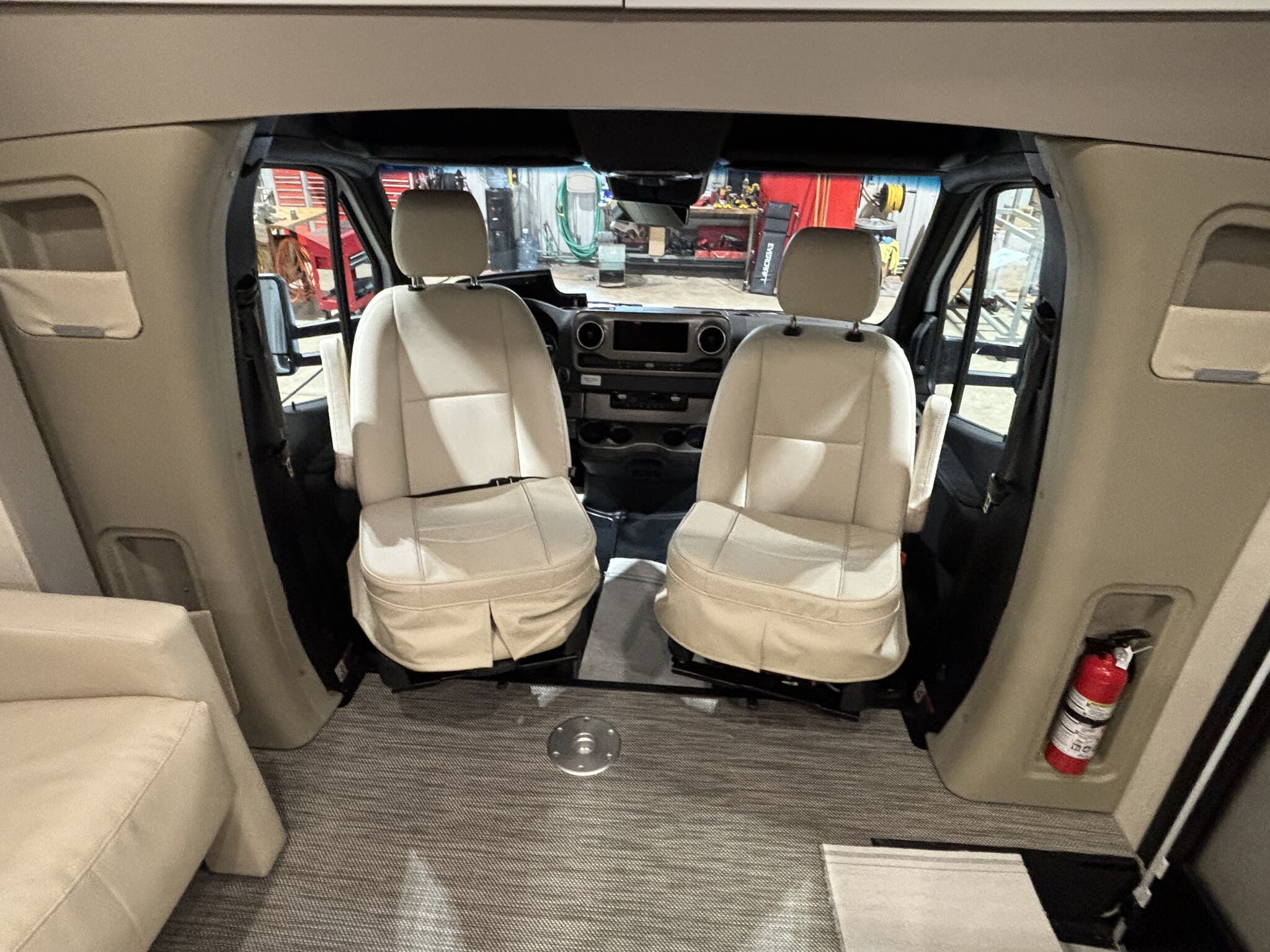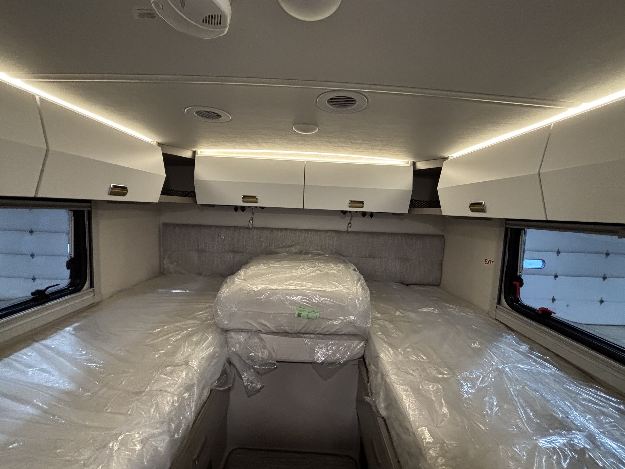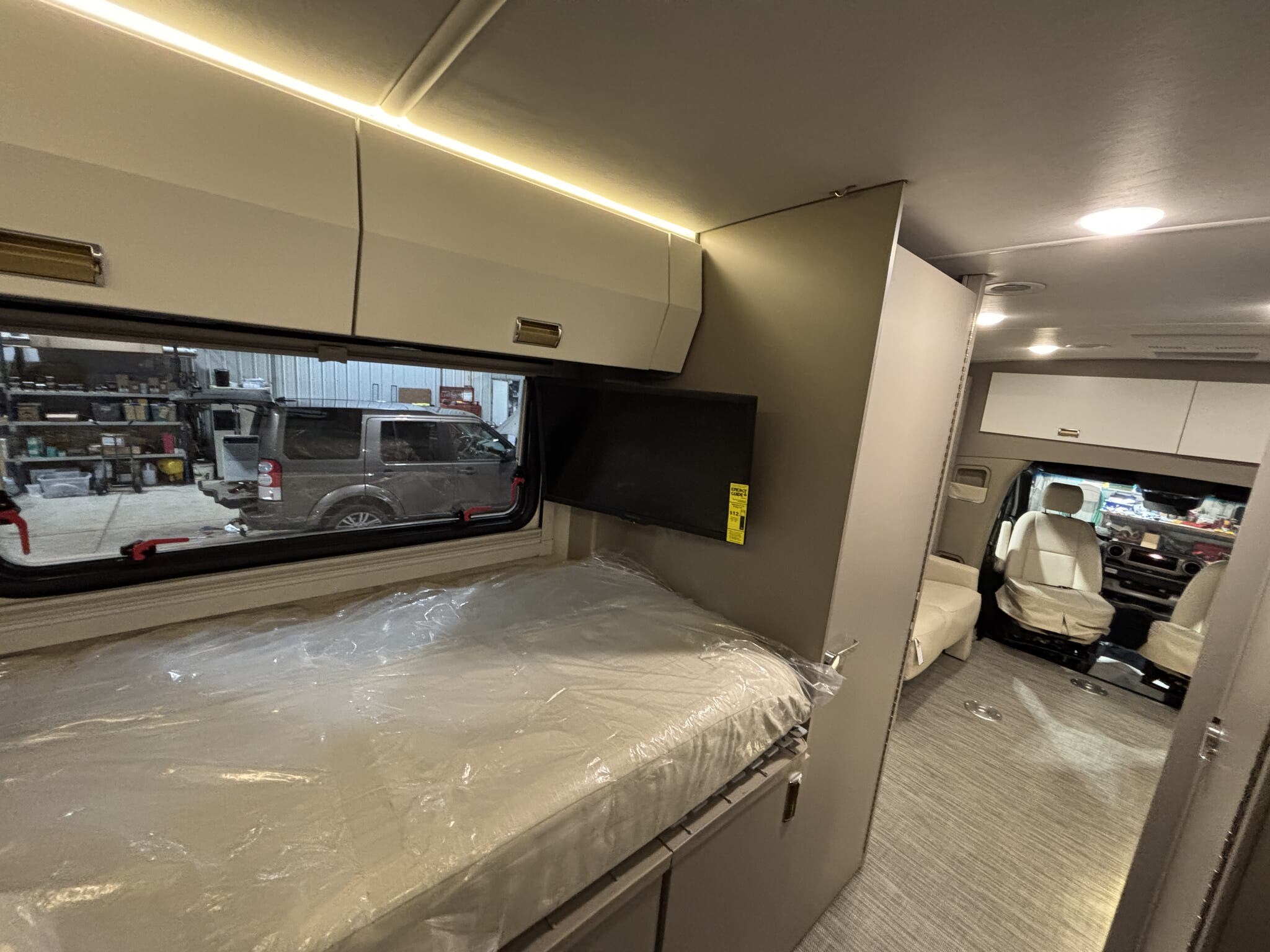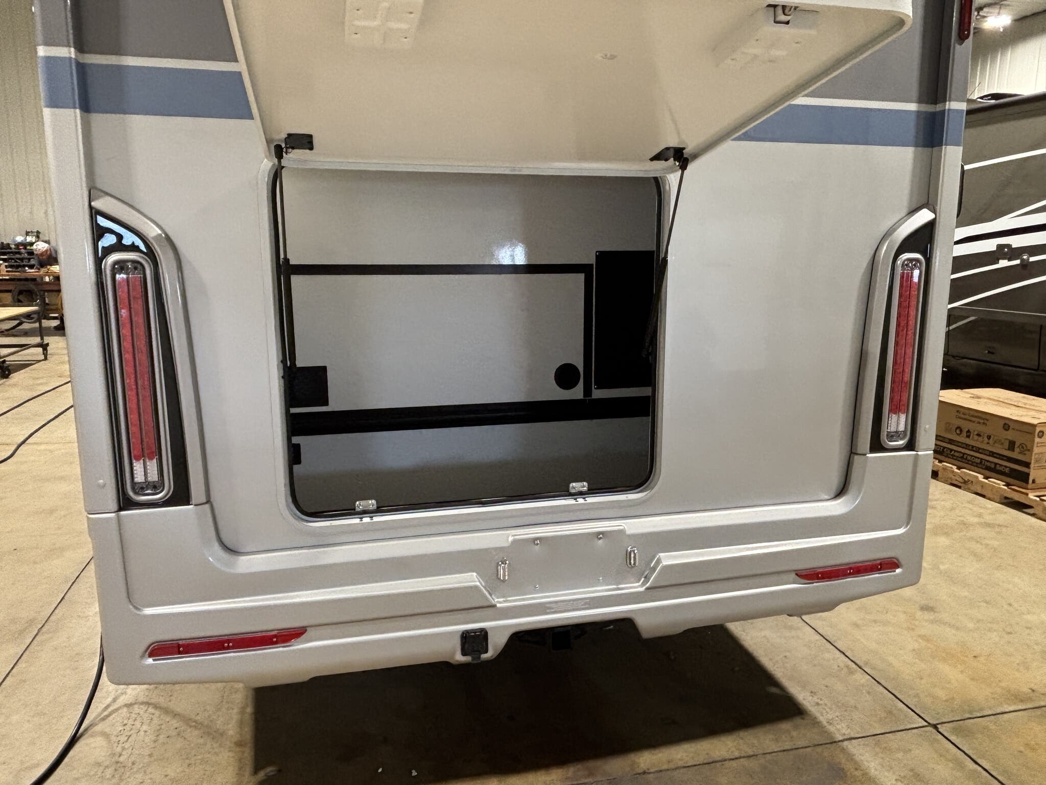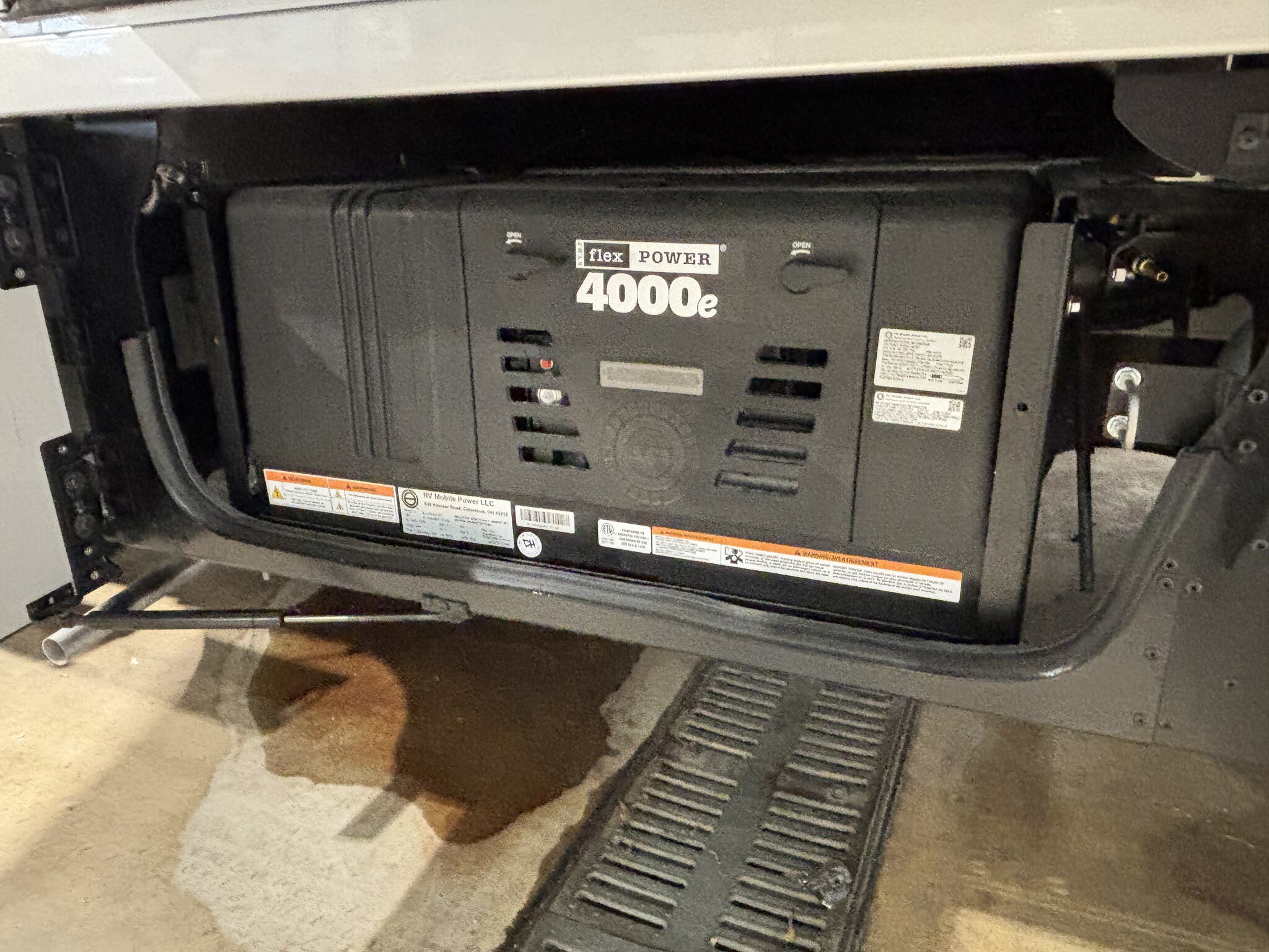 OPTIONAL EQUIPMENT ON THIS UNIT - High efficient A/C - Dual pane windows - low profile w/o frt cab over bed - 3.8 LP generator - Primera frt seats - Dual power recliiners - misty lake full paint - along with standard features such as hyd leveling system - trailer hitch - power awning - aluminum wheels - power step - Connect system - solar panels - frt and rear tv - tv antenna - micro convection oven - rear monitor - blind spot monitoring - 2000 watt inverter and much more