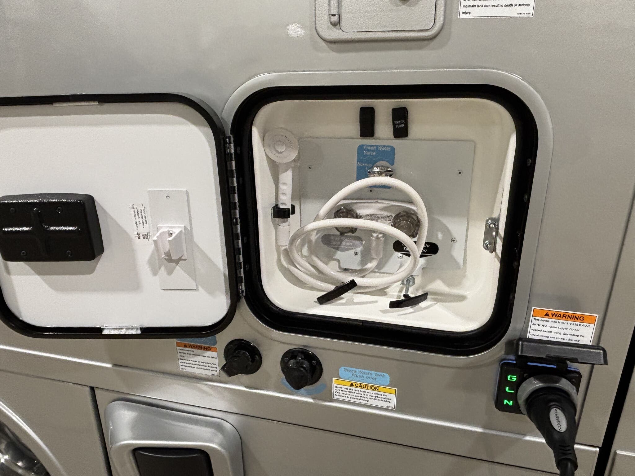 Awning, Backup Monitor, External Shower, Hitch, Ladder, Leveling Jacks, Luggage Rack, Power Entrance Step, Power Roof Vent, Skylight, Slideout, Slide-out Awning, Spare Tire Kit -
