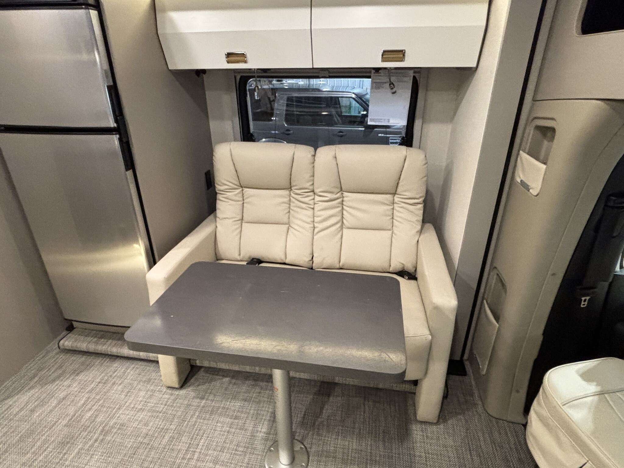 The Winnebago View is packed with luxurious amenities designed for comfort during road trips or extended camping stays. Inside, you'll find a cozy queen bed, bunk beds for added sleeping flexibility, and a lounge area with rocker recliners. The RV features a full kitchen including a microwave, oven, refrigerator, and stove top burner, enabling easy meal prep on the go. The bathroom boasts a shower and toilet, while practical features like a medicine cabinet and skylight enhance the overall experience. The interior is also equipped with modern electronics, including a DVD player, CD player, GPS navigation, and a TV for entertainment.