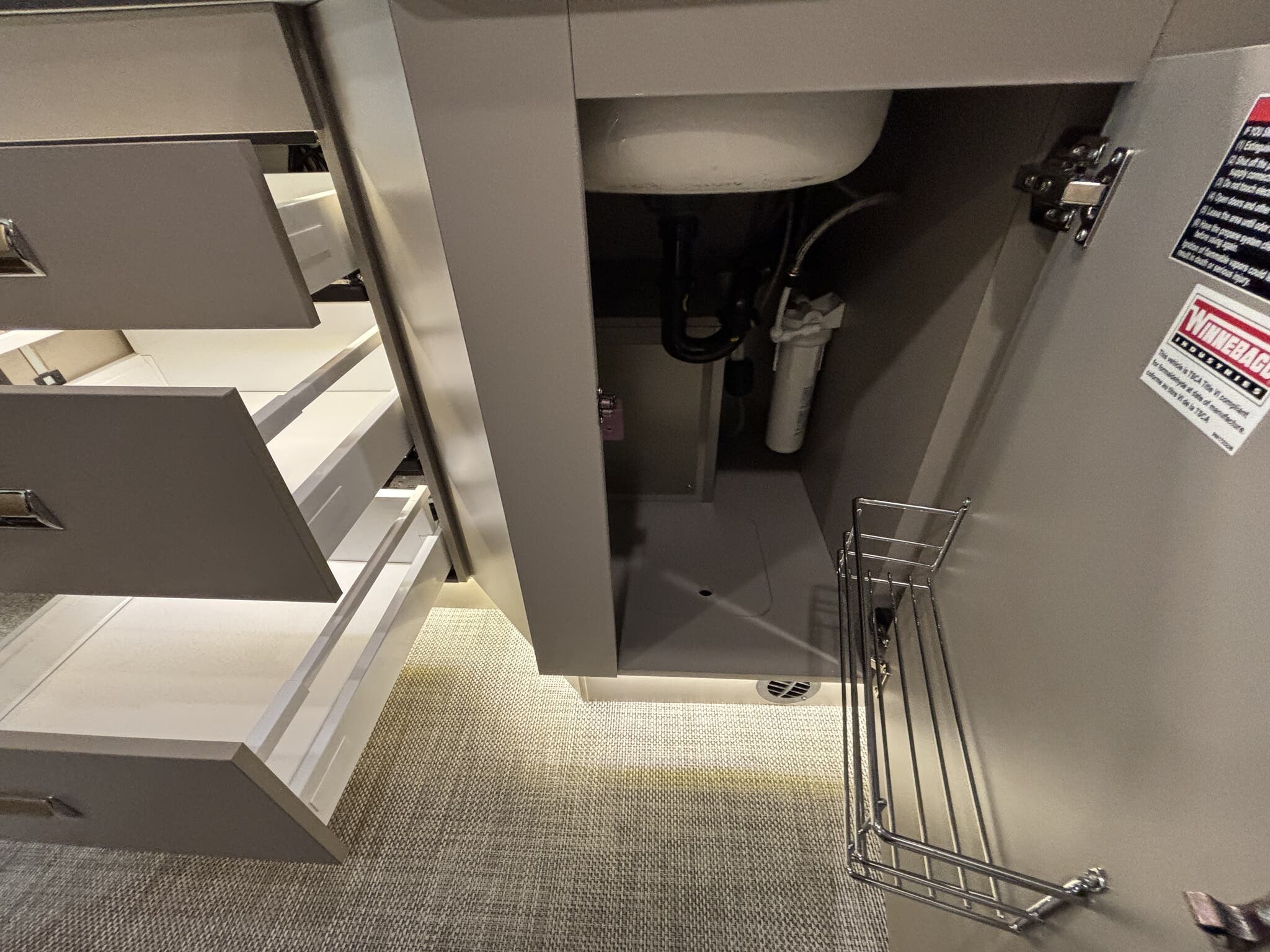 - Interior ColorMod Allure 2/Taupe/Grau with white cabinet doors