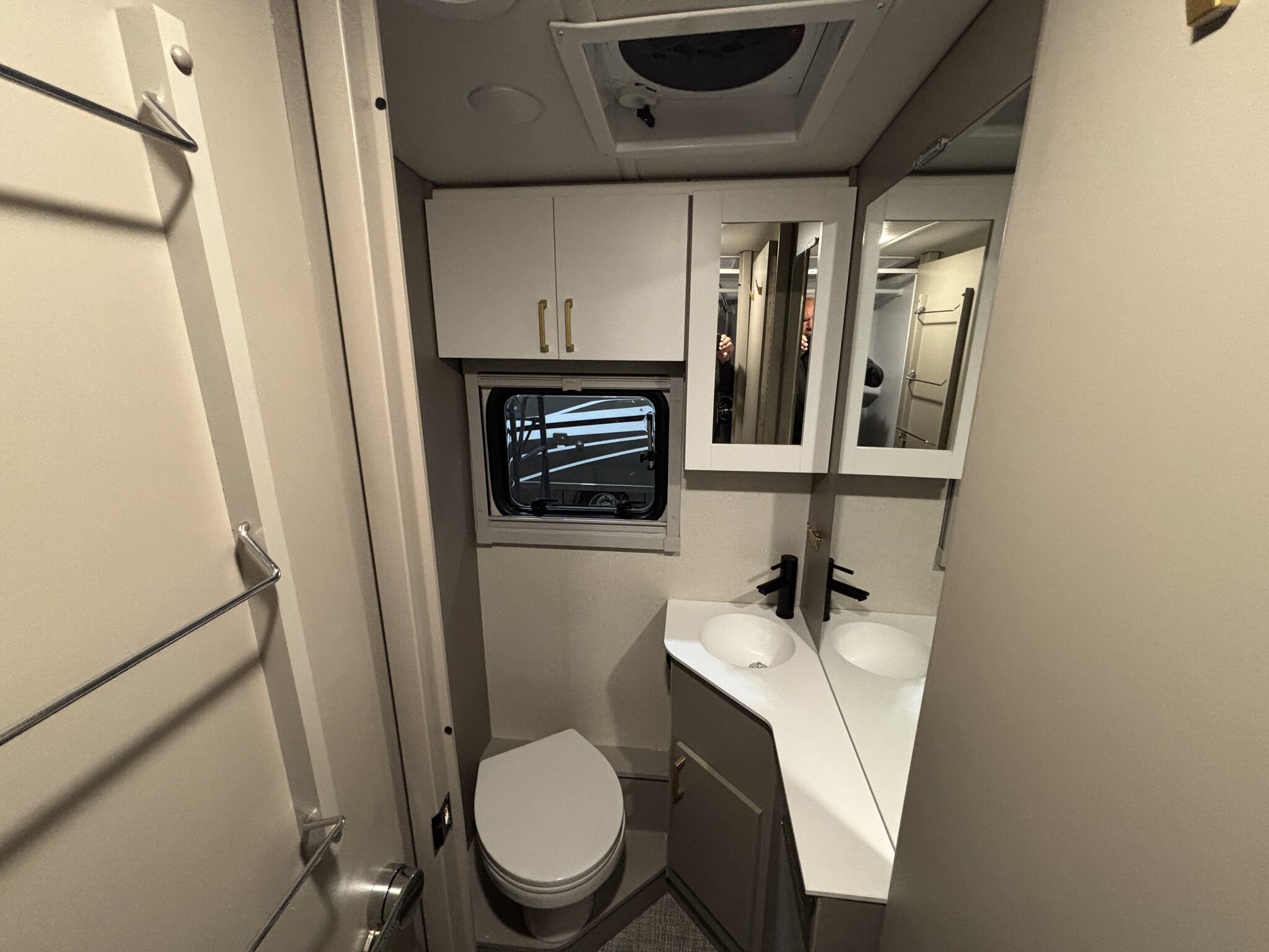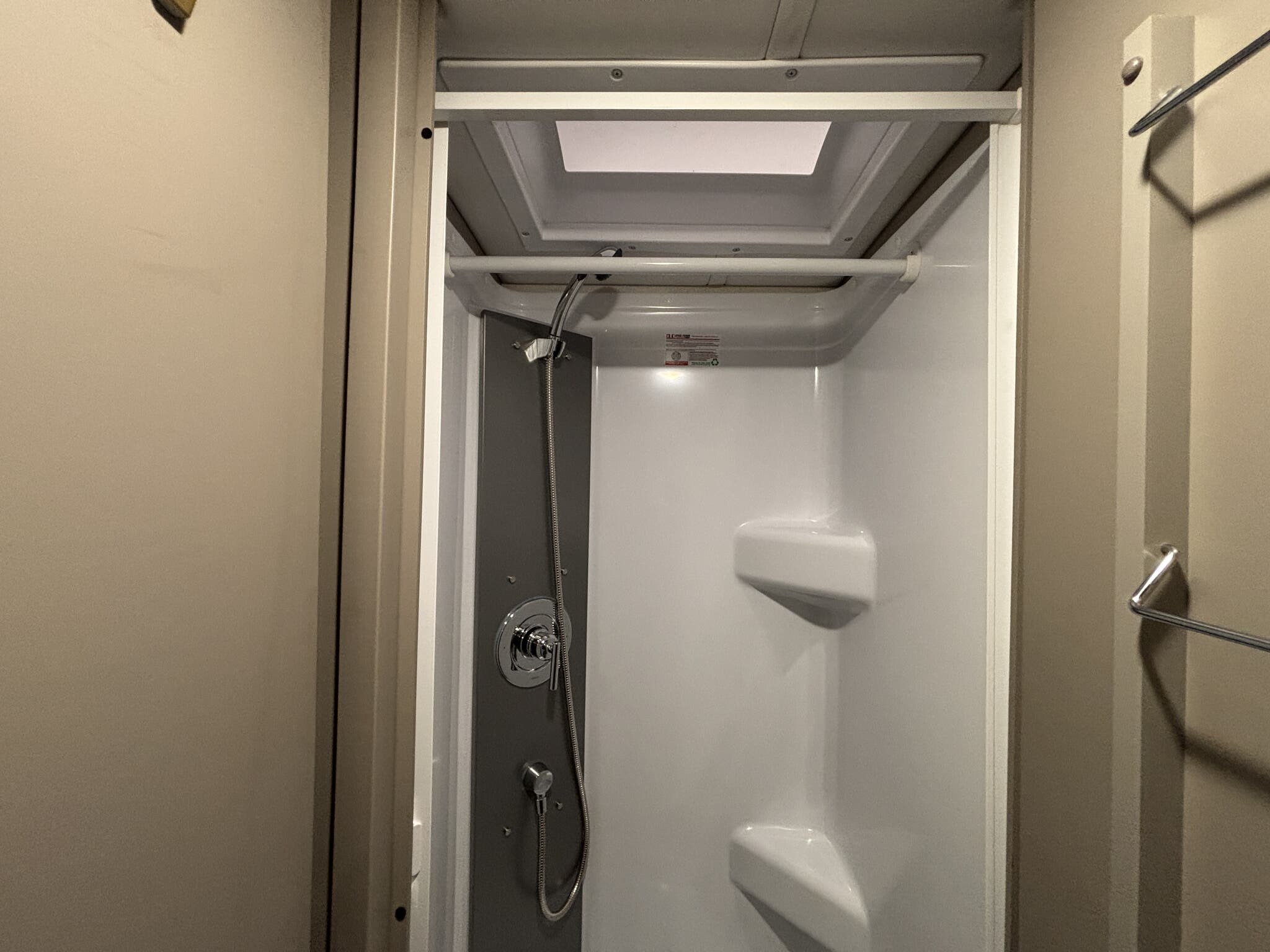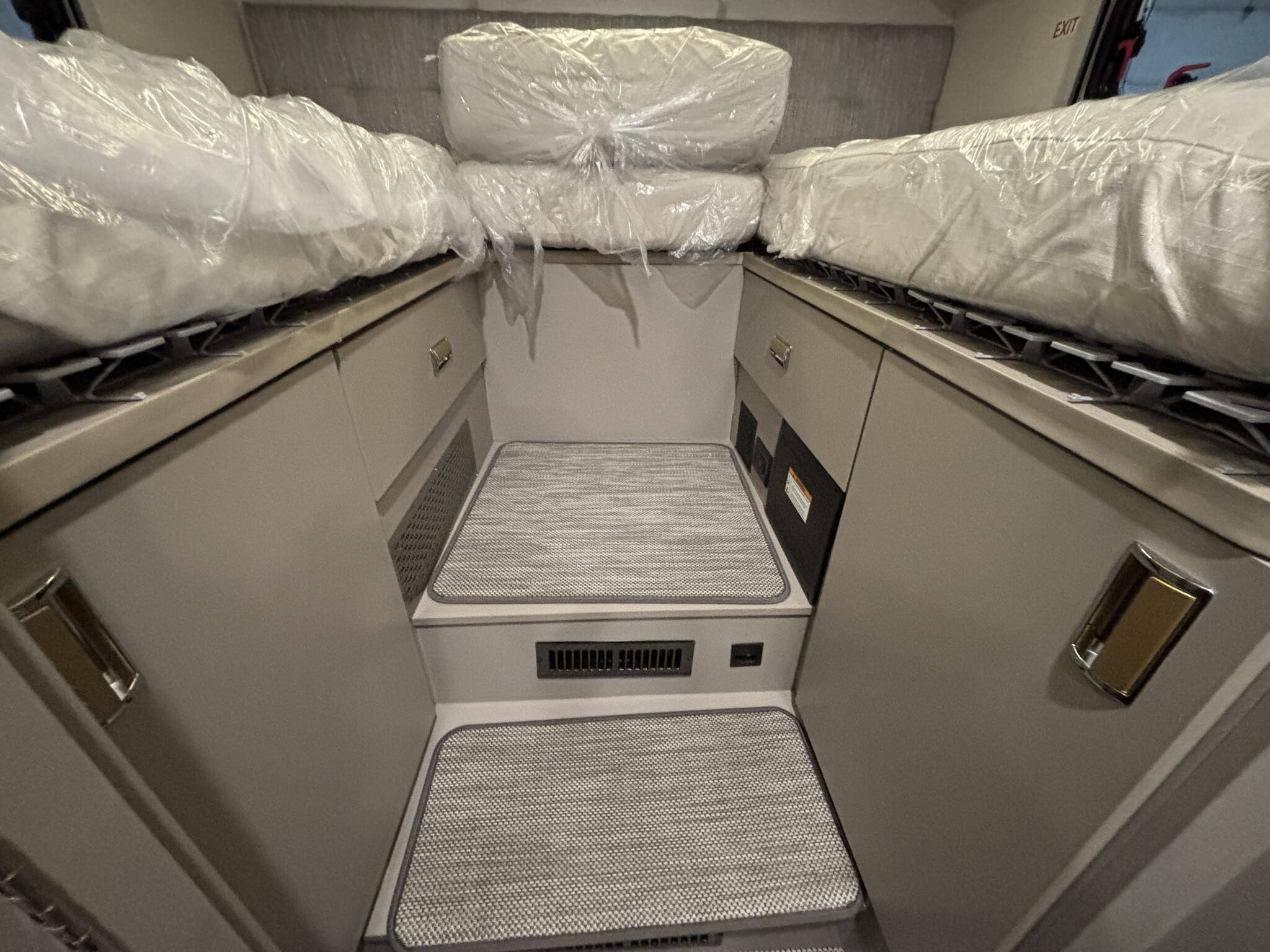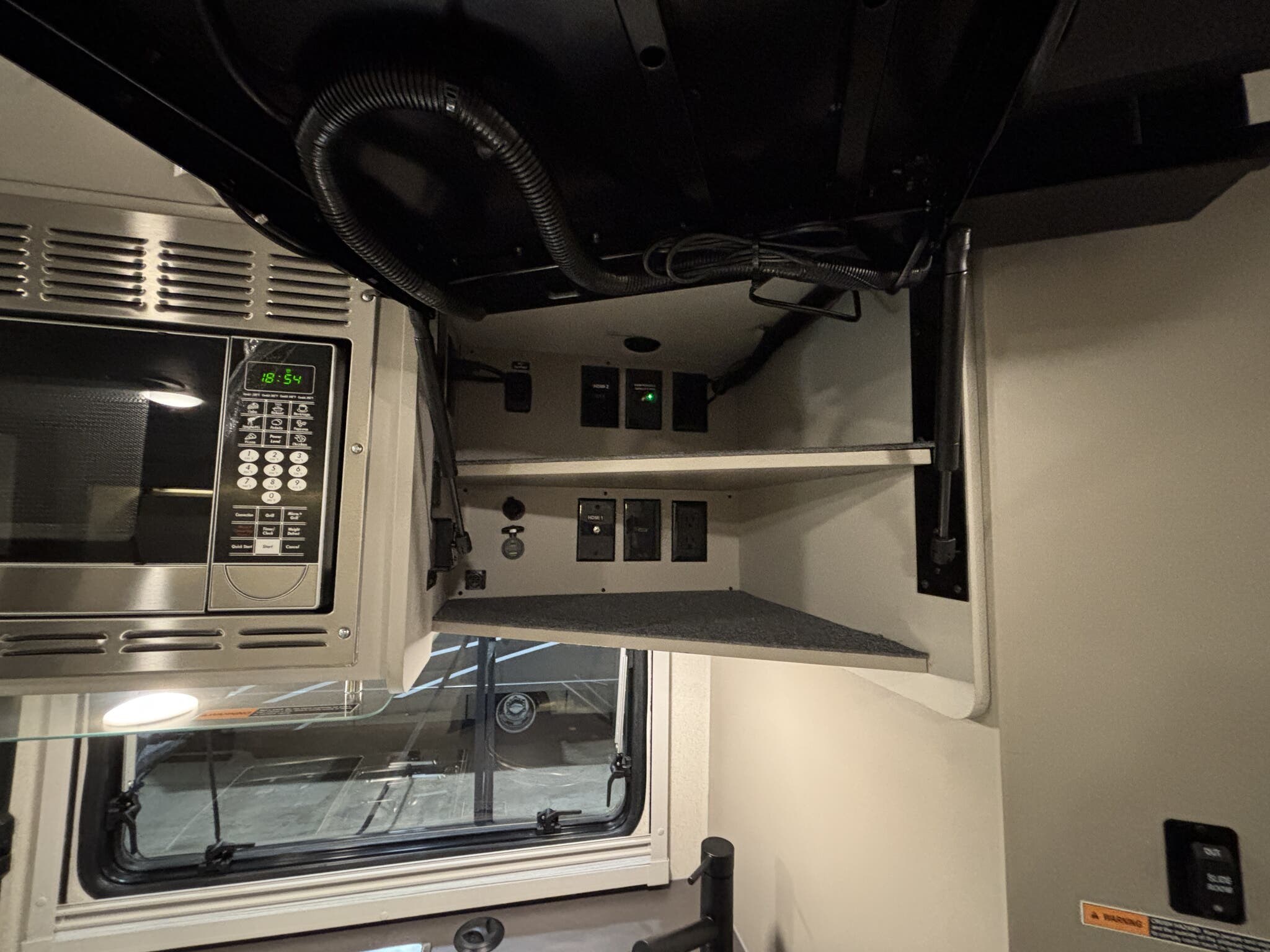 - Luggage rack, power entrance step, roof vent, and ladder for ease of access and storage