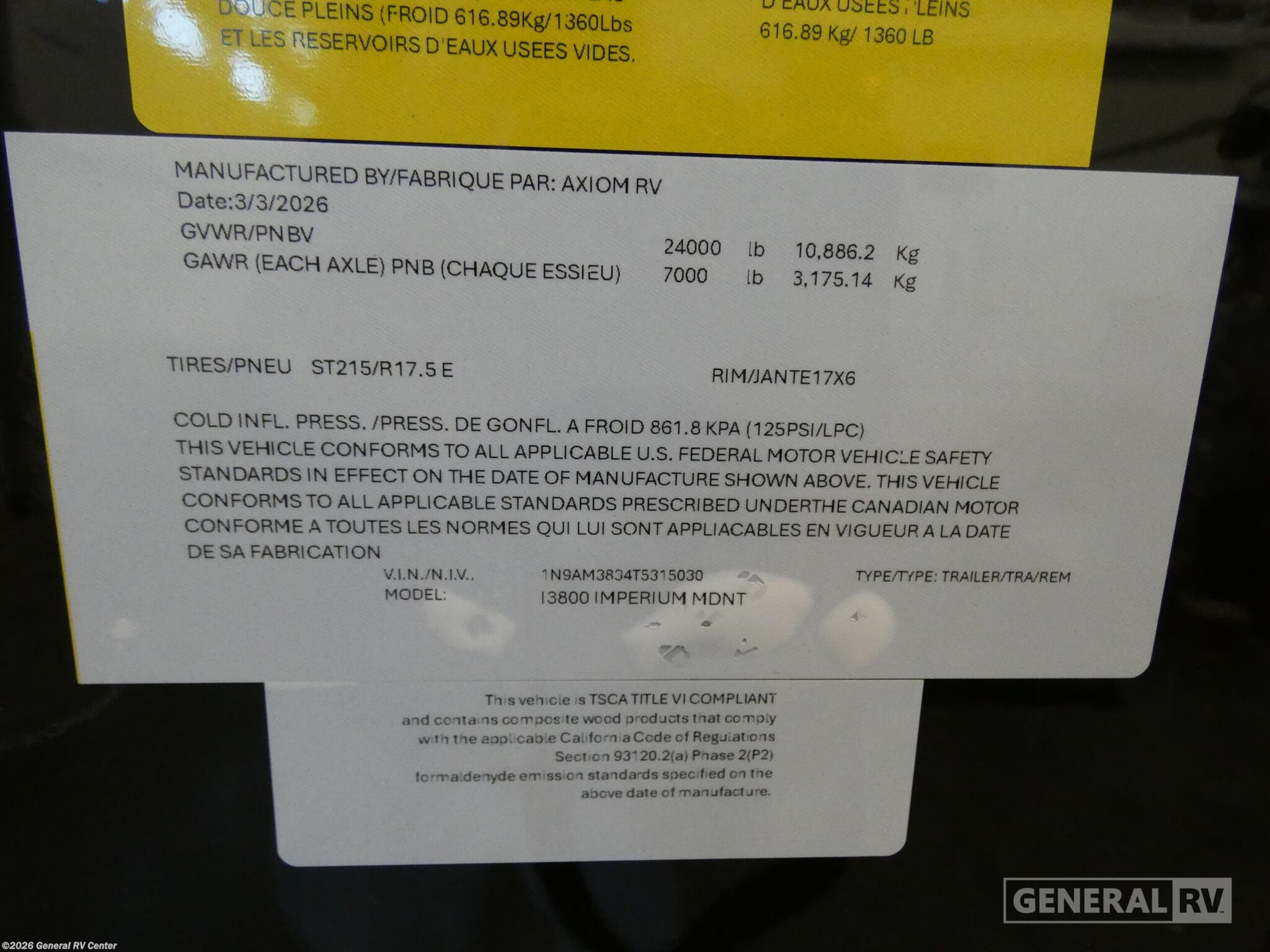 Request More Info on this 2027 Axiom Imperium I3800 Offered for sale by General RV Center