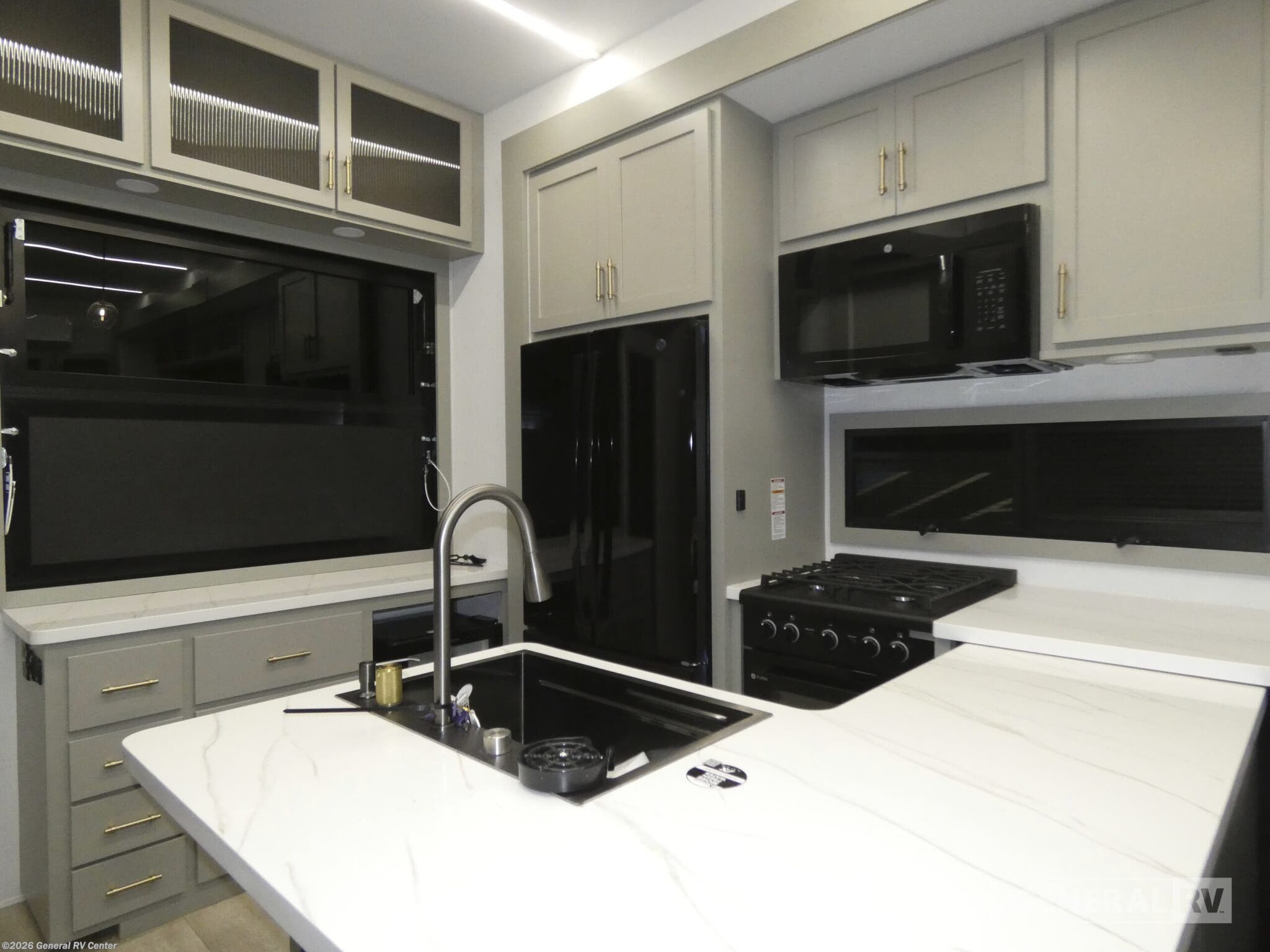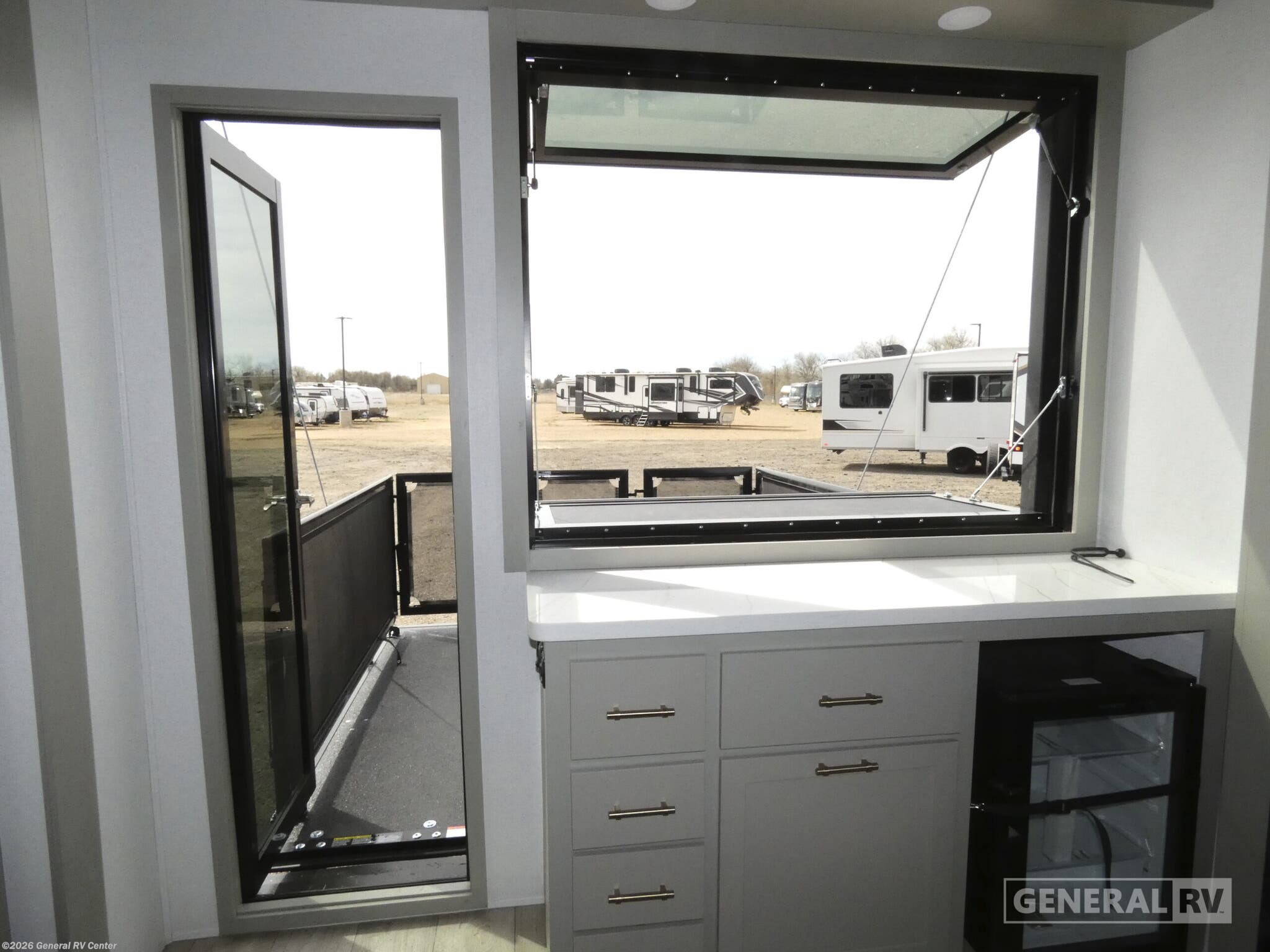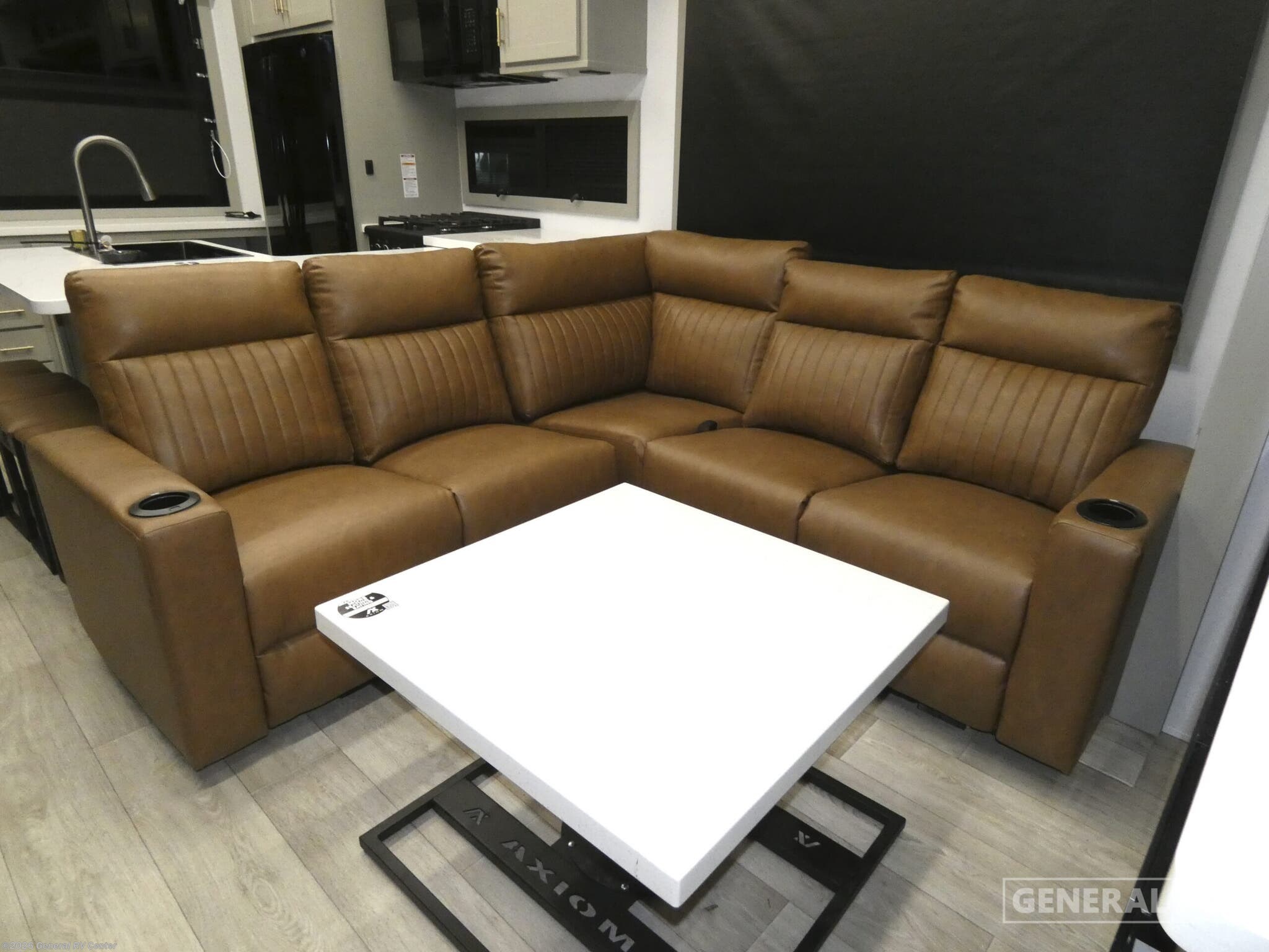 Axiom RV Imperium fifth wheel I3800 highlights: Rear and Side Patio Dinette Table with Chairs Bath and a Half 65" LED HD Smart TV This fifth wheel with two patios is sure to be a hit! There is a rear patio that leads to the kitchen, where you'll also find a large countertop with stools, a spacious pantry, and all the appliances to make meals. The side patio leads right into the master bedroom, complete with a king bed tilt within a large slide out and a huge front bathroom. Here, you'll find dual bath sinks, a large closet and linen closet, a shower and private toilet. The middle living room will be a favorite place to hang out with its sofa, L-shaped sofa, plus 65" TV for movie nights! With any Imperium fifth wheel by Axiom RV, you will find comfort at every turn! The Curt touring coil suspension system with a Curt coil pin box provides smooth towing from home to campground, and the Lippert 6-point hydraulic leveling system will make set up a breeze. There are also Lippert solid step triple entry steps, a Pathfinder lighting system integrated within the turn signals, an extended latch entry door lock system, and a 200-watt solar panel for off-grid capabilities. These features are found within the Lux Package and Essential Package, while the AX Comfort Package includes hardwood cabinet doors and solid surface kitchen countertops. There is also a Fogotti on-demand water heater, a Freedom pass-through storage, and sleek tinted frameless windows.