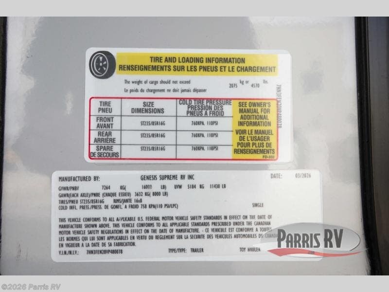 Request More Info on this 2027 Genesis Supreme Vortex 2814IKS Offered for sale by Parris RV