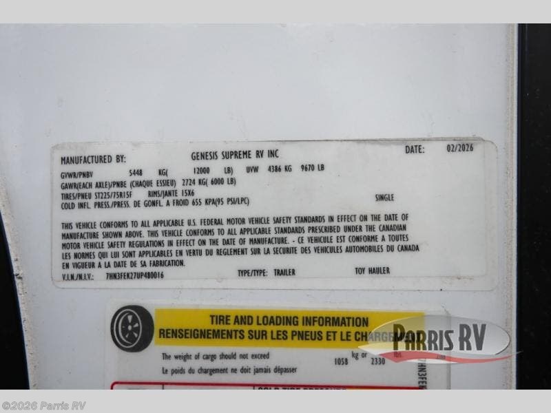 Request More Info on this 2027 Genesis Supreme Vortex V295LTE Offered for sale by Parris RV