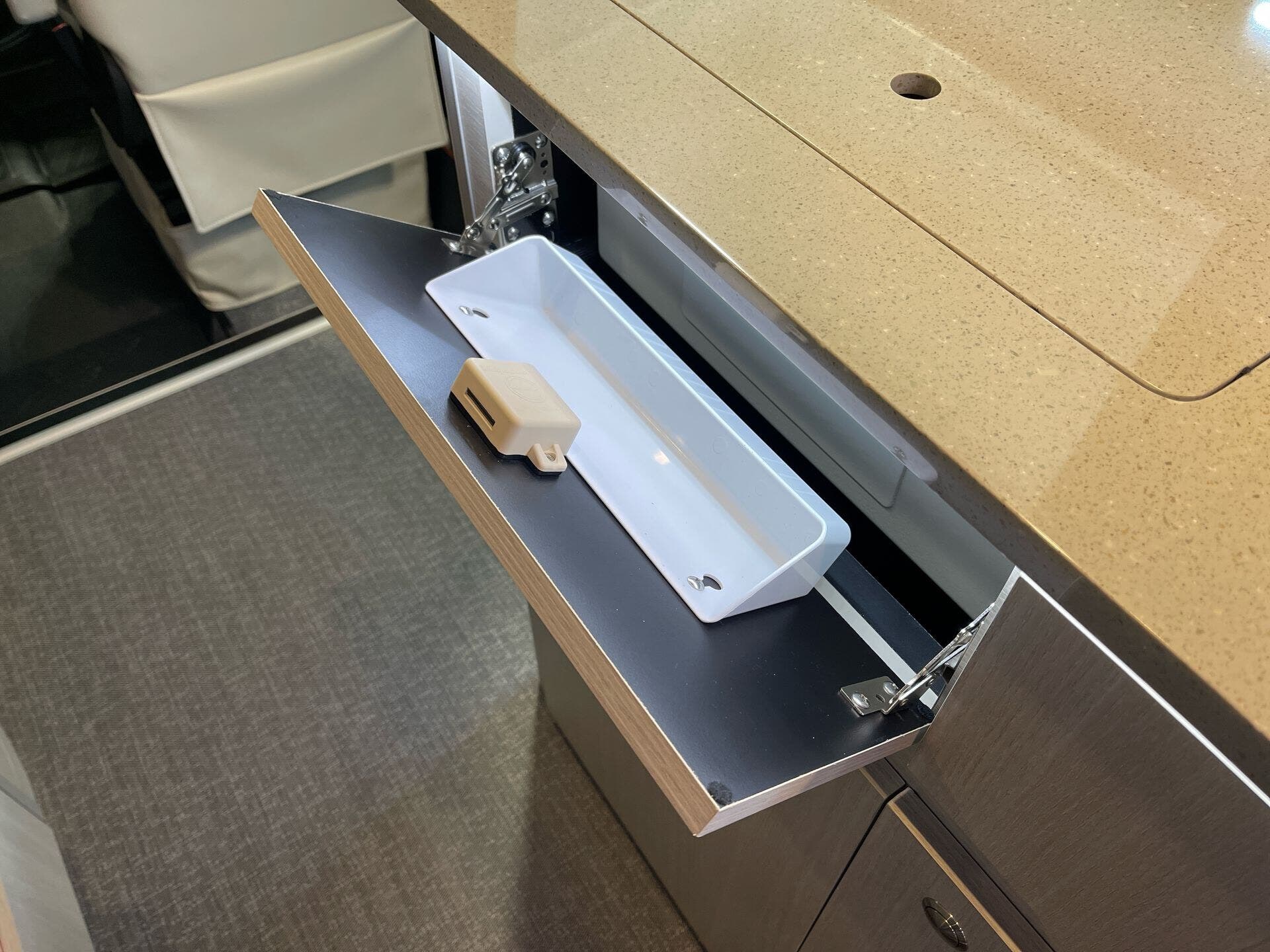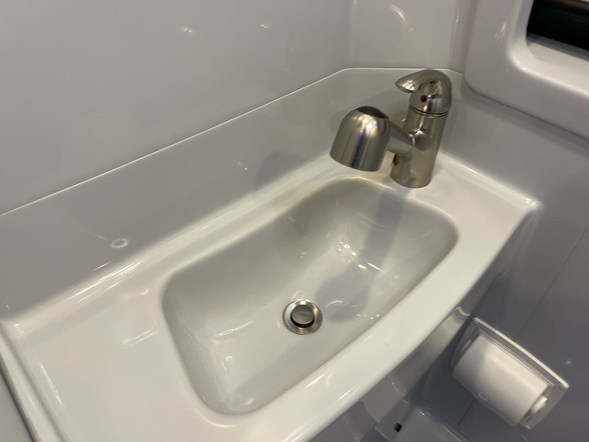 - Fire extinguisher and vanity for safety and convenience