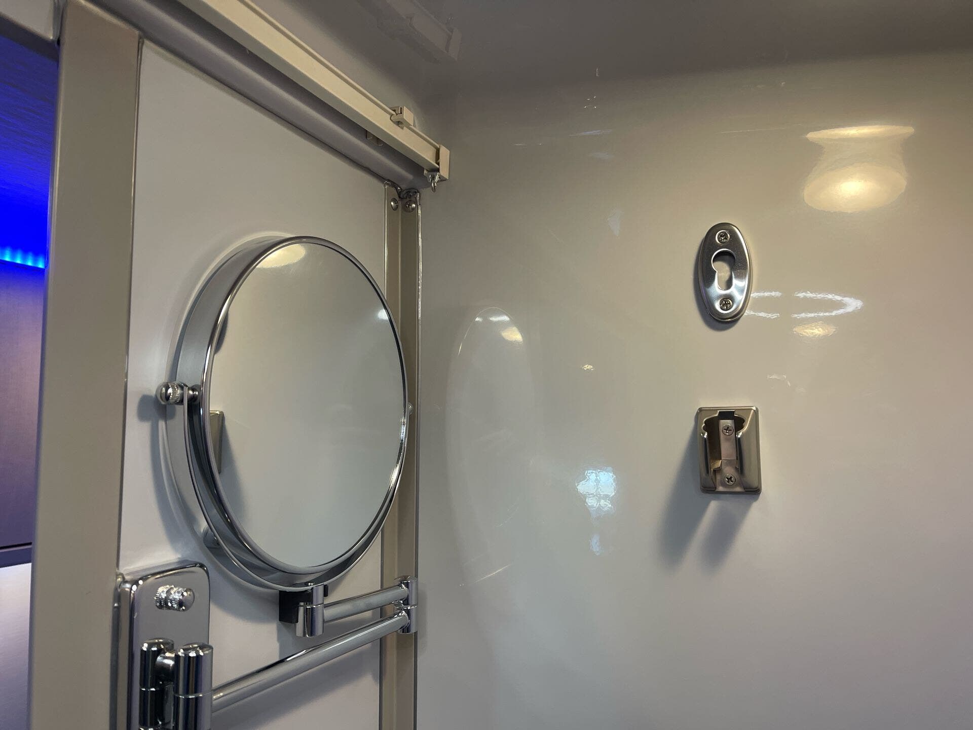 - TV for entertainment; shower and toilet for complete self-contained living