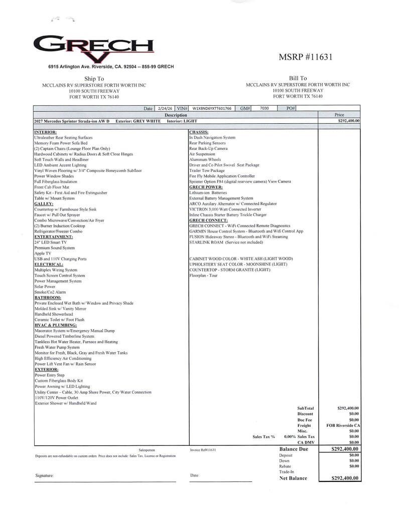 Request More Info on this 2027 Grech RV Strada AWD TOUR-ION Offered for sale by McClain's RV Superstore