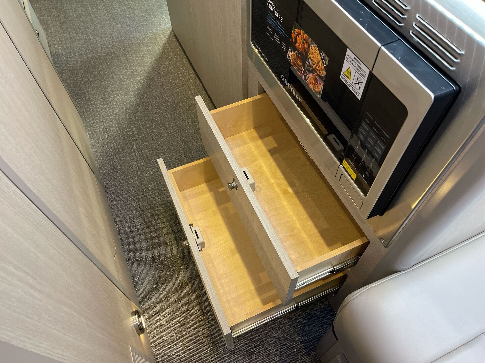 - Microwave, oven, and refrigerator for flexible meal prep on the road