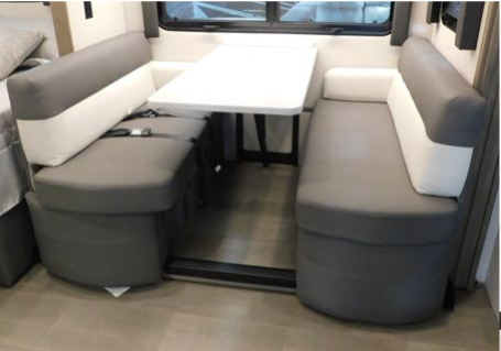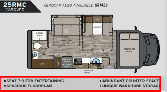 This is the perfect couples motorhome to explore the country! You will stay squeaky clean in the full rear bathroom with shower, and a large closet to store your clothes, towels and other toiletries. Depending on what time you enter this coach will determine whether you see the sofa or the 65" x 72" Murphy bed. The kitchen has a two burner cooktop, a convection microwave, and an 8 cu. ft. refrigerator to prepare home cooked meals, and a booth dinette to enjoy them at. You even have the choice of adding a cab table option between the front seats to place your drinks, books and such.