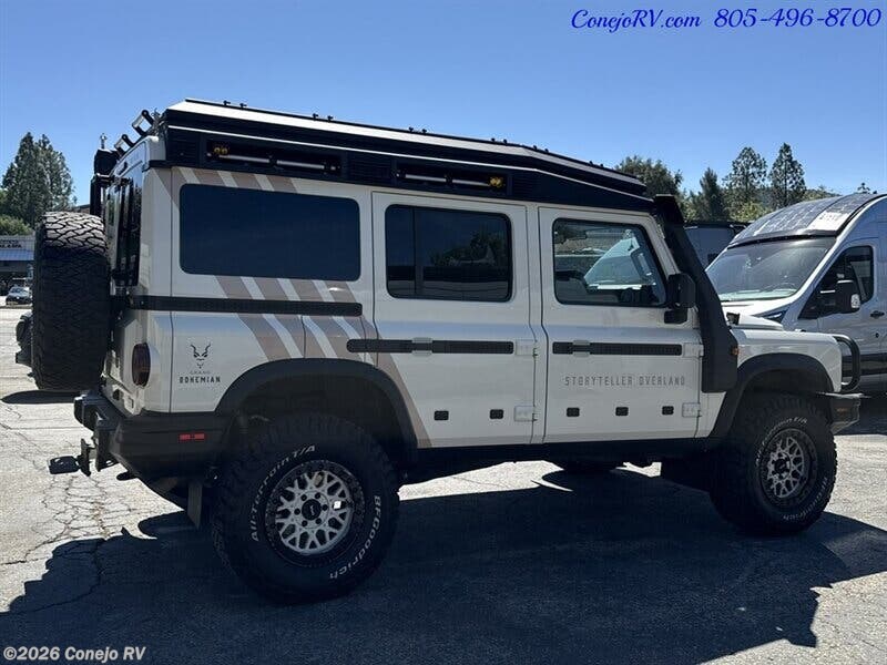 **COMING SOON AVALIABLE FOR PRE ORDER** Reserve Your 2027 Storyteller Overland Grand Bohemian INEOS GRENADIER® **Storyteller Overland See Thru Pricing 198,888** BMW 3.0L, Turbo Gasoline, 6 Cyl Engine, 282 hp, 244 ft lbs, 8-speed automatic ZF transmission, Permanent Four-Wheel-Drive, Carraro Solid Beam Axles, Tremec Two-Speed Transfer Case, Center Differential Lock with 2.5:1 Low Range, Brembo Brakes, 5.4 kWh Lithionics Battery, REDARC Control System, 2000W inverter, 110V 30A Shore Power, Solar Panels Rated For 400W, Custom Alu-Cab Roof Conversion Sleeps Two, Provides Standing Room When Stowed, Storage Pass Thru at Rear Passenger & Driver Doors, Stow One Carry On + One Back Pack + Compost Toilet OR Two Carry Ons, Multi Zone Dimmable Lighting, Soft White or Red, Durable SeaDek® Flooring, L-Shaped Bench with Rear Facing Lounge Pad, Sliding Sleep Surface, Fuel Fired Hydronic Heating System, Custom Leather Seating & Upholstery, 4 110V Outlets, (6) USB-C and A Ports, Left and Right Rear Door Fold Down Tables, Galley w/ Stainless Steel Sink and Folding Faucet, Guzzle H2O® Water Filtration and Purification, 10.5 gal Fresh Water Tank, 4 gal Grey Water Tank, Dual Zone 21qt Refrigerator/Freezer, Portable Induction Cooktop, Exterior Shower at Rear Door, Compost Toilet, Fuel Fired Air and Water Heating System, EVICTUS™ Prerunner Suspension, Front Winch, Twin Motor Air Compressor, Bull Bar Grill Guard, Running Boards, Exterior Lighting Package, Fog Lights, Ditch Lights, Driving Lights, R/L and Rear Chase Lights, Molle Panels, Fender Armor, Rear Ladder, City/Fresh Water Connection, Heavy Duty Shore Power Inlet, 270° Shadow Awning, Torque Enduro Wheels with Dual Valve Stems + Full Size Spare **Storyteller Overland See Thru Pricing $198,888**We have some fantastic financing and take trades also! It is our #1 goal that your experience with our company is an enjoyable one with our staff of industry professionals, Conejo Wholesale Auto & RV, Exclusive Ventura County Dealer For Winnebago Navion, Revel, Solis, Ekko, and Travato, All Storyteller Products, Outside Van Syncline and Approach, Tiffin GH1, All Roadtrek Products, We Also Carry Some Quality Pre-Owned Motorhomes which come with Our 45 Day/1000 Mile In-House Warranty at No Charge, Conejo RV, 661 E. Thousand Oaks Blvd, Thousand Oaks, CA 91360, 805-496-8700, Open 7 Days, 9am to 6pm, All Coaches Fully Inspected, Serviced and Detailed, Come Experience the No Pressure No Haggle Sales Approach at Conejo RV, We Also Buy Clean Late Model Coaches, 1 Year Free Camping Membership Included Ask For Details! (***plus tax & license fees***)