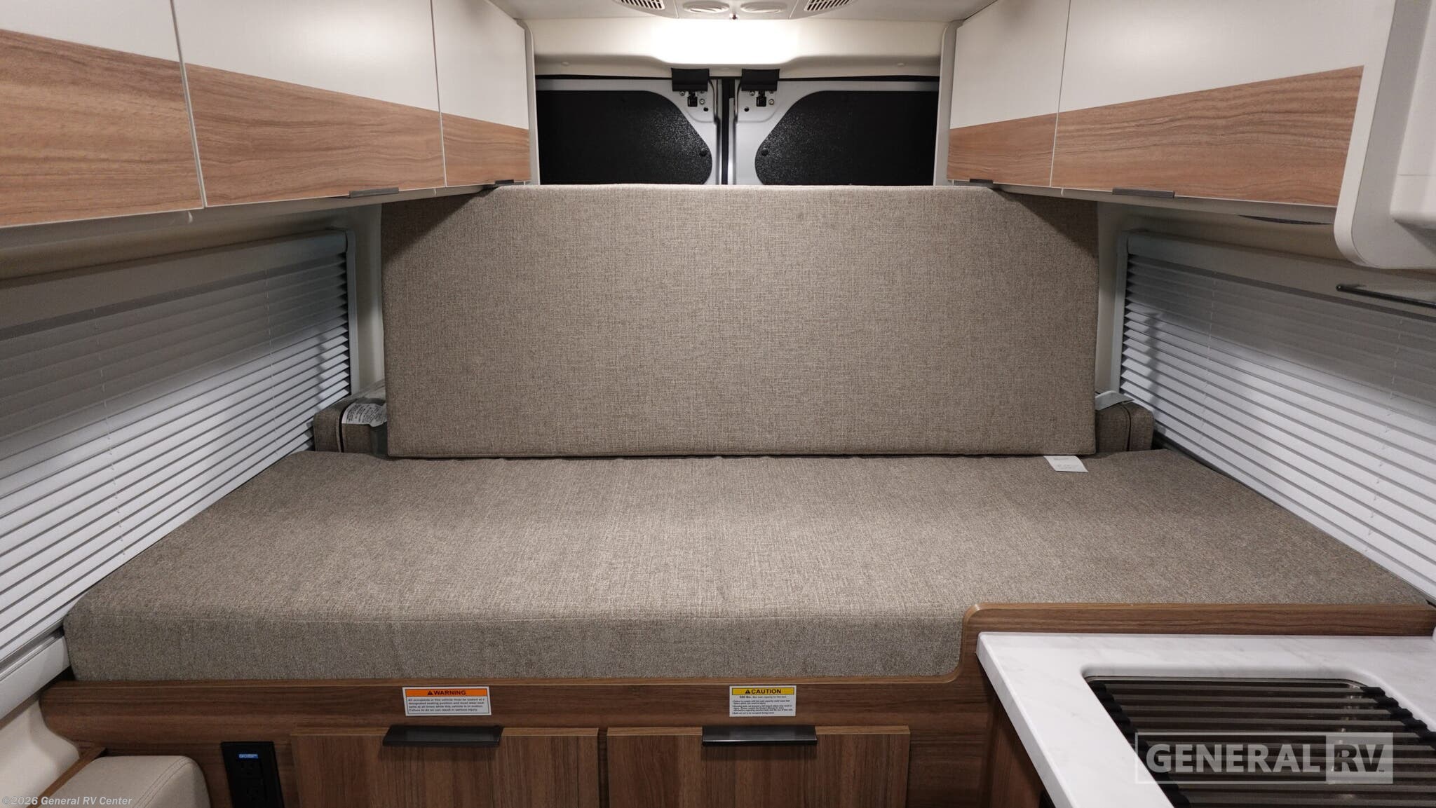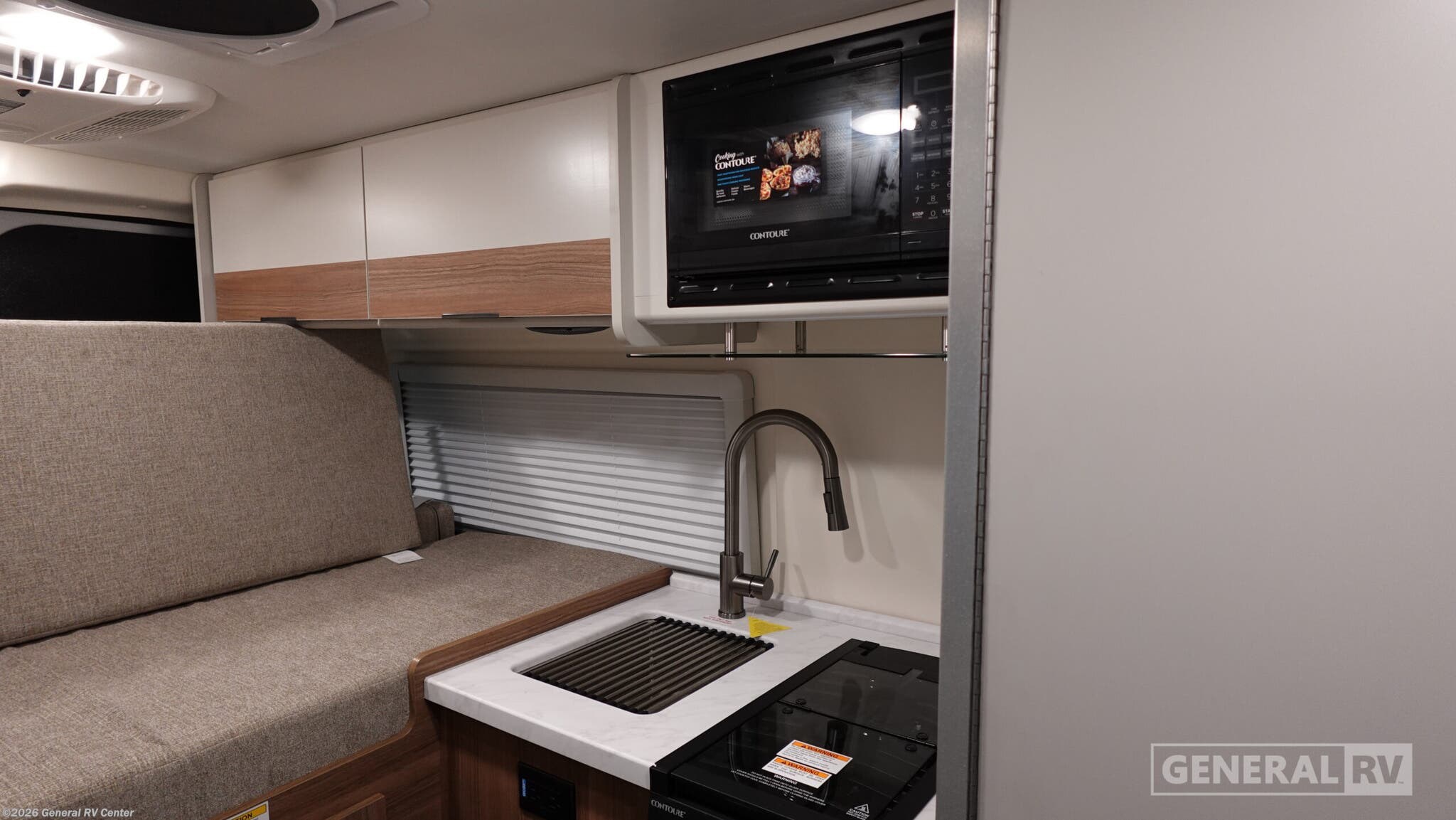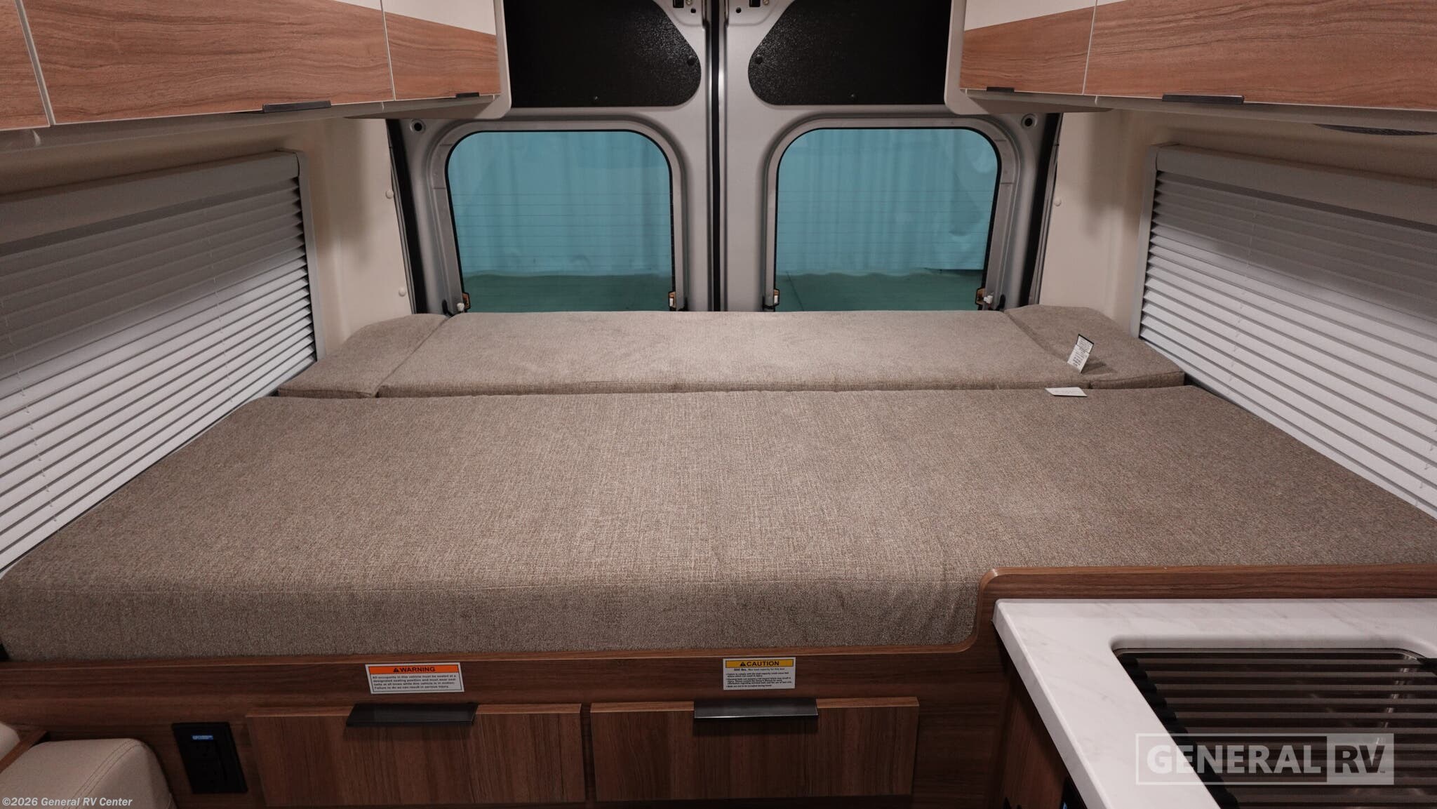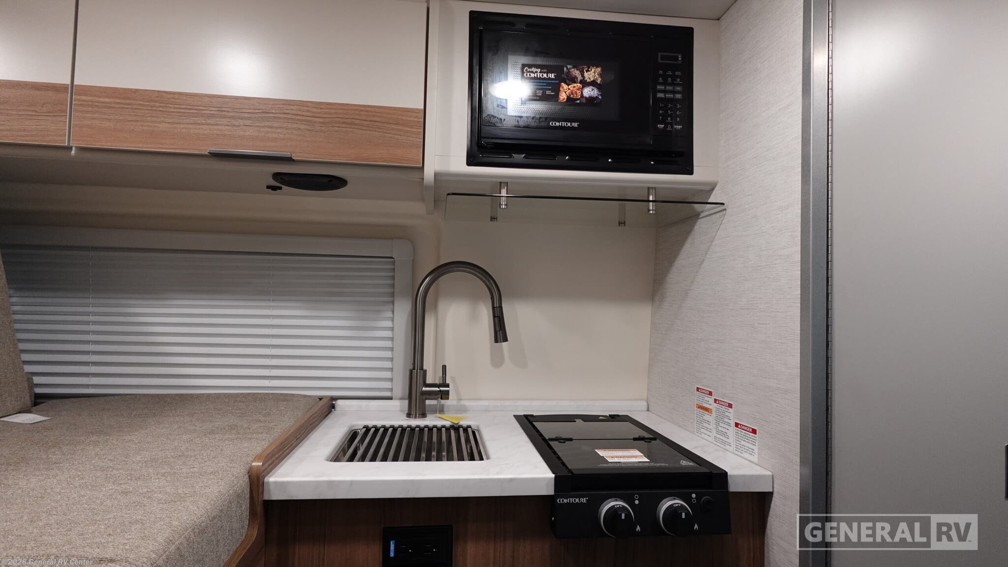Thor Motor Coach Rize 18Z Class B highlights: • Flip-Up Rear Bed • Swivel Captain’s Chairs • Wet Bath • Removable Table • LED Lighting The Rize 18Z Class B by Thor Motor Coach is designed for efficient travel and smart use of space, making it perfect for weekend getaways or extended road trips. In the rear, you’ll find a versatile flip-up bed that not only provides a comfortable sleeping space but also reveals a large storage area underneath for your gear. The compact kitchen includes a microwave, sink, and 12V electric refrigerator, giving you everything needed to prepare meals on the go, while the convenient wet bath ensures you always have essential facilities wherever you travel. Up front, swivel captain’s chairs and a removable table create a flexible lounge or dining area, maximizing usability in a compact footprint. Inside, this coach features residential vinyl flooring, soft-touch vinyl ceiling, and well-formed interior wall panels for a clean, modern look. Euro-style upper cabinet doors, soft-close drawer guides, and ample storage throughout add both style and function. Large opening side windows bring in natural light, complemented by cassette shades and blackout panels for privacy when needed. Safety and convenience are top of mind with smoke, LPG, and carbon monoxide detectors, along with a fire extinguisher included. LED lighting throughout enhances visibility while maintaining energy efficiency, making the Rize 18Z a smart and comfortable choice for life on the road.