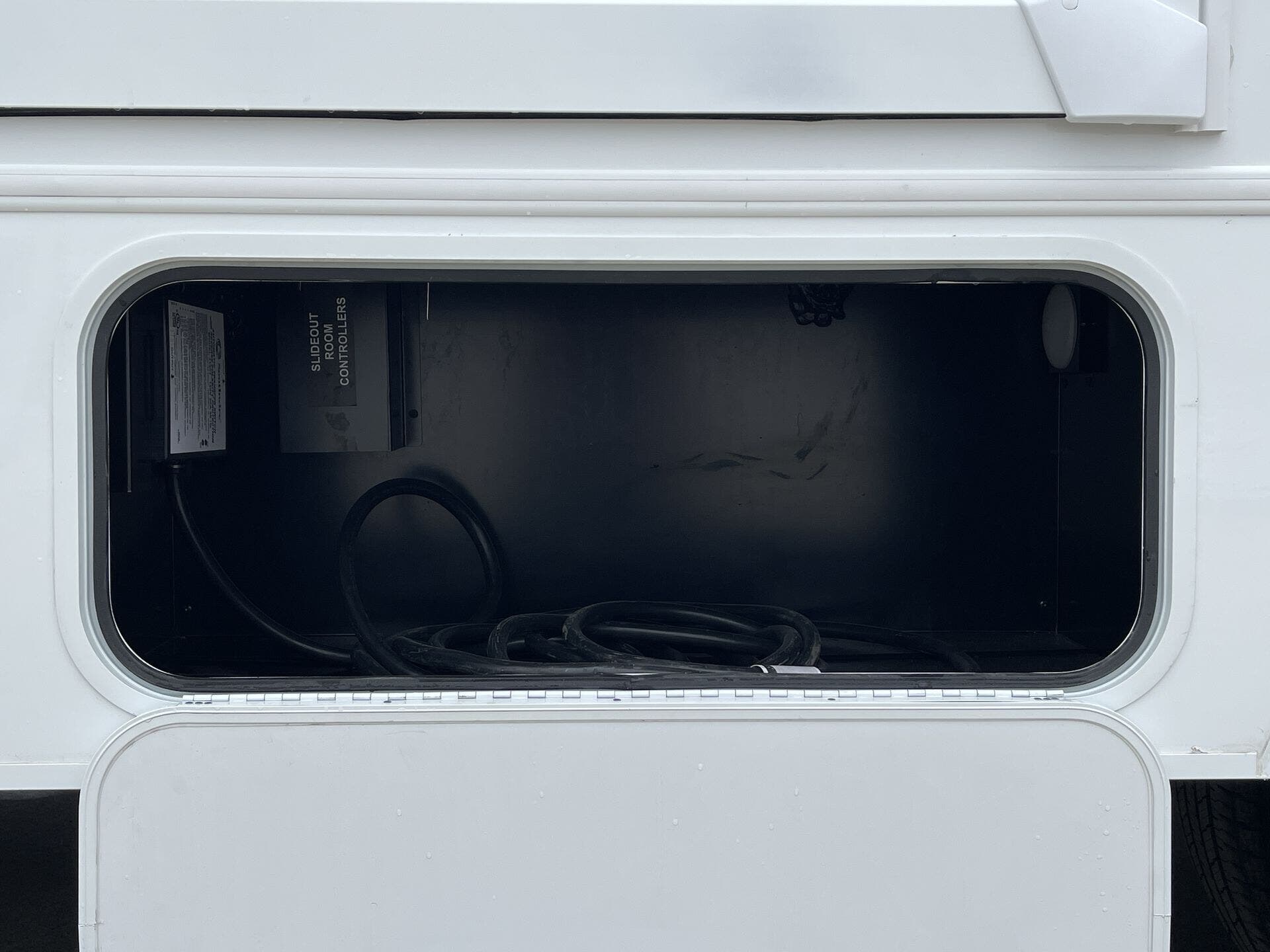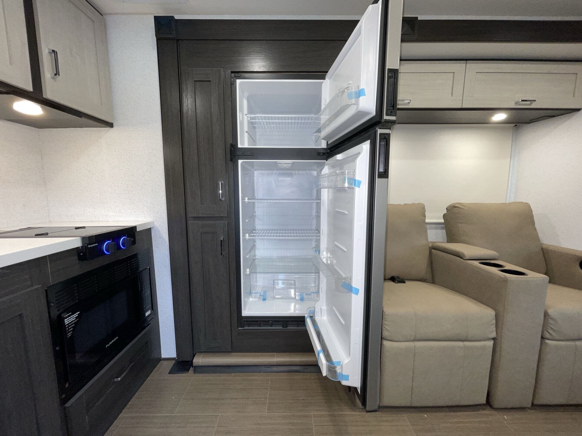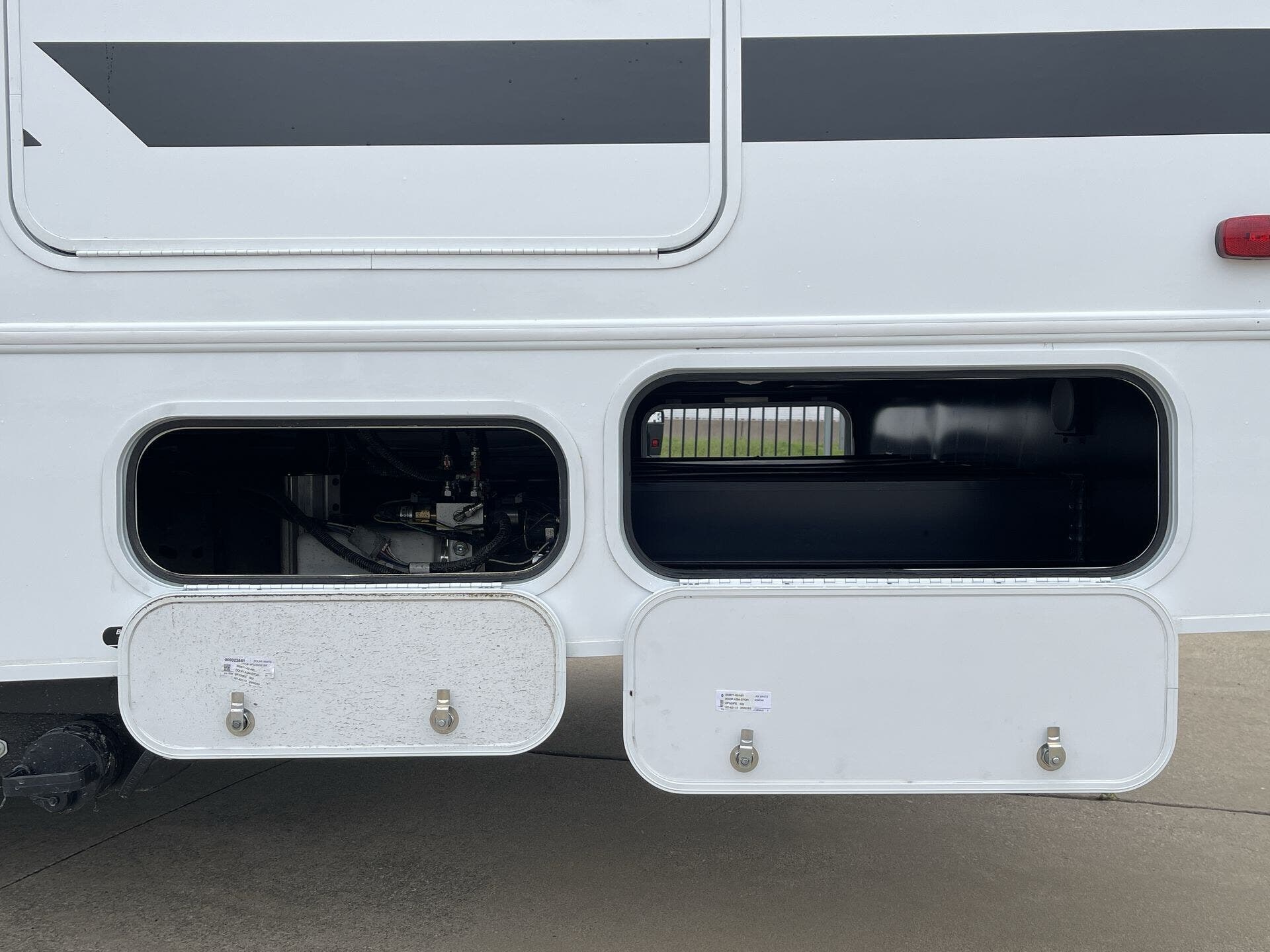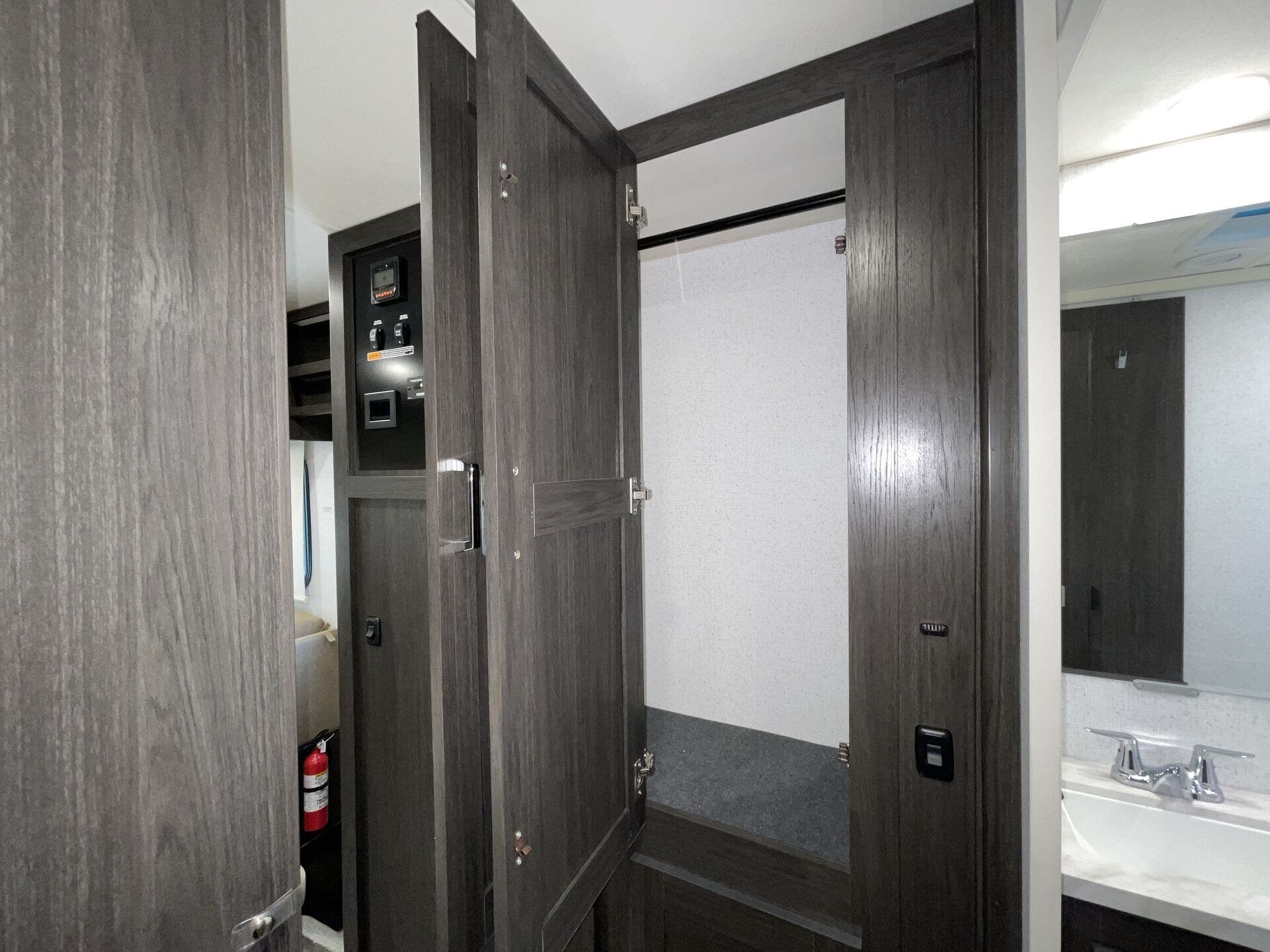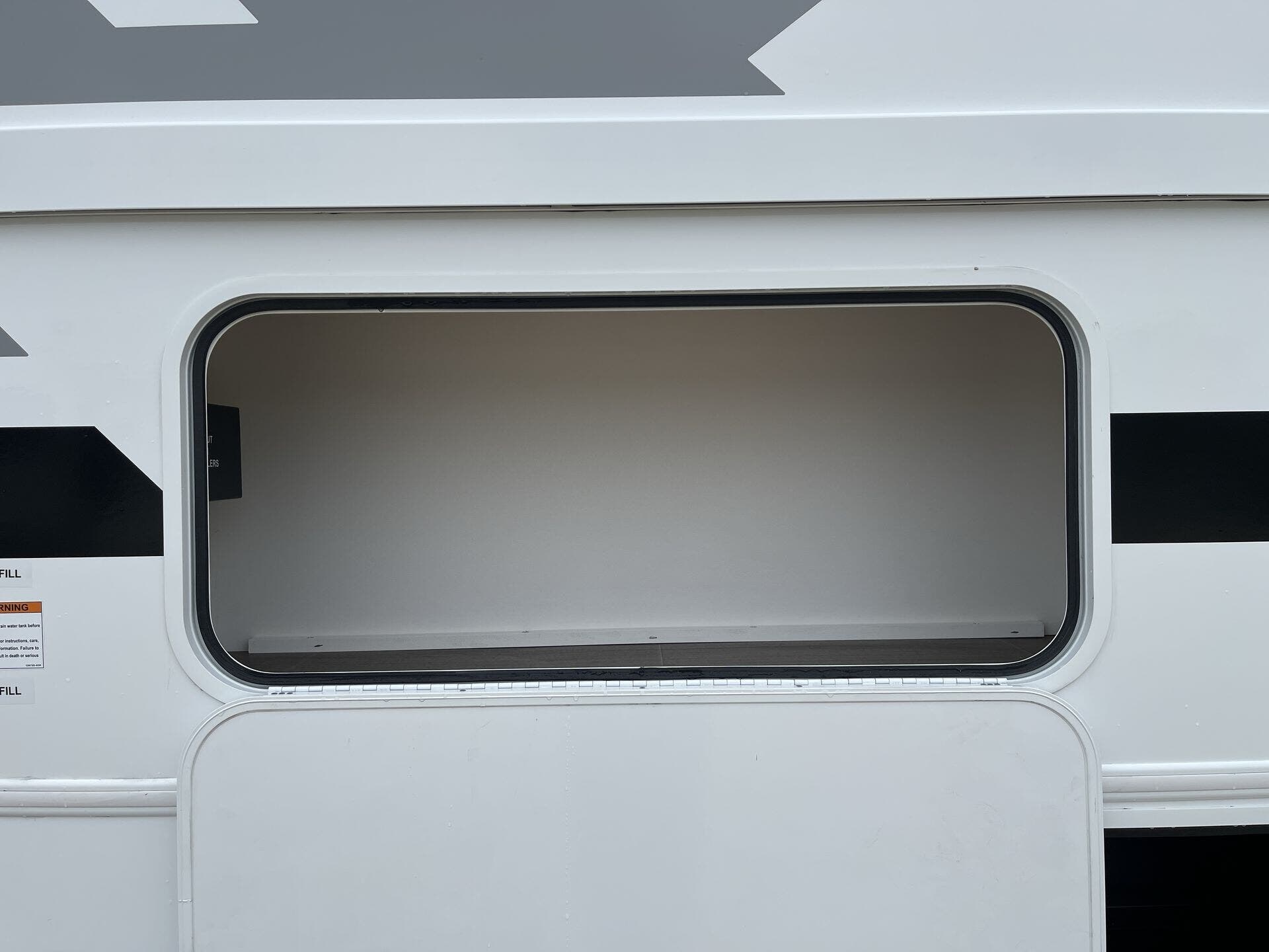 The mid-coach kitchen provides generous counter space and storage, making meal prep easy whether you’re on a quick trip or staying out longer. In the back, the private bedroom features a walk-around queen bed and a spacious bathroom, creating a comfortable place to unwind after a day on the road. With sleeping space for up to six and a length of about 28 feet, the Sunflyer 26FE offers a great balance of drivability, space, and everyday convenience for road trips or extended adventures.